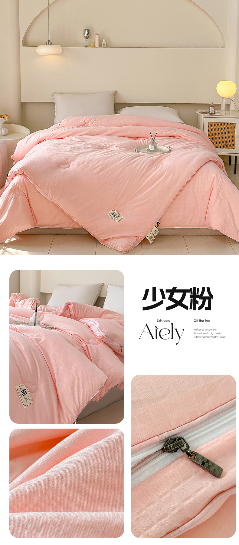 • 91家纺网 家纺一手货源 找家纺 (总)蓝雀翎 2025新款木棉提花蚕蛹蛋白被子被芯,粉色,灰色,米白