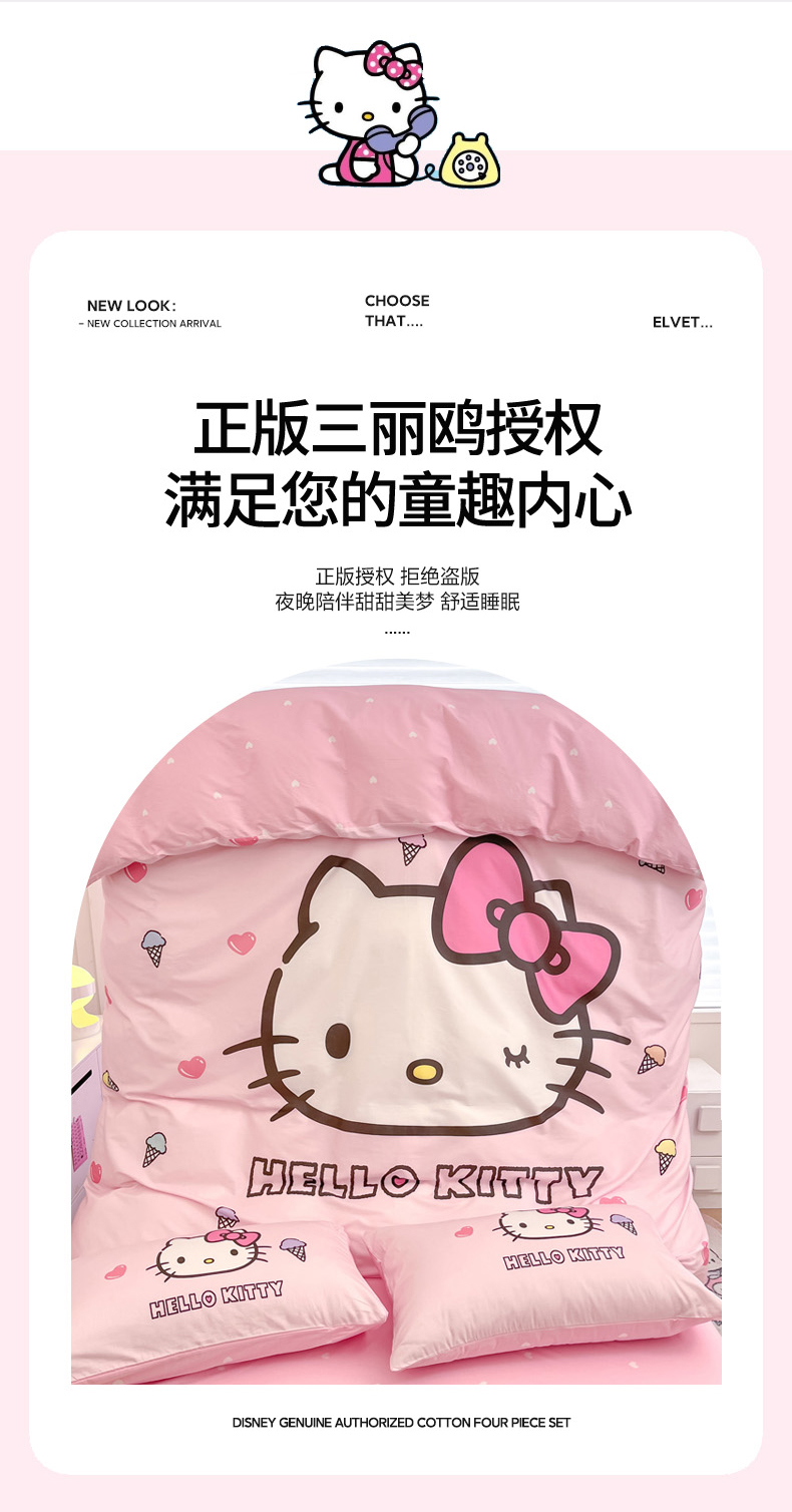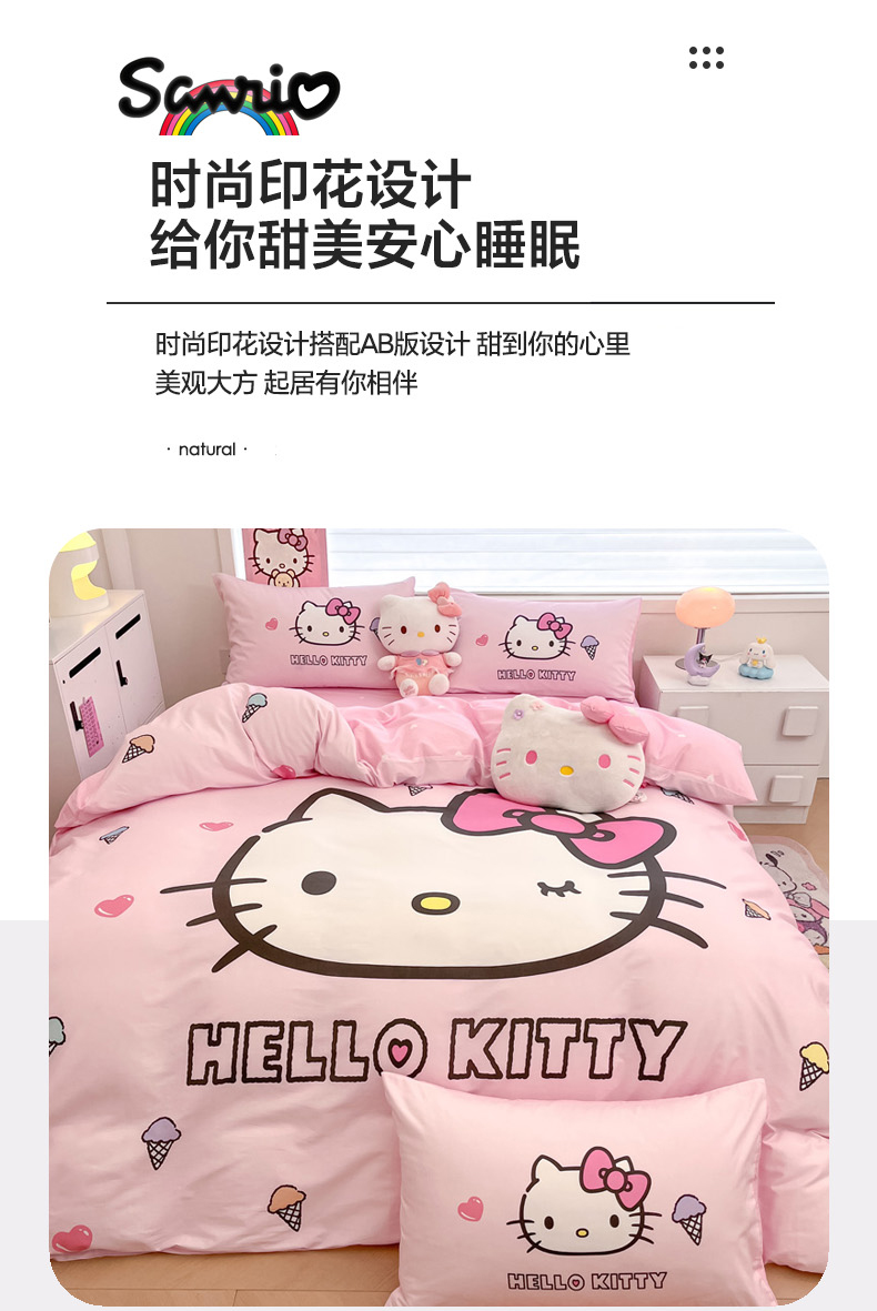 当前位置: 91家纺网 > 商品网购 > 床品套件 > 四件套 > 全棉普通四件套 > 暮思家居 2025新款正版授权三丽鸥大版全棉纯棉数码印花四件套系列-第四批 大版-甜筒KT