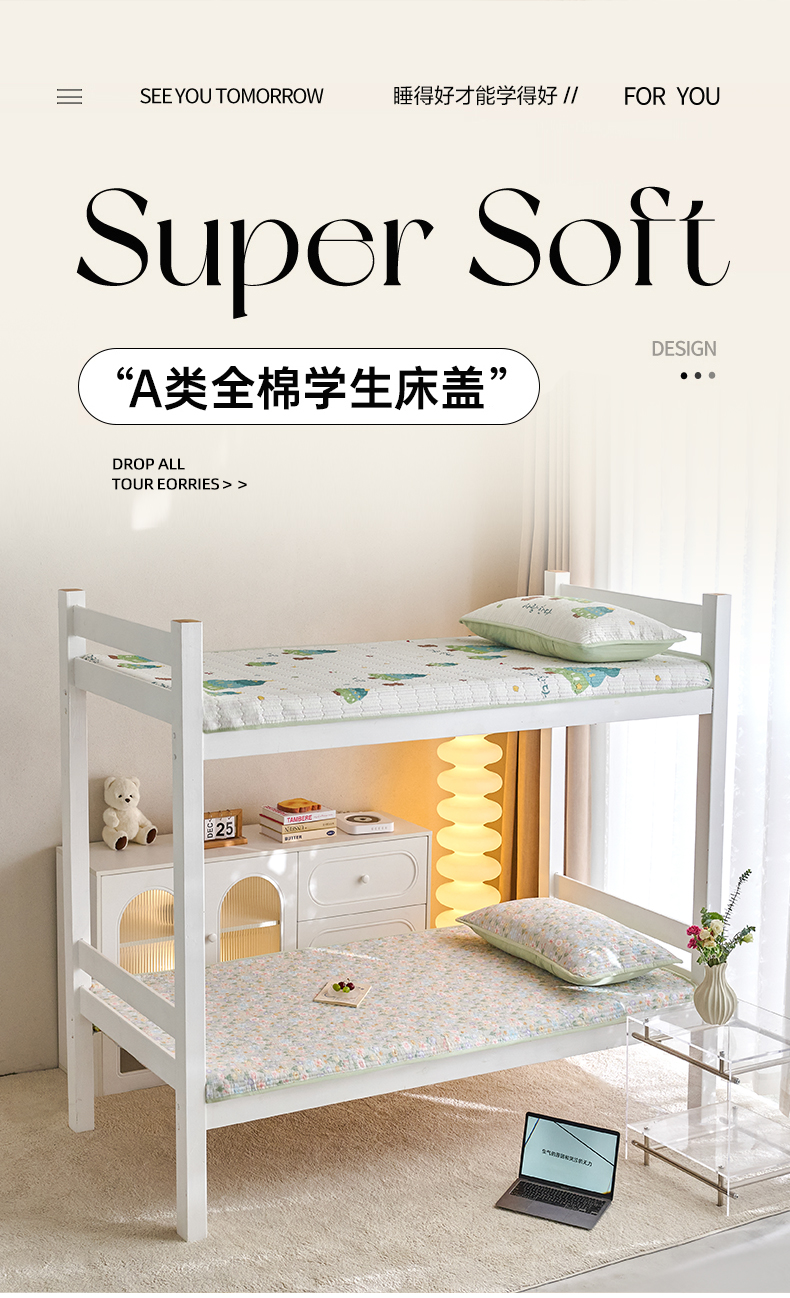 • 91家纺网 家纺一手货源 找家纺 X猫先生 2025小清新全棉学生床盖-新增花型 向云端