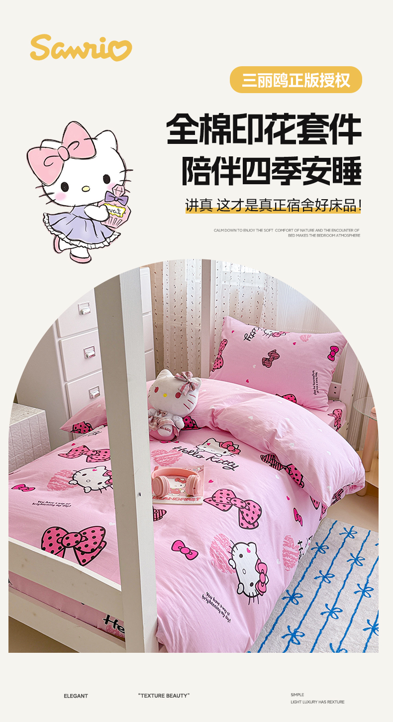 (总)沐辰 2025新款牛奶绒绣花三丽鸥系列四件套,酷酷库洛米,假日云朵狗,暖心凯蒂猫,骑行蛙蛙,气球美乐蒂,玩家帕恰狗