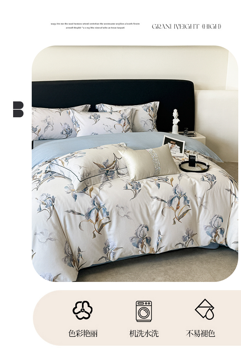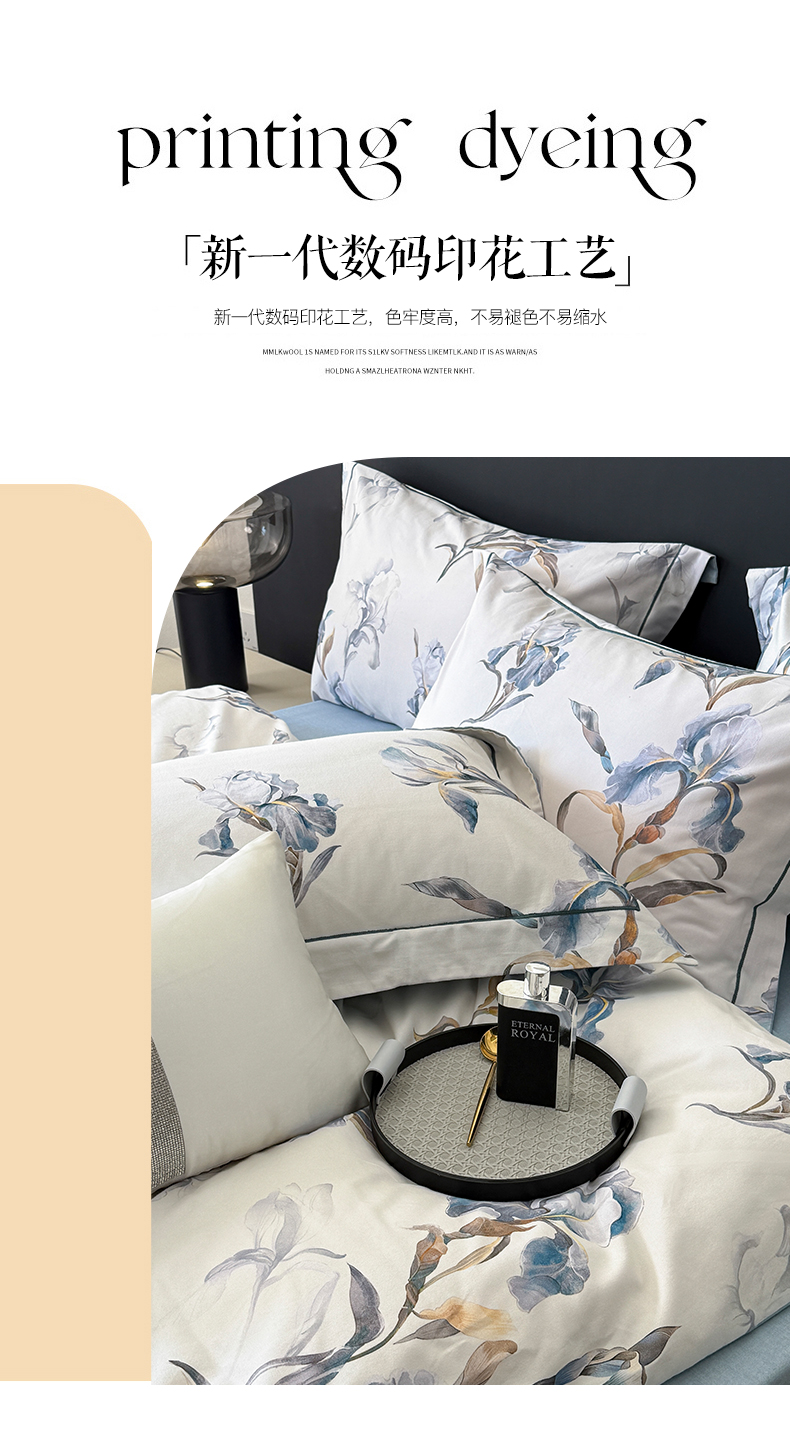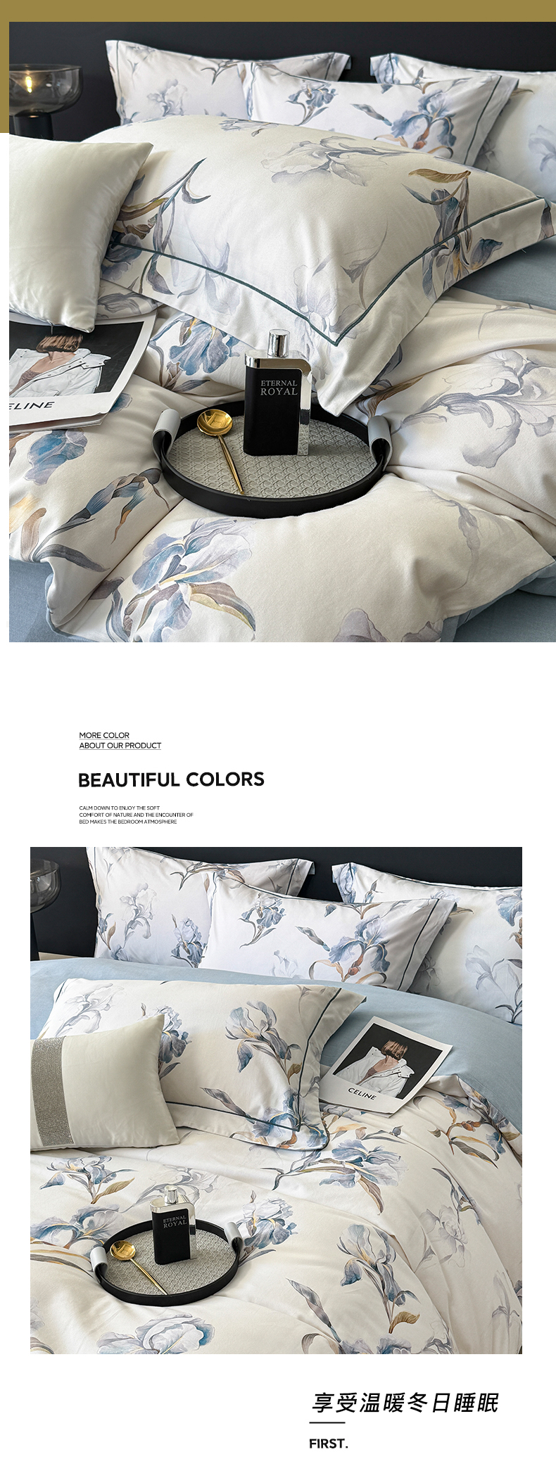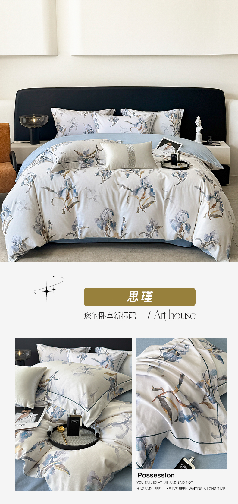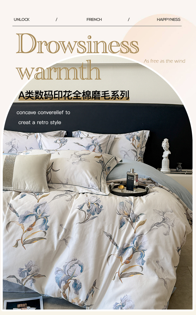 当前位置: 91家纺网 > 商品网购 > 床品套件 > 四件套 > 普通磨毛四件套 > 清雅福2025新款A类全棉磨毛数码印花四件套 思瑾