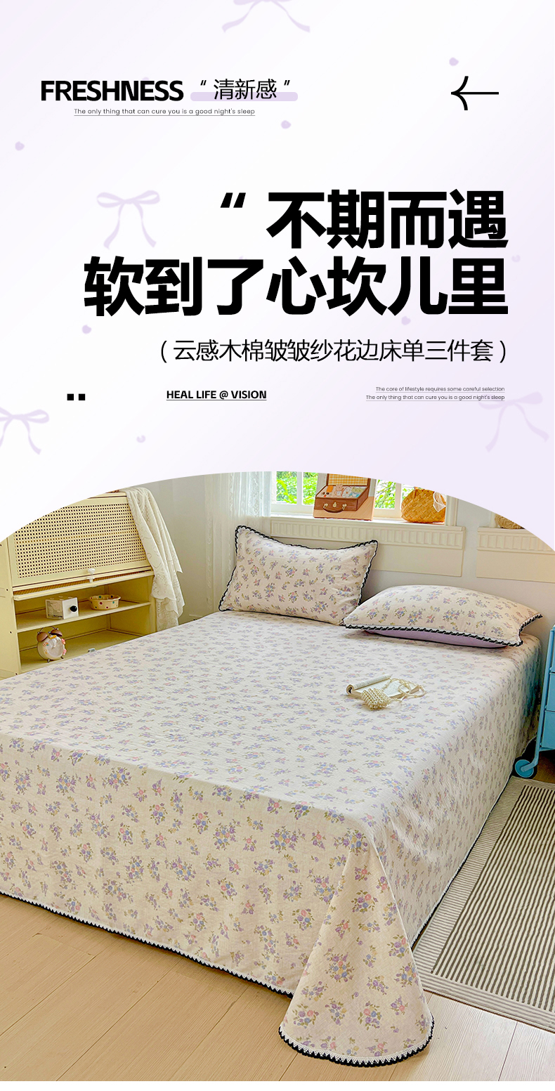 当前位置: 91家纺网 > 商品网购 > 床上用品 > 床单 > 逸林家纺《原希尔顿逸林》 2025新款云感皱皱纱镂空花边床单单品床单单件单床单 紫魅