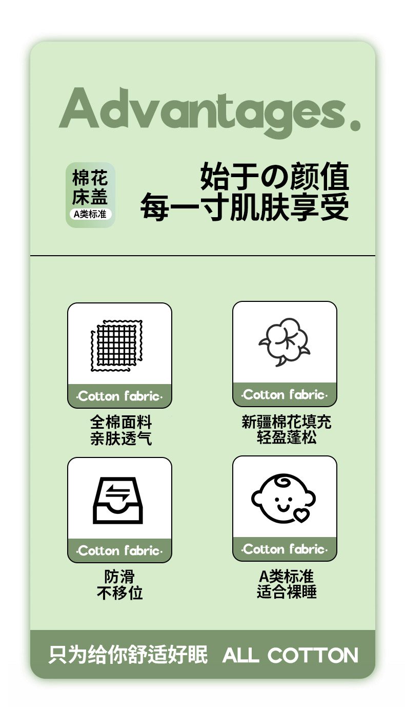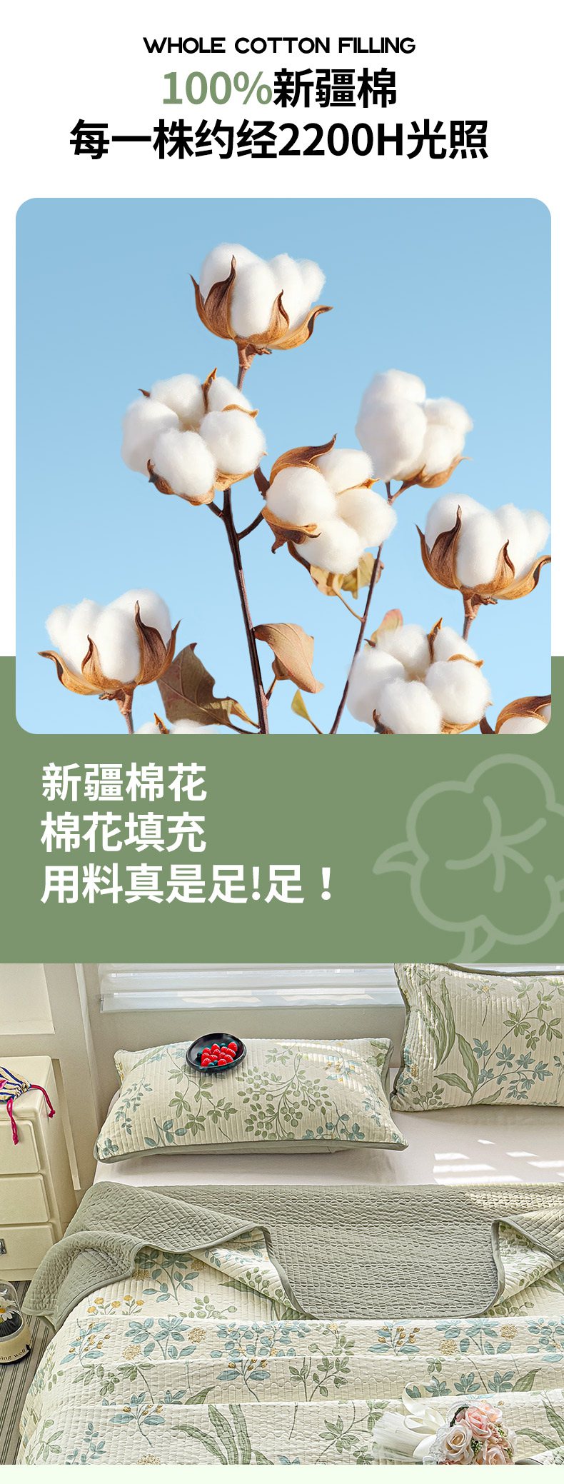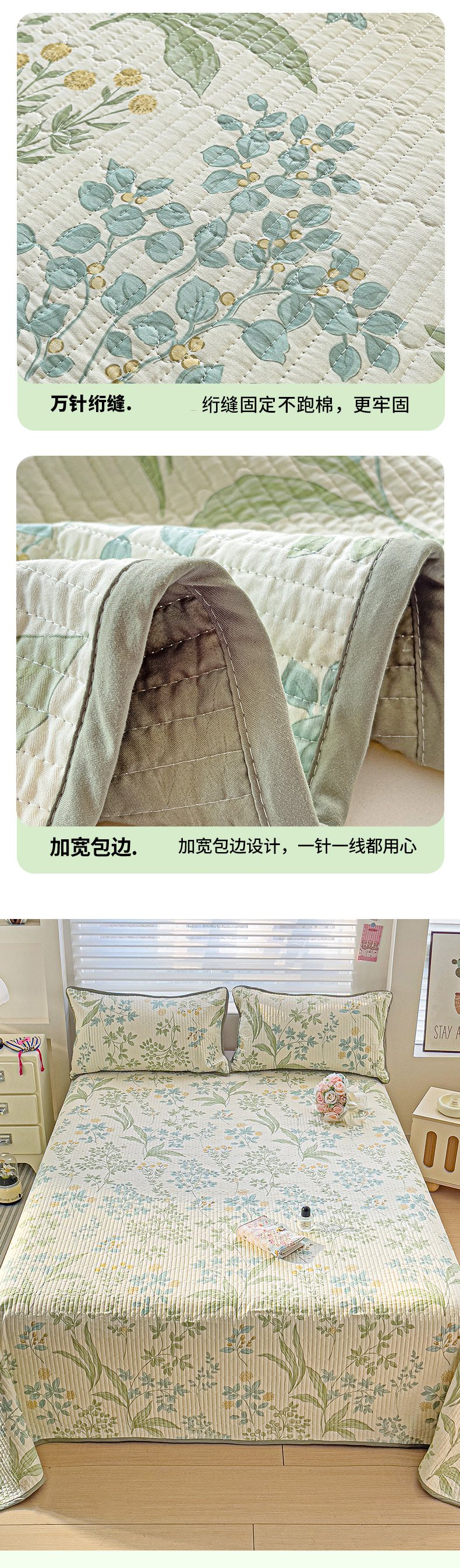 • 91家纺网 家纺一手货源 找家纺 暖萌 2025新款A类全棉棉花床盖印花三件套 花蜜-绿