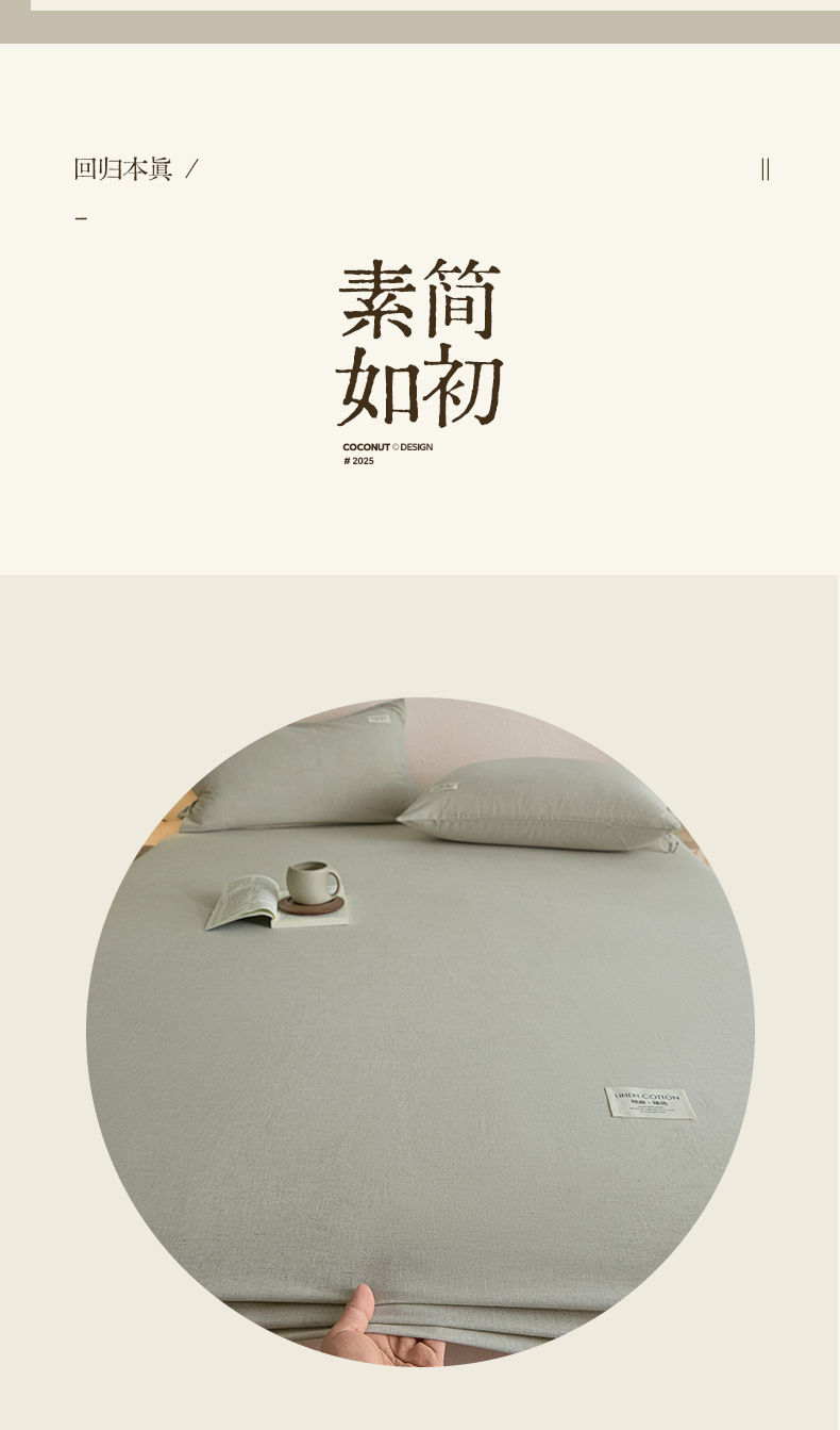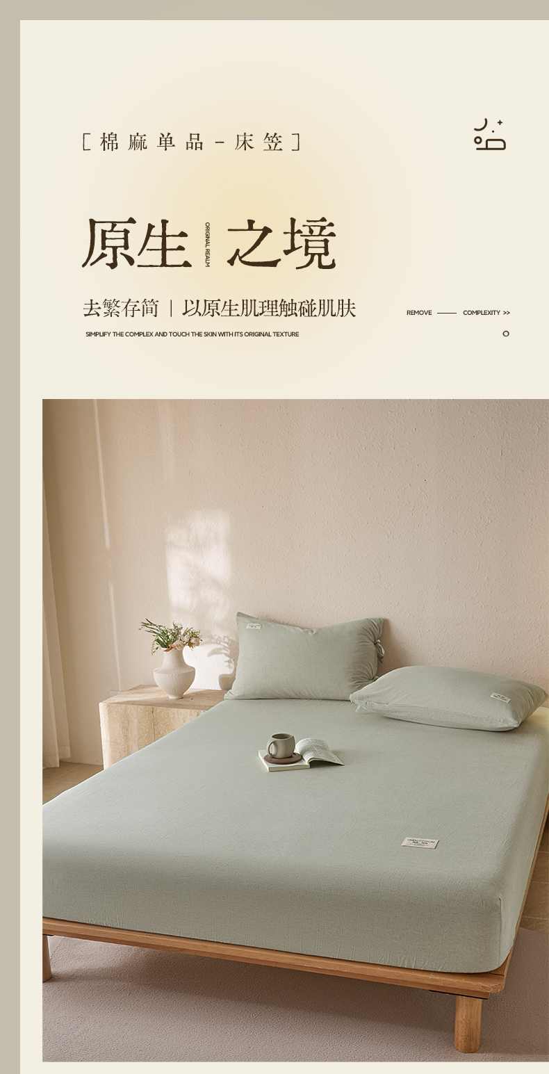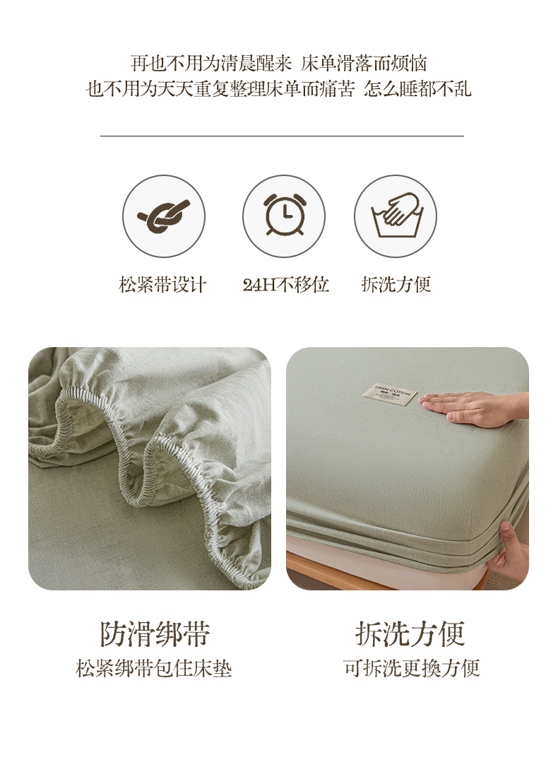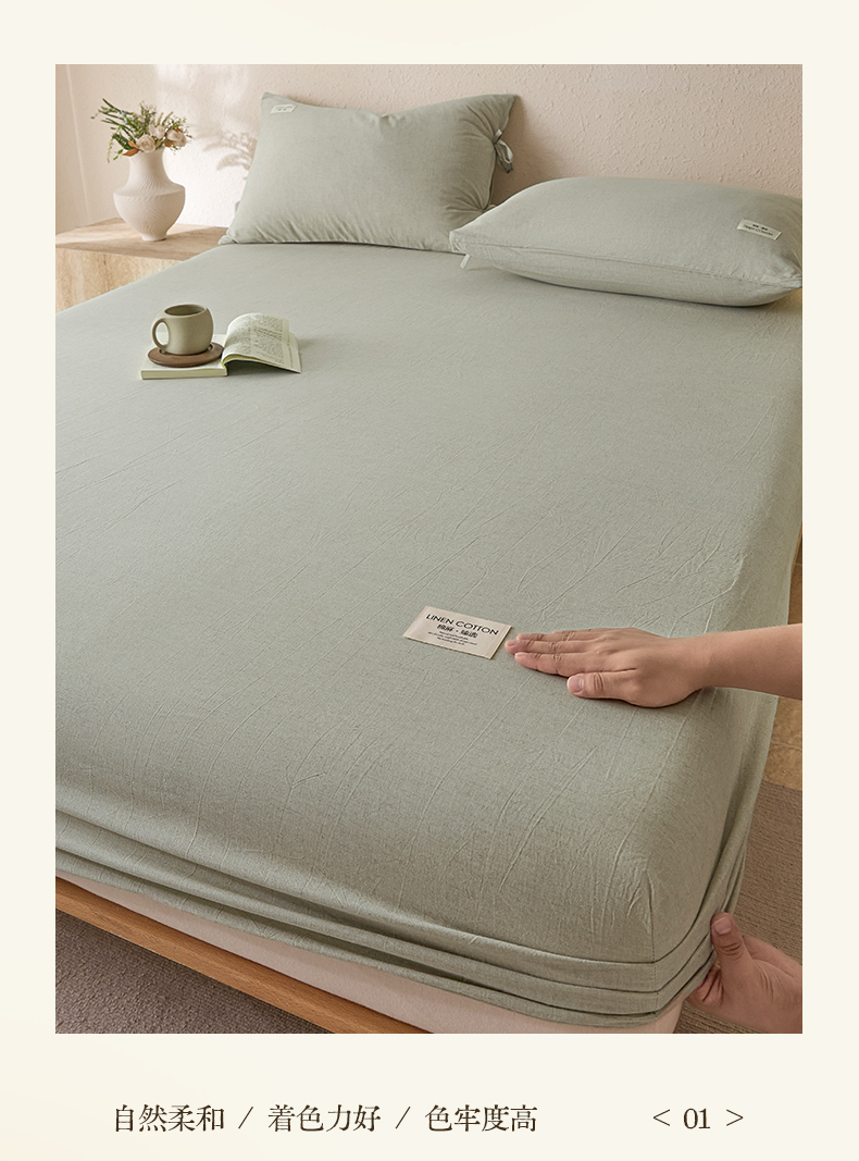 • 91家纺网 家纺一手货源 找家纺 涵宸家纺 2025新款色织棉麻四件套系列-单床笠 棉麻-浅绿