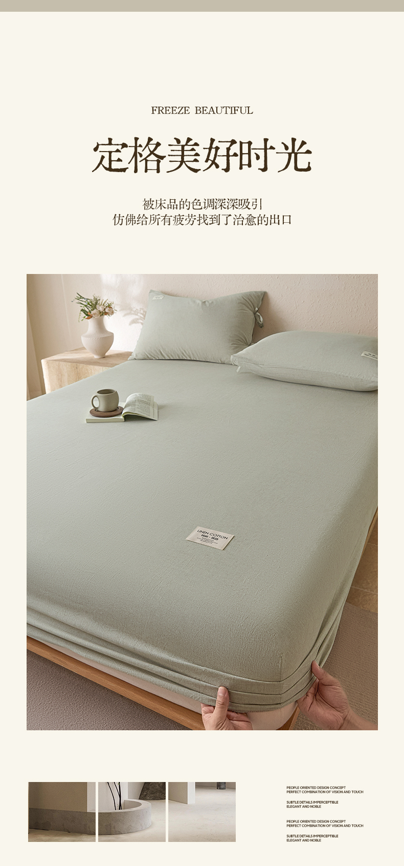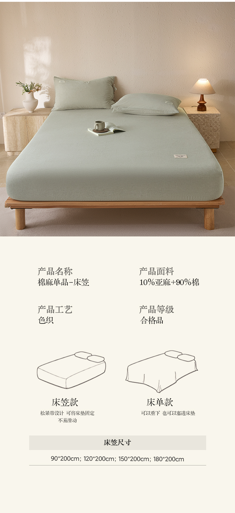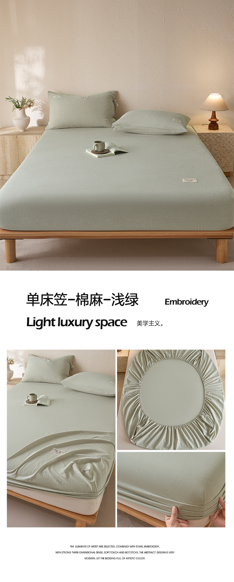 • 91家纺网 家纺一手货源 找家纺 涵宸家纺 2025新款色织棉麻四件套系列-单床笠 棉麻-浅绿
