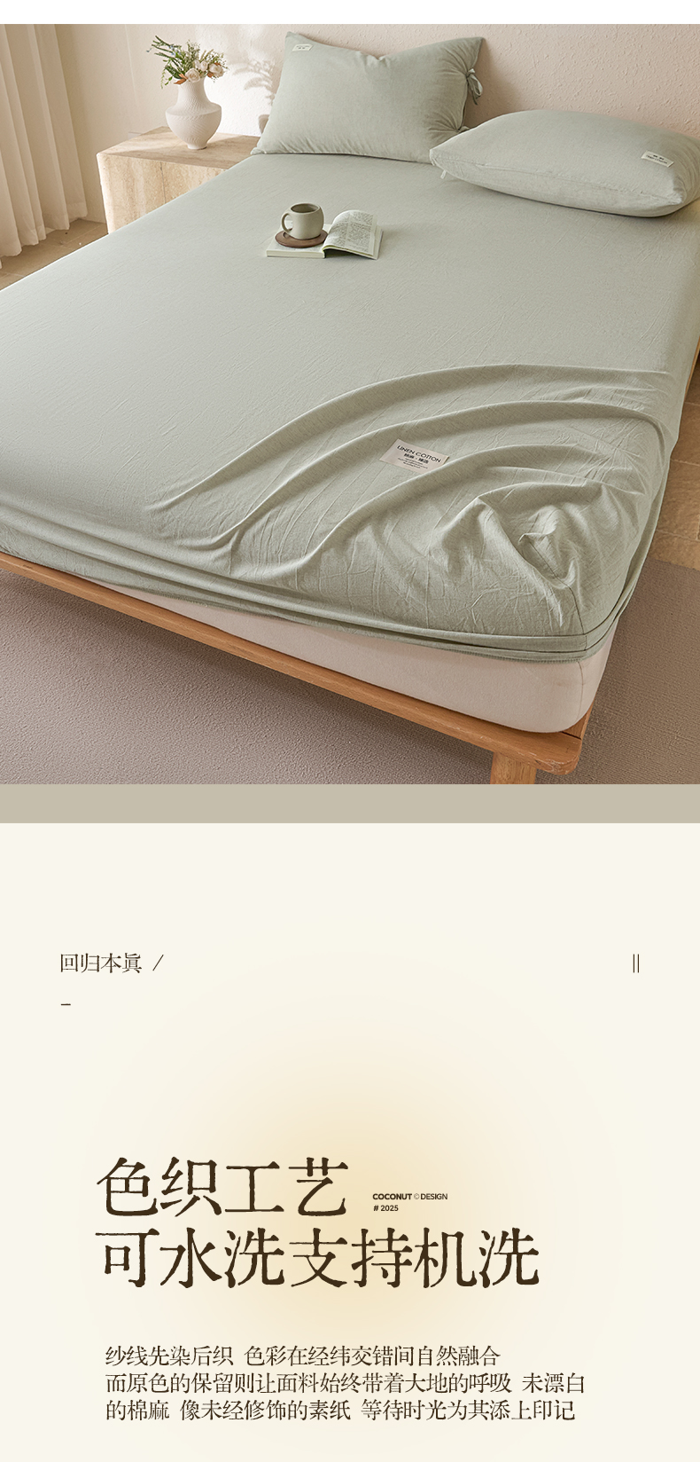 涵宸家纺 2025新款色织棉麻四件套系列-单床笠 棉麻-浅绿