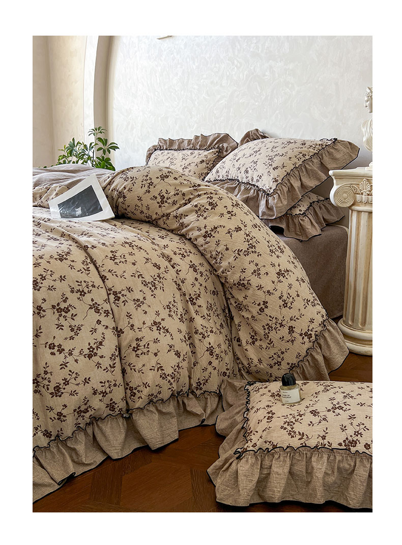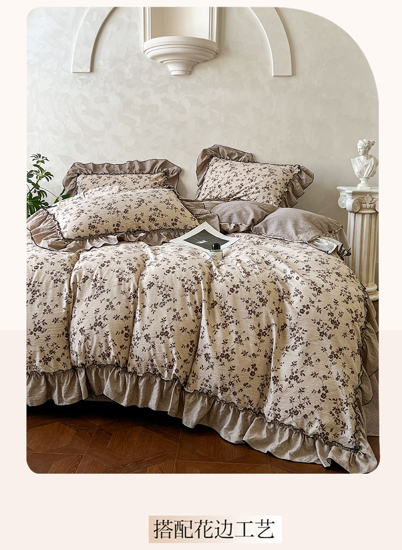 乐沐家纺 2025新款A类高克重亚麻复古风原麻棉麻系列四件套 樱梦