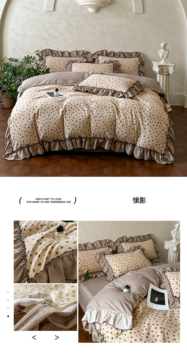 (总)乐沐家纺 2025新款云感皱皱双层纱全棉镂空花边四件套,草莓小兔,春日兔语,泡芙小象,倾心,素瑾,甜梦狗狗,夏日,织梦
