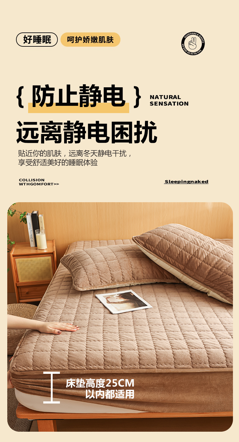 商品名称:(总)潮邦创意家居 2025新款婴儿绒夹棉床笠单品单件床垫保护套