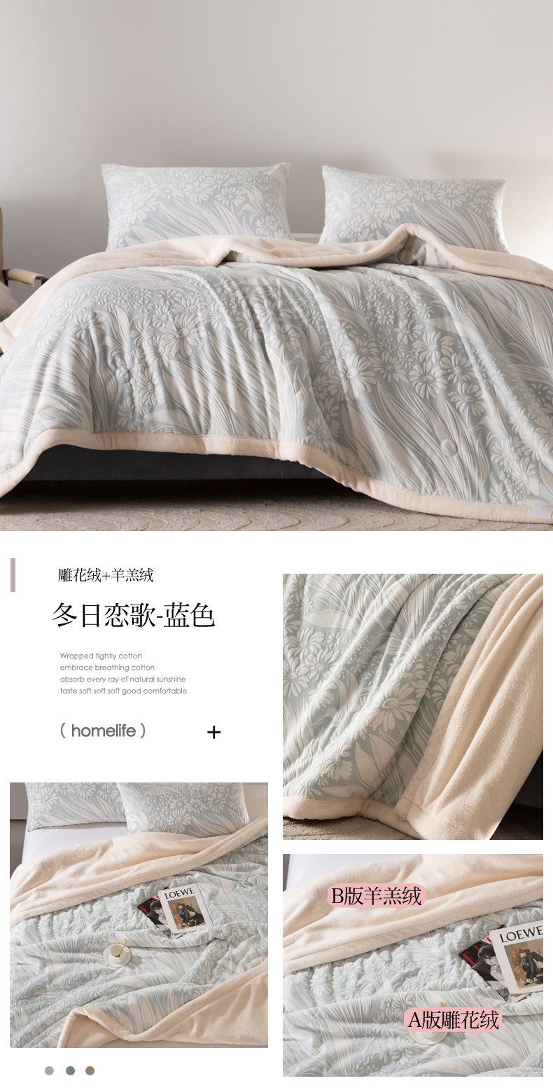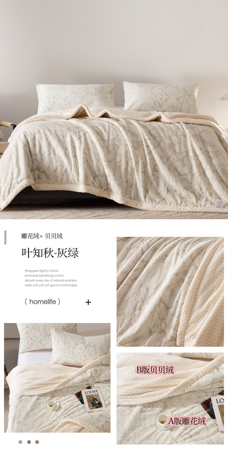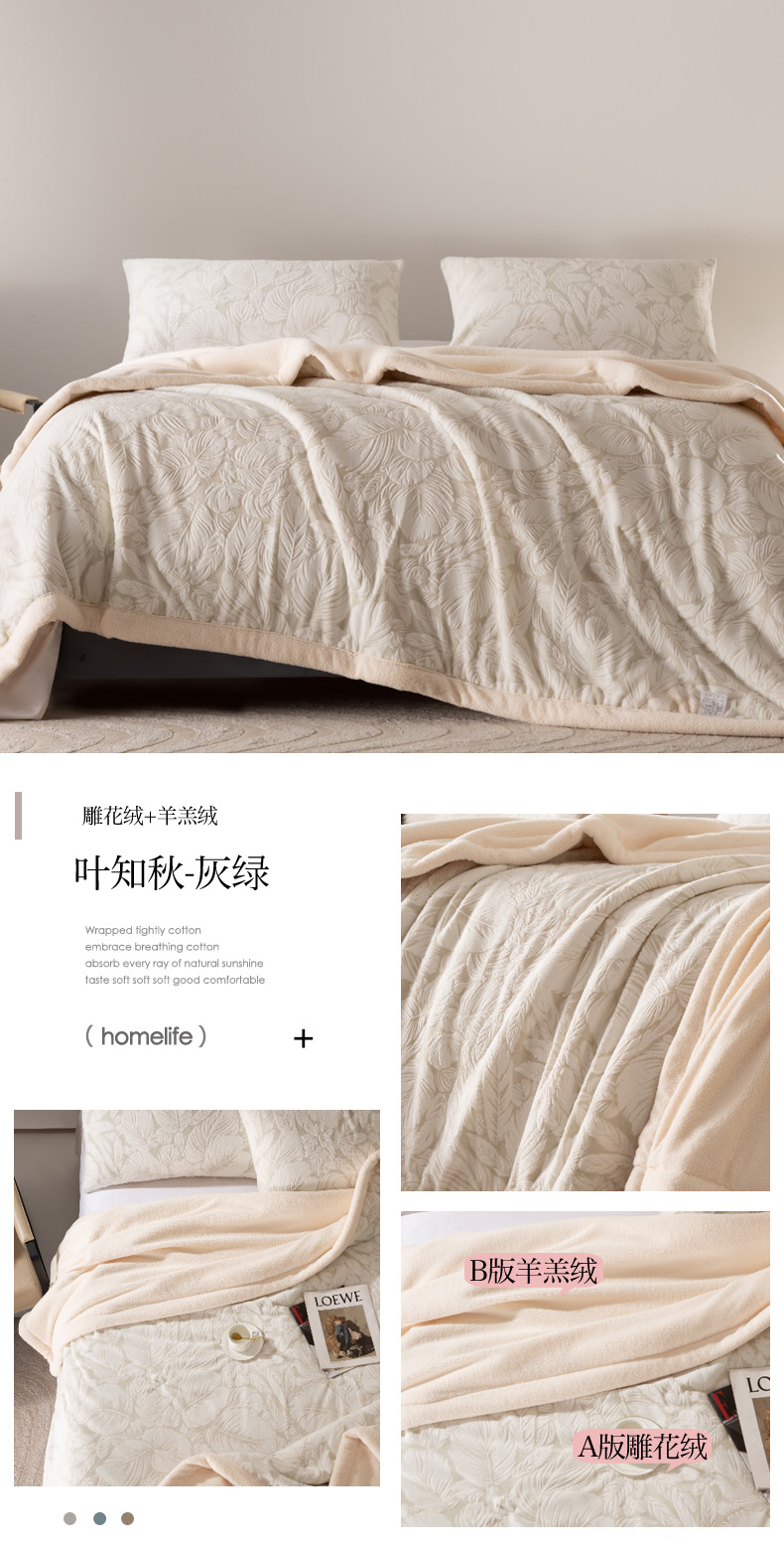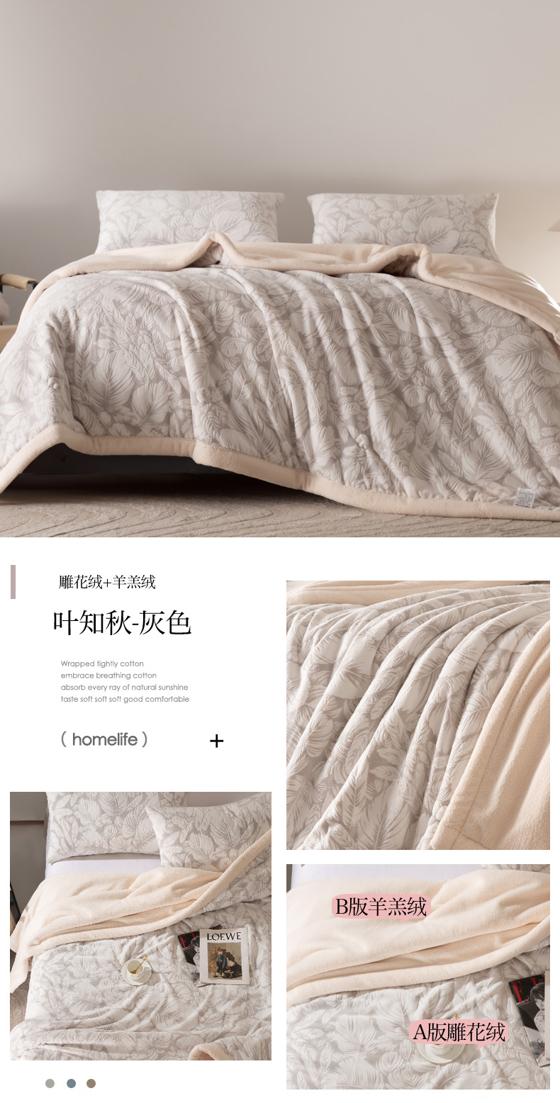 当前位置: 91家纺网 > 商品网购 > 毛毯休闲毯绒毯 > 毛毯 > 印季家纺 2025新款三层夹棉花卉款-雕花绒毛毯毯子多功能盖毯 雕花绒+贝贝绒-一叶知秋-灰色