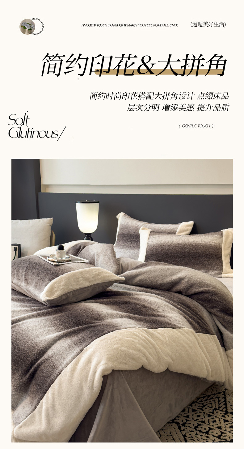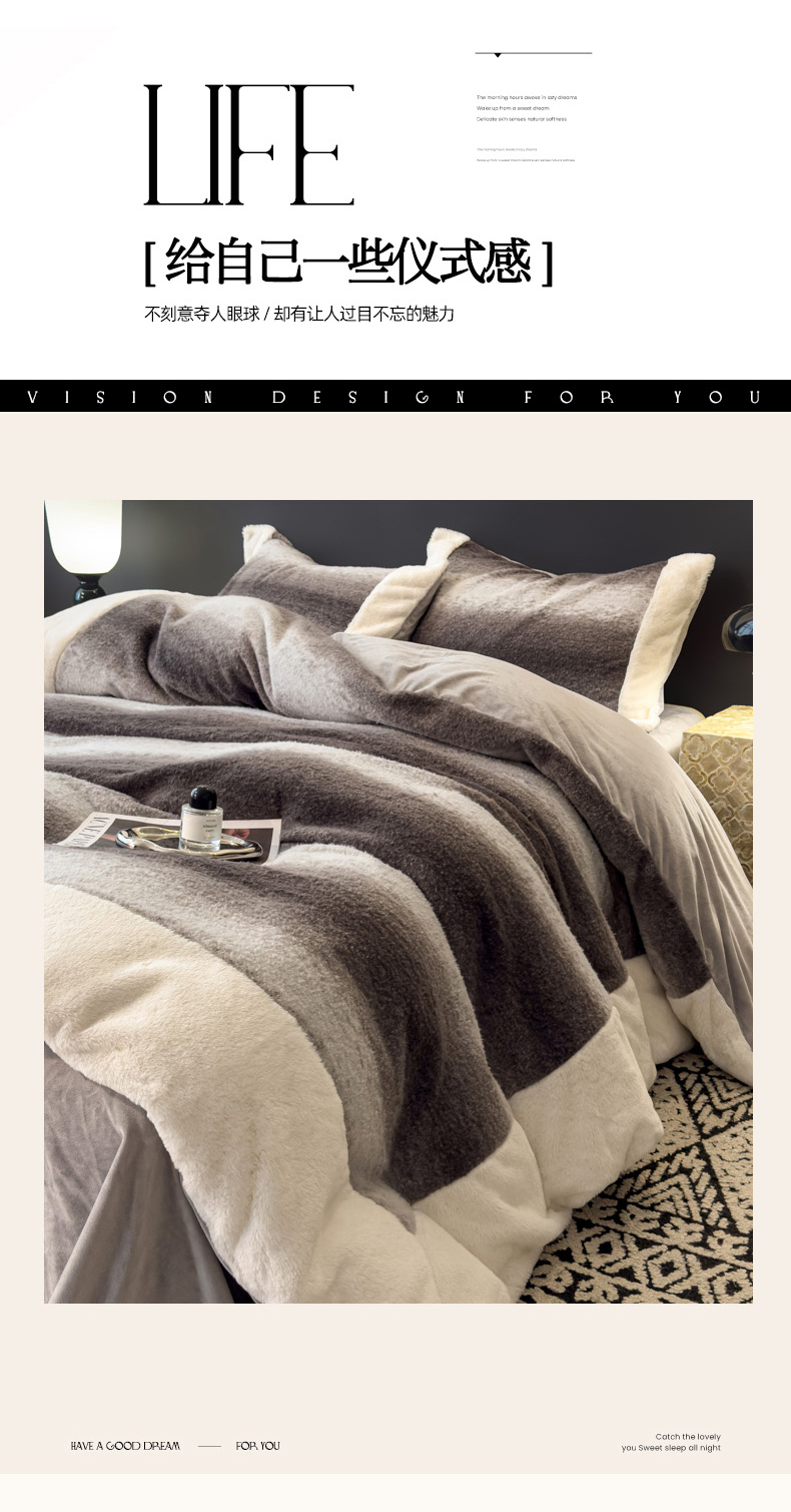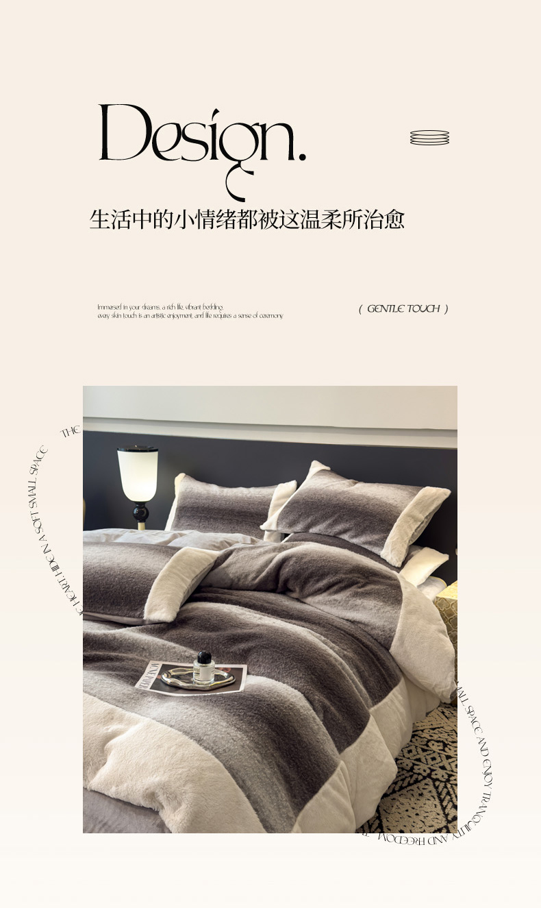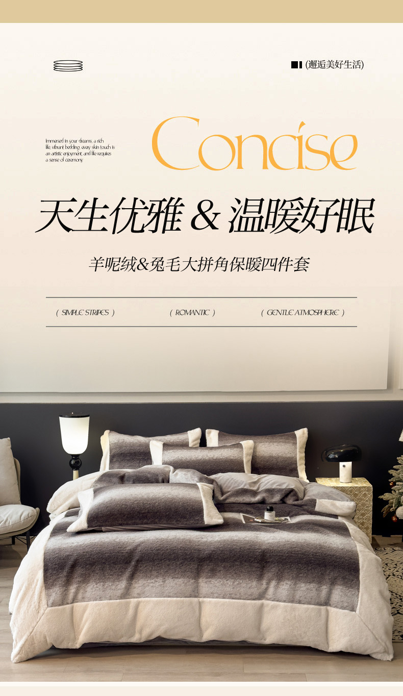 当前位置: 91家纺网 > 商品网购 > 床品套件 > 四件套 > 其它四件套 > 印季家纺 2025新款羊呢绒兔毛大拼角四件套 拼角-灰色大条纹