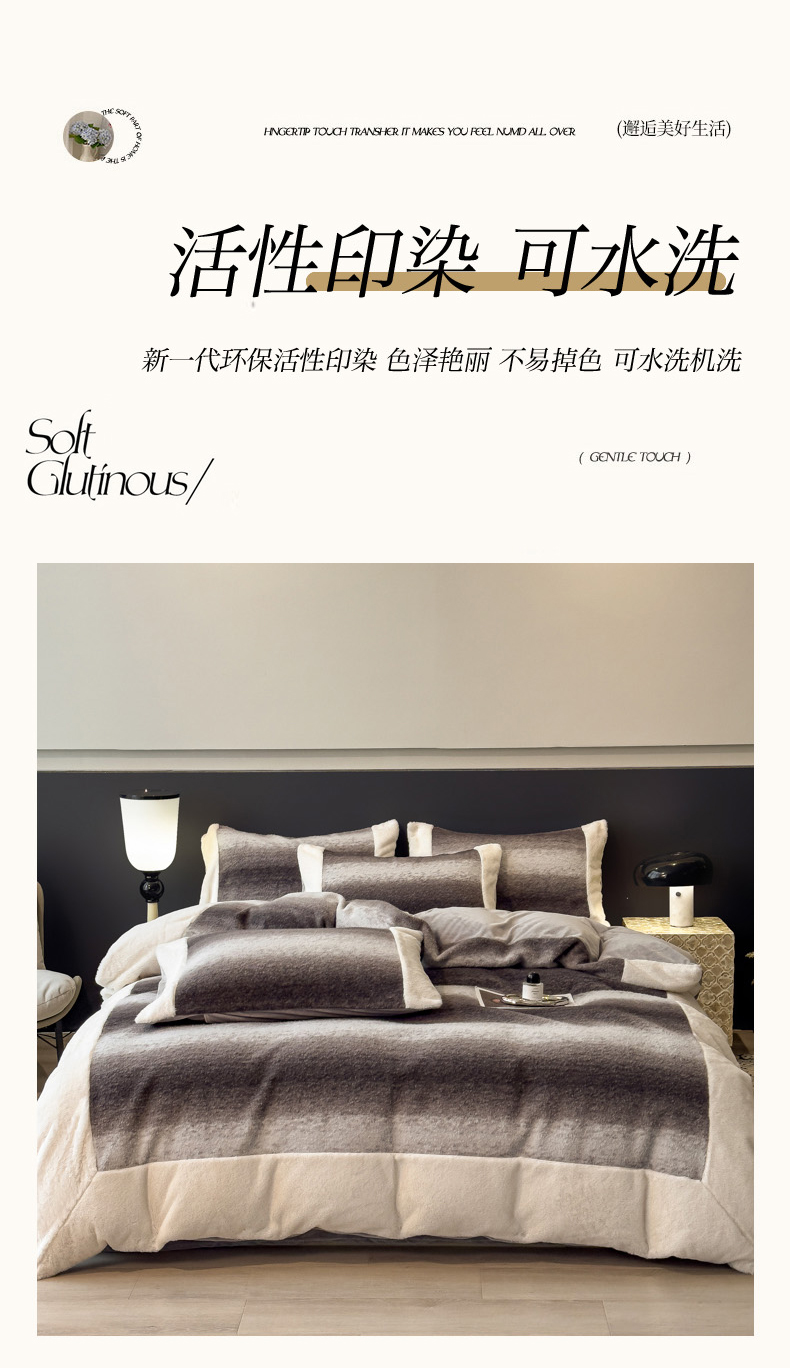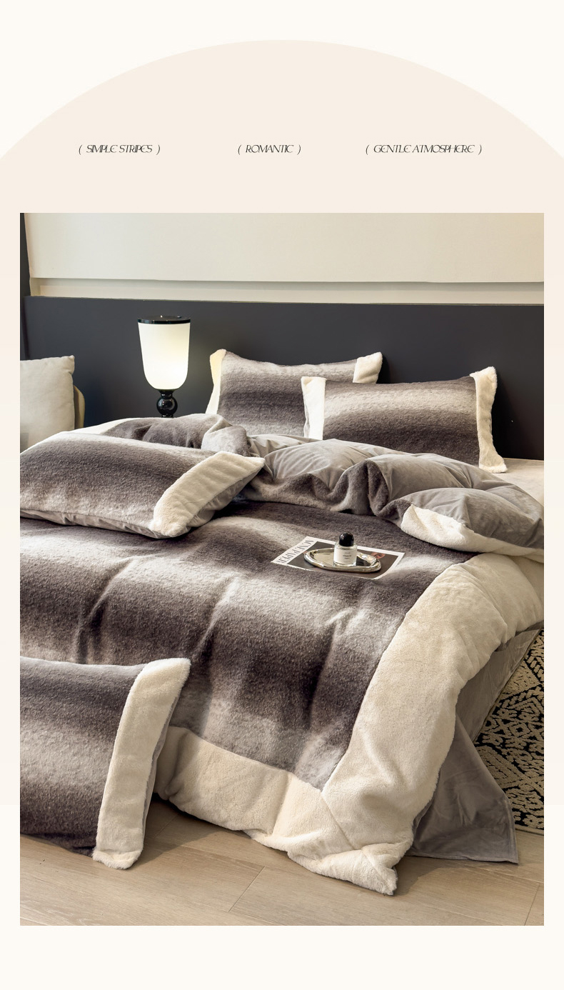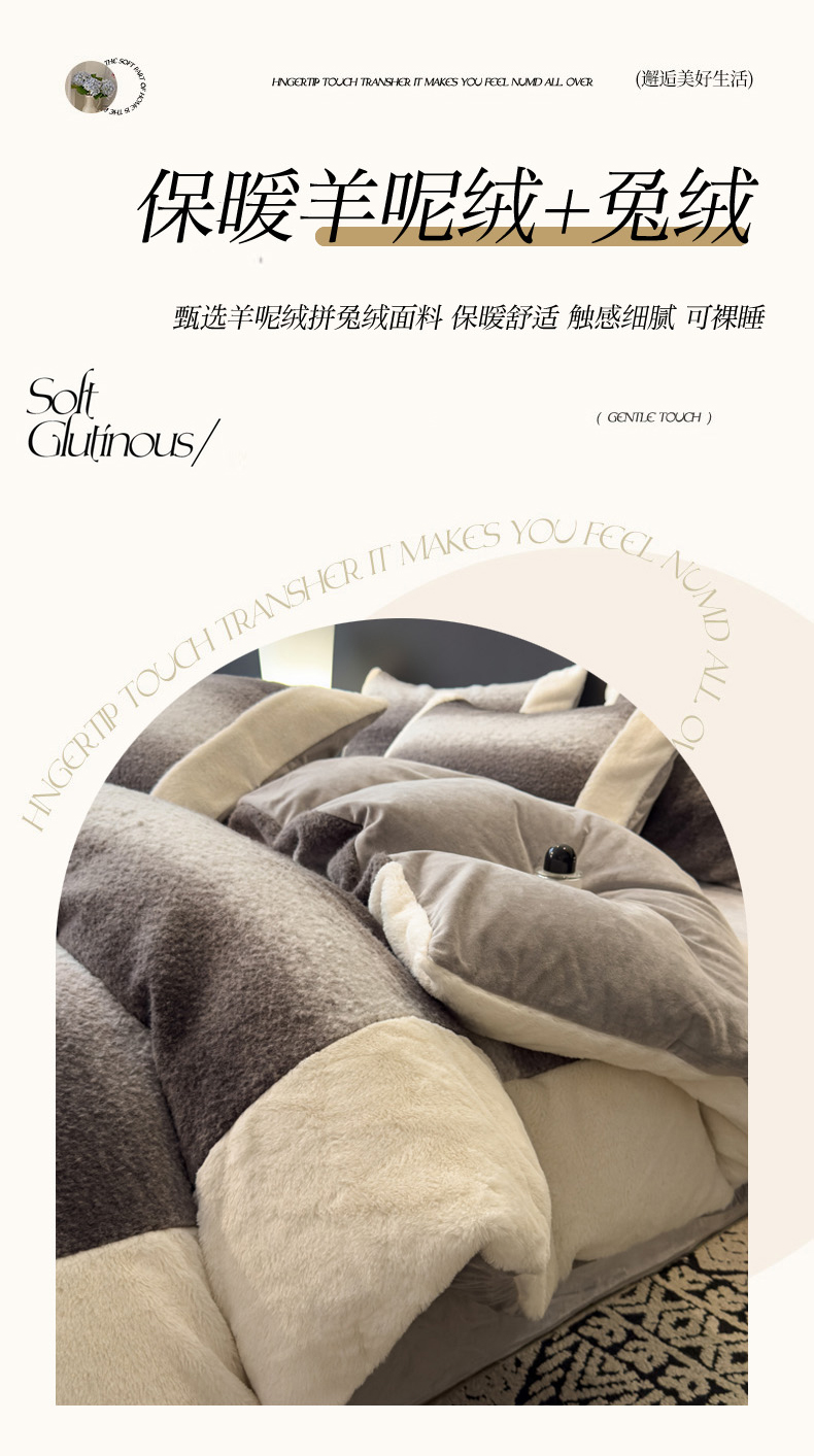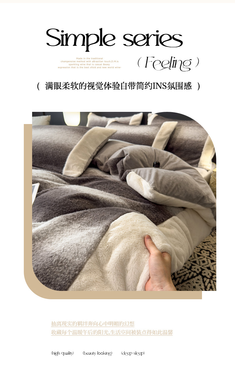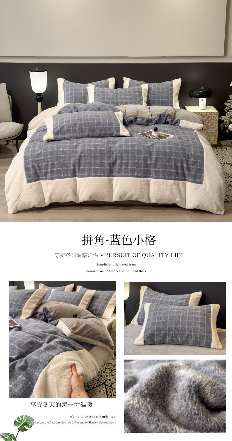 当前位置: 91家纺网 > 商品网购 > 床品套件 > 四件套 > 其它四件套 > 印季家纺 2025新款羊呢绒兔毛大拼角四件套 拼角-灰色大条纹