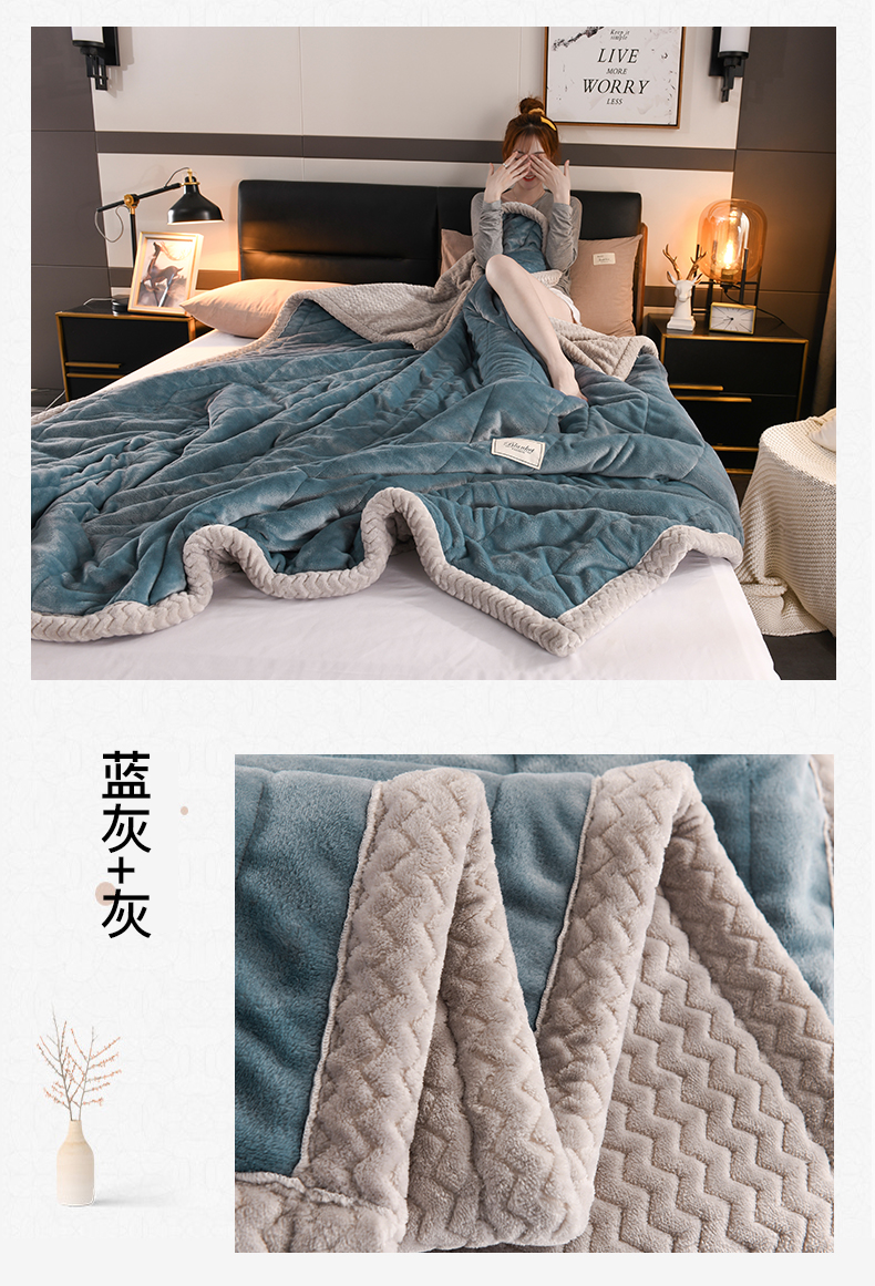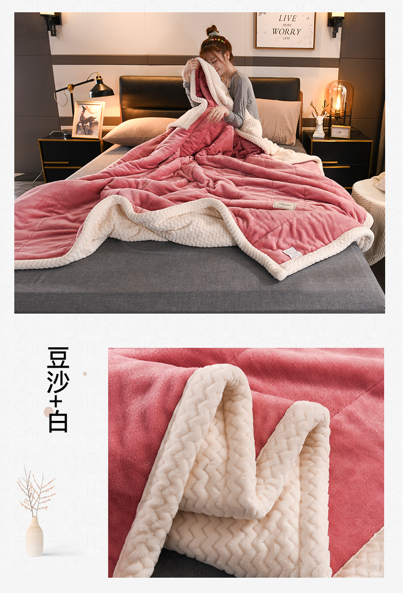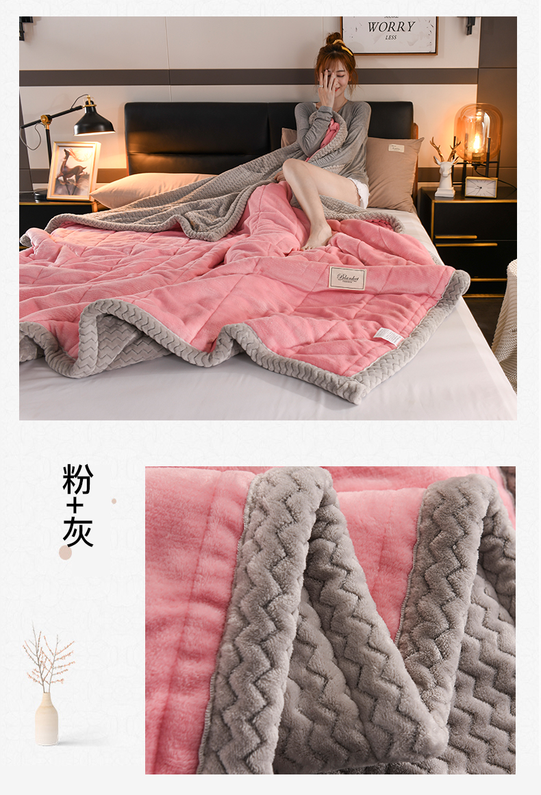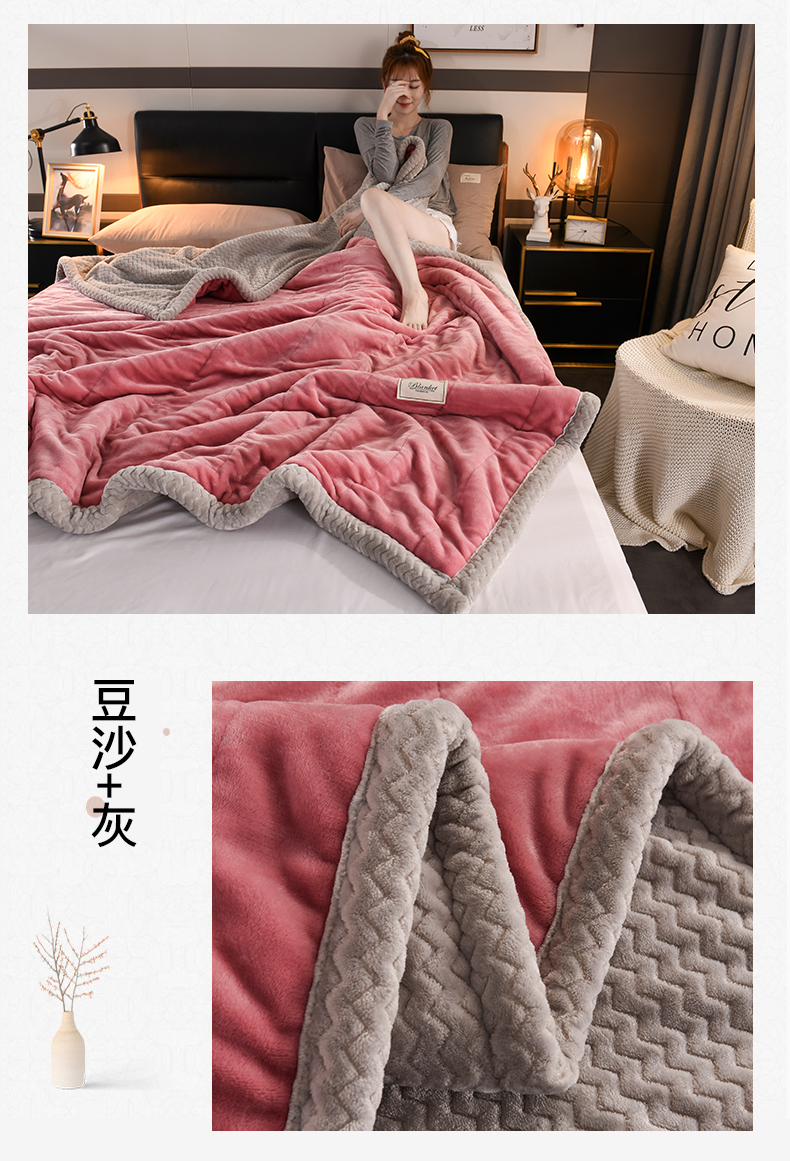 印季家纺 2025秋冬新款三层夹棉加厚复合贝贝绒毛毯毯子多功能盖毯 豆沙+灰