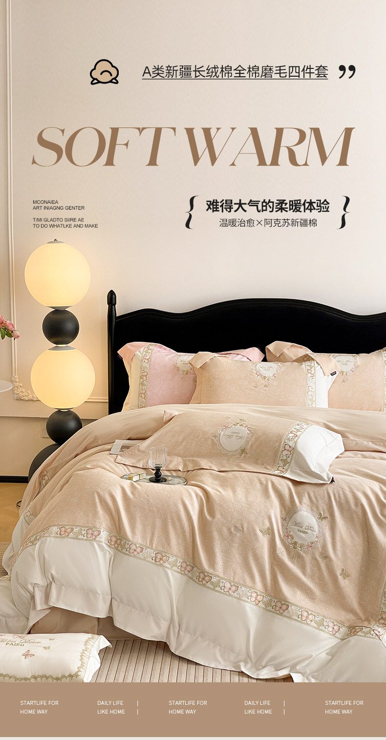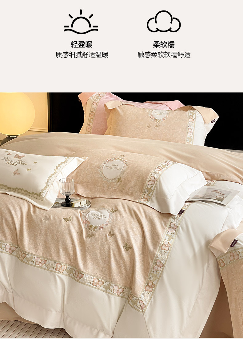 当前位置: 91家纺网 > 商品网购 > 床品套件 > 四件套 > 普通磨毛四件套 > 2025新款轻奢风A类加厚全棉磨毛四件套纯棉重工刺绣保暖被套床单高级感床笠冬季床 罗薇-暖棕