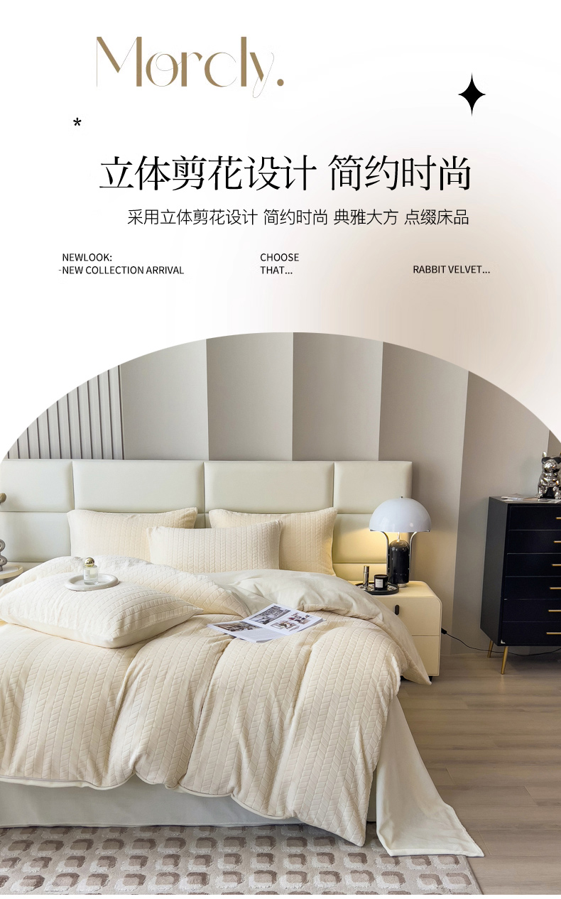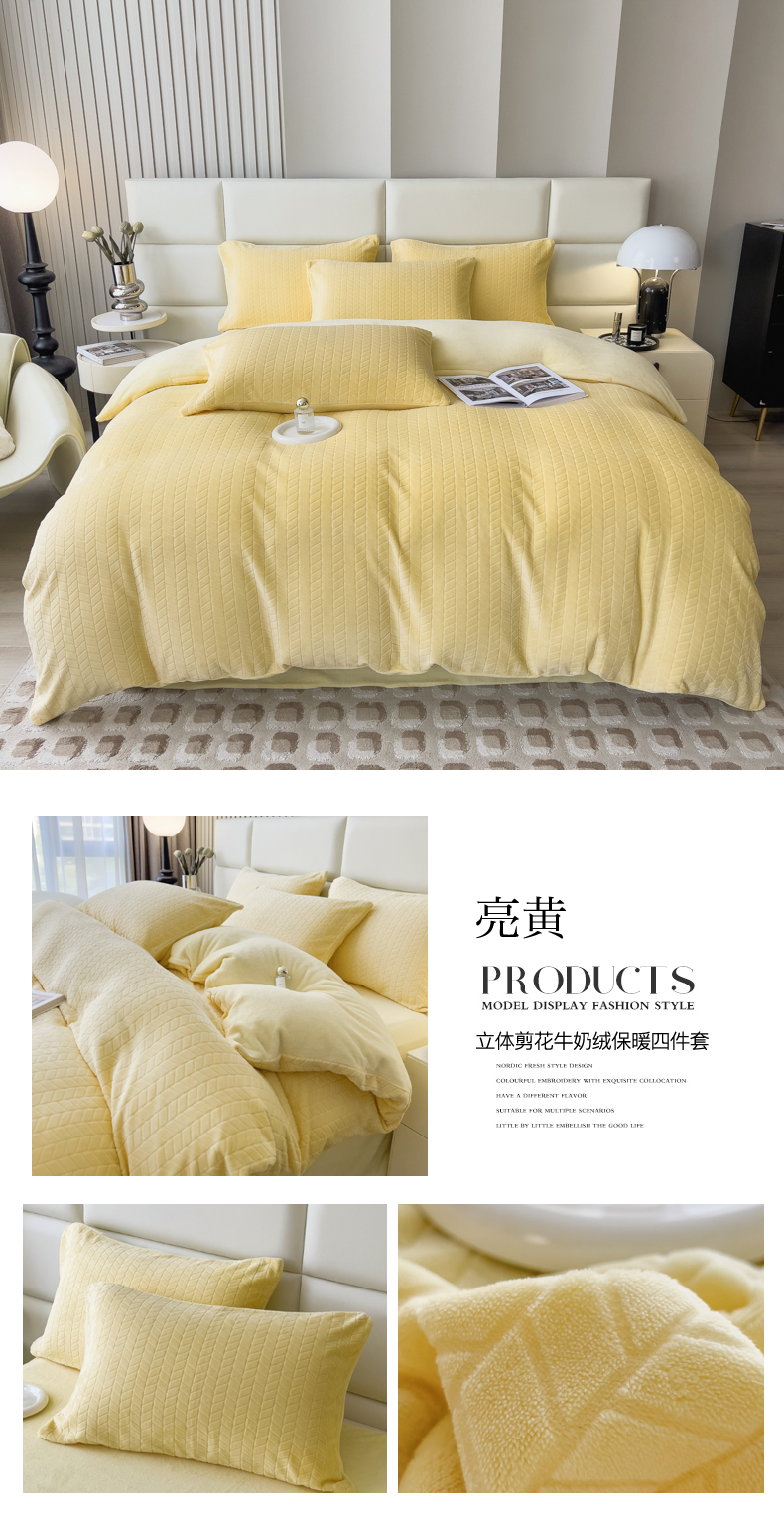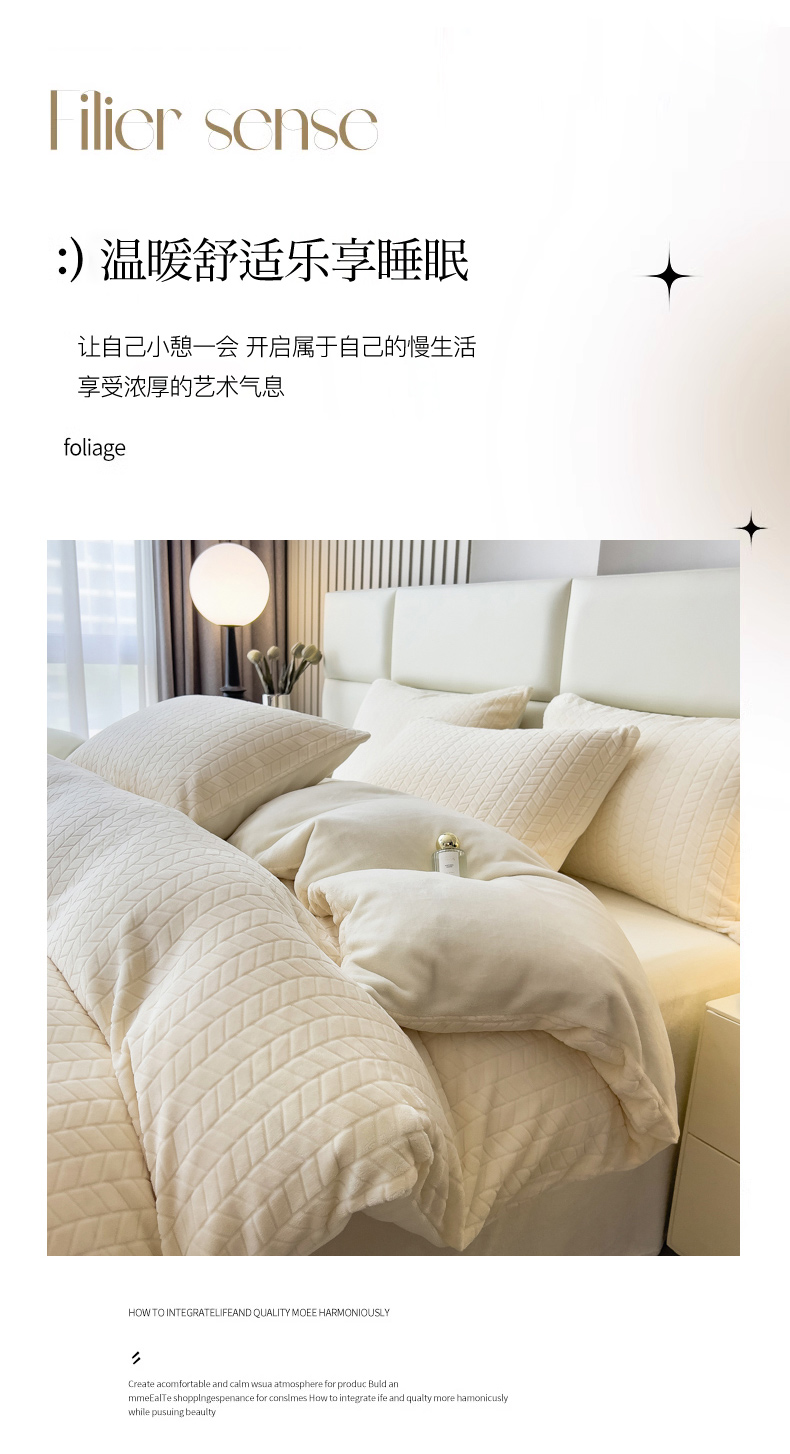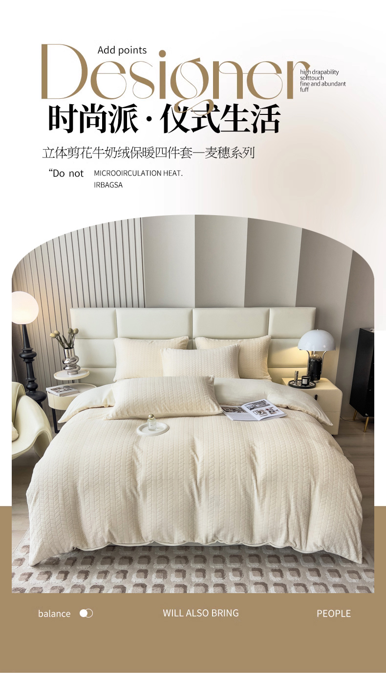 当前位置: 91家纺网 > 商品网购 > 床品套件 > 四件套 > 牛奶绒四件套 > 印季家纺 2025新款立体剪花麦穗牛奶绒四件套 奶白