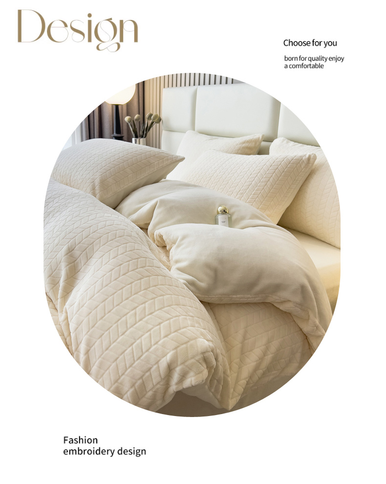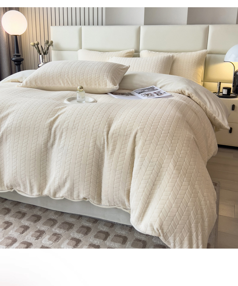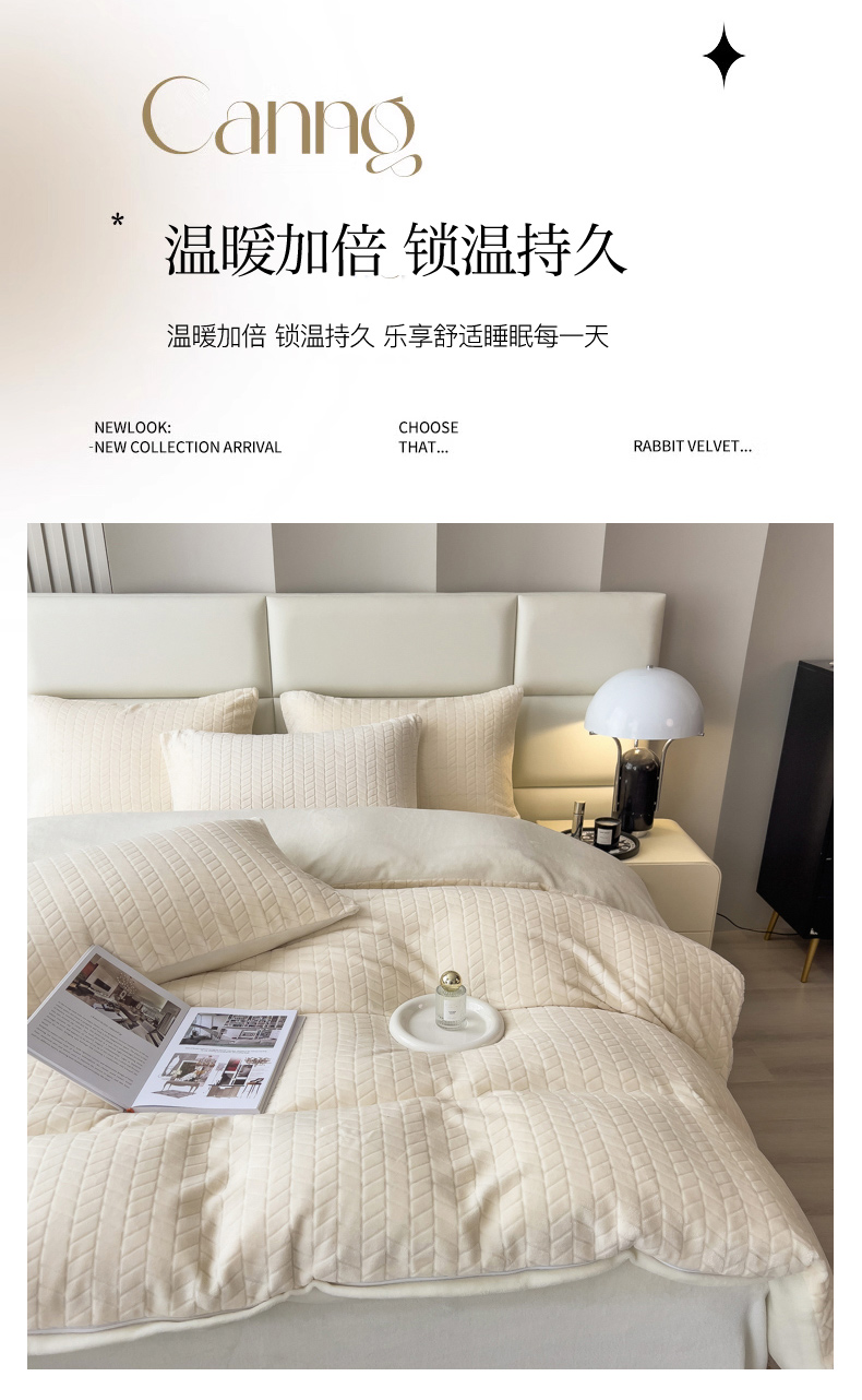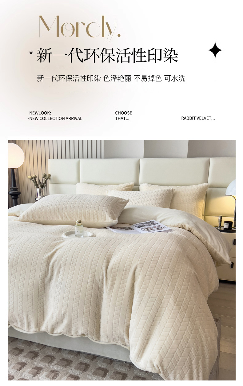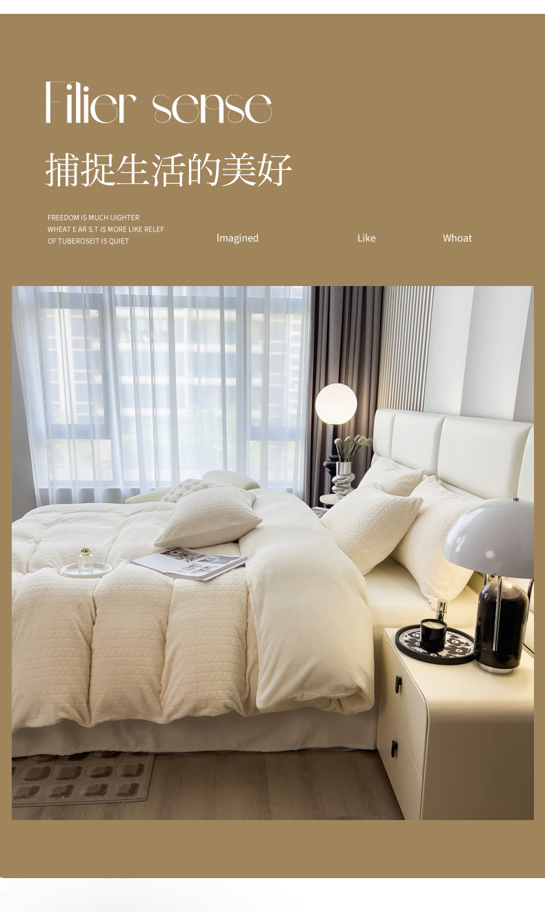 当前位置: 91家纺网 > 商品网购 > 床品套件 > 四件套 > 牛奶绒四件套 > 印季家纺 2025新款立体剪花麦穗牛奶绒四件套 奶白