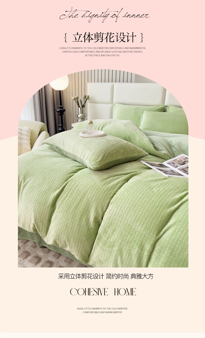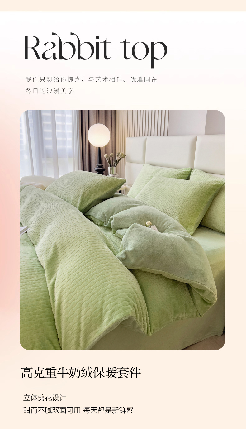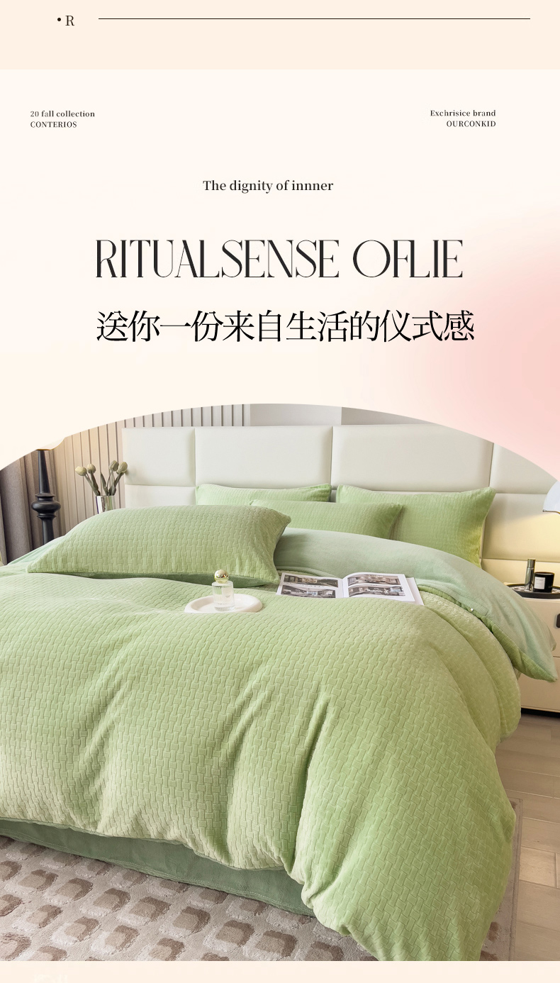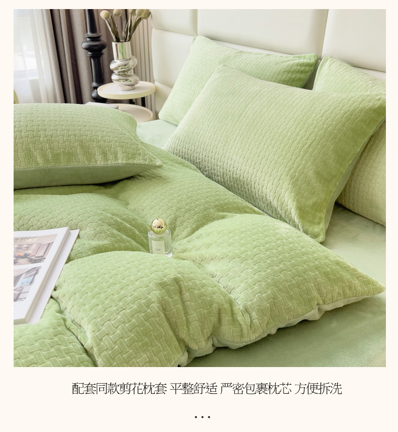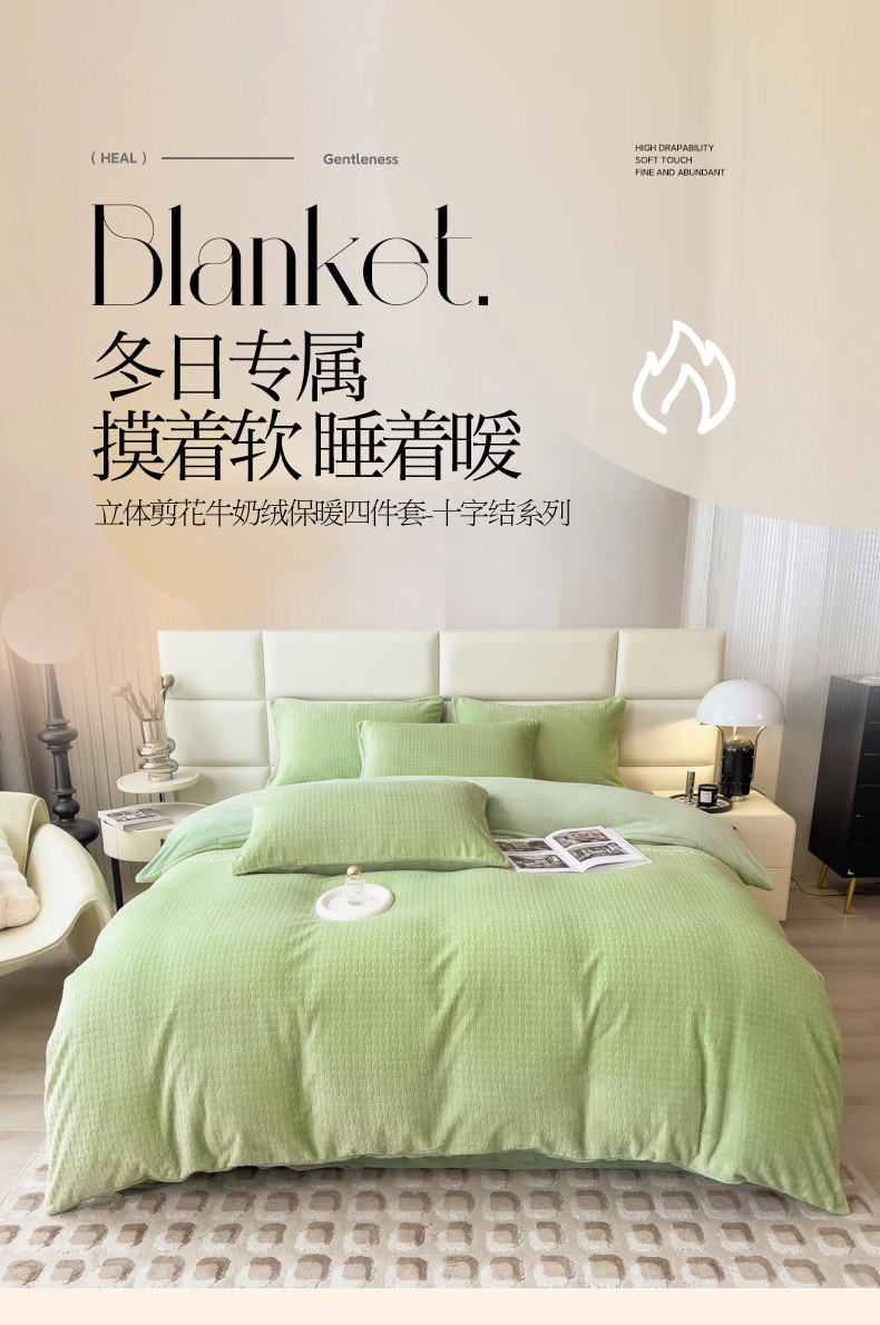 当前位置: 91家纺网 > 商品网购 > 床品套件 > 四件套 > 牛奶绒四件套 > 印季家纺 2025新款立体剪花十字结牛奶绒四件套 草绿