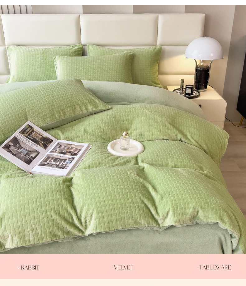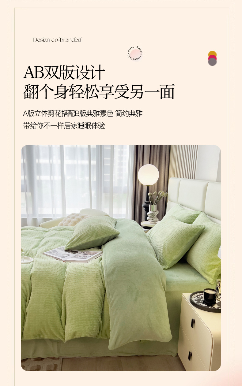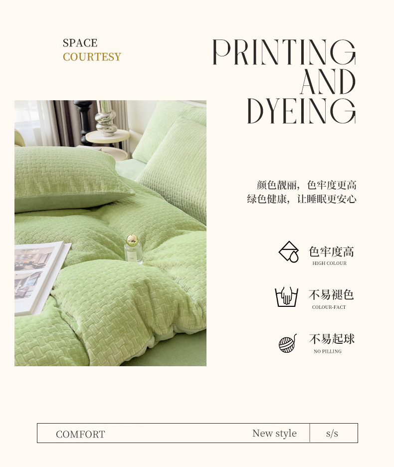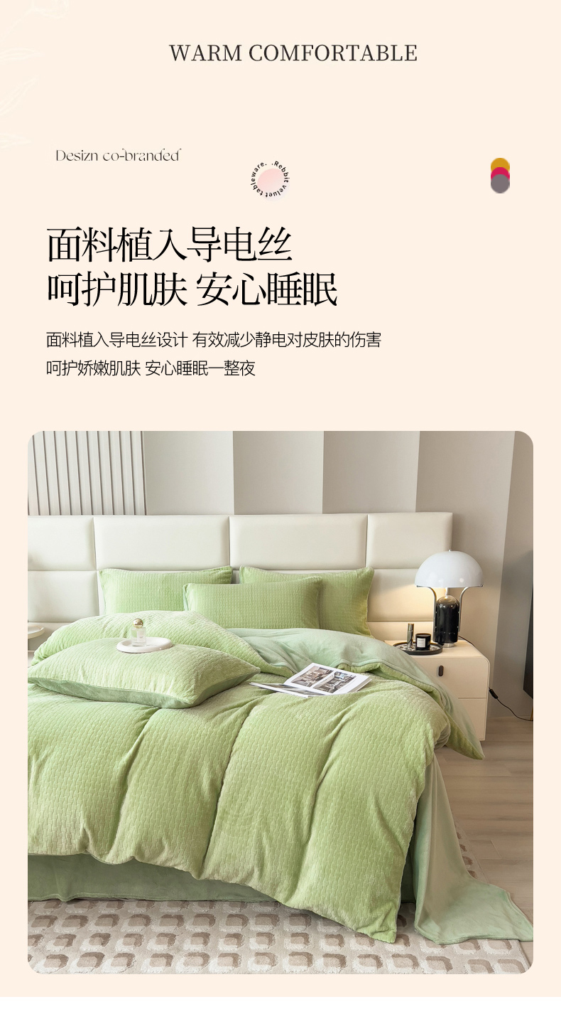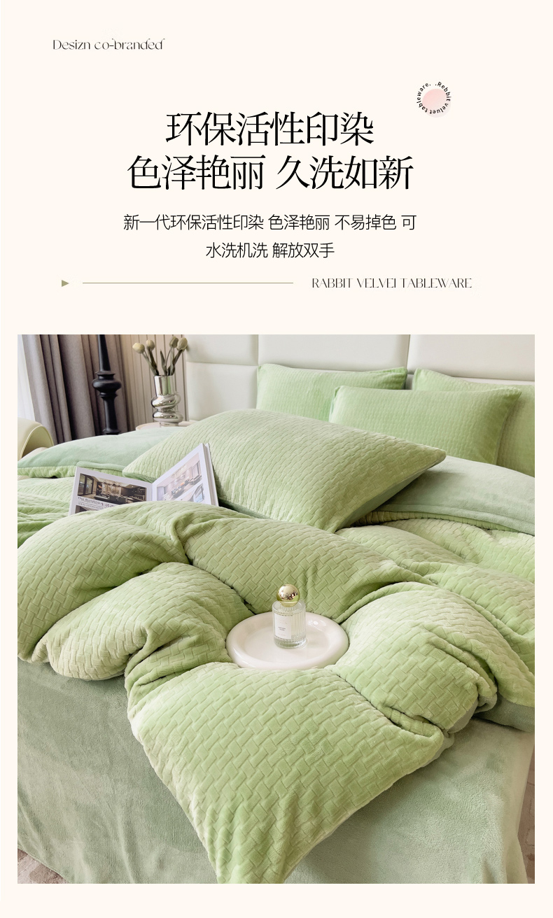 当前位置: 91家纺网 > 商品网购 > 床品套件 > 四件套 > 牛奶绒四件套 > 印季家纺 2025新款立体剪花十字结牛奶绒四件套 草绿