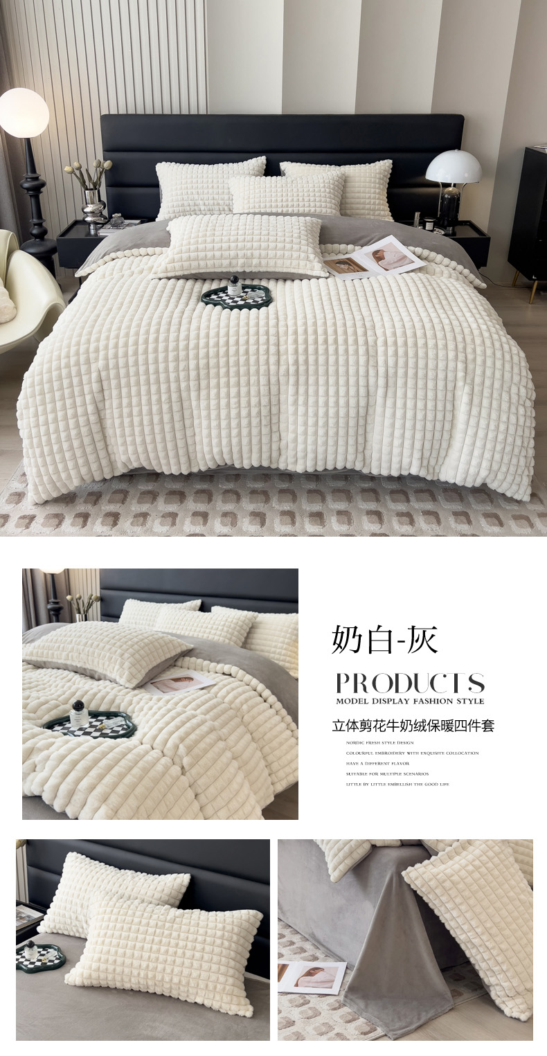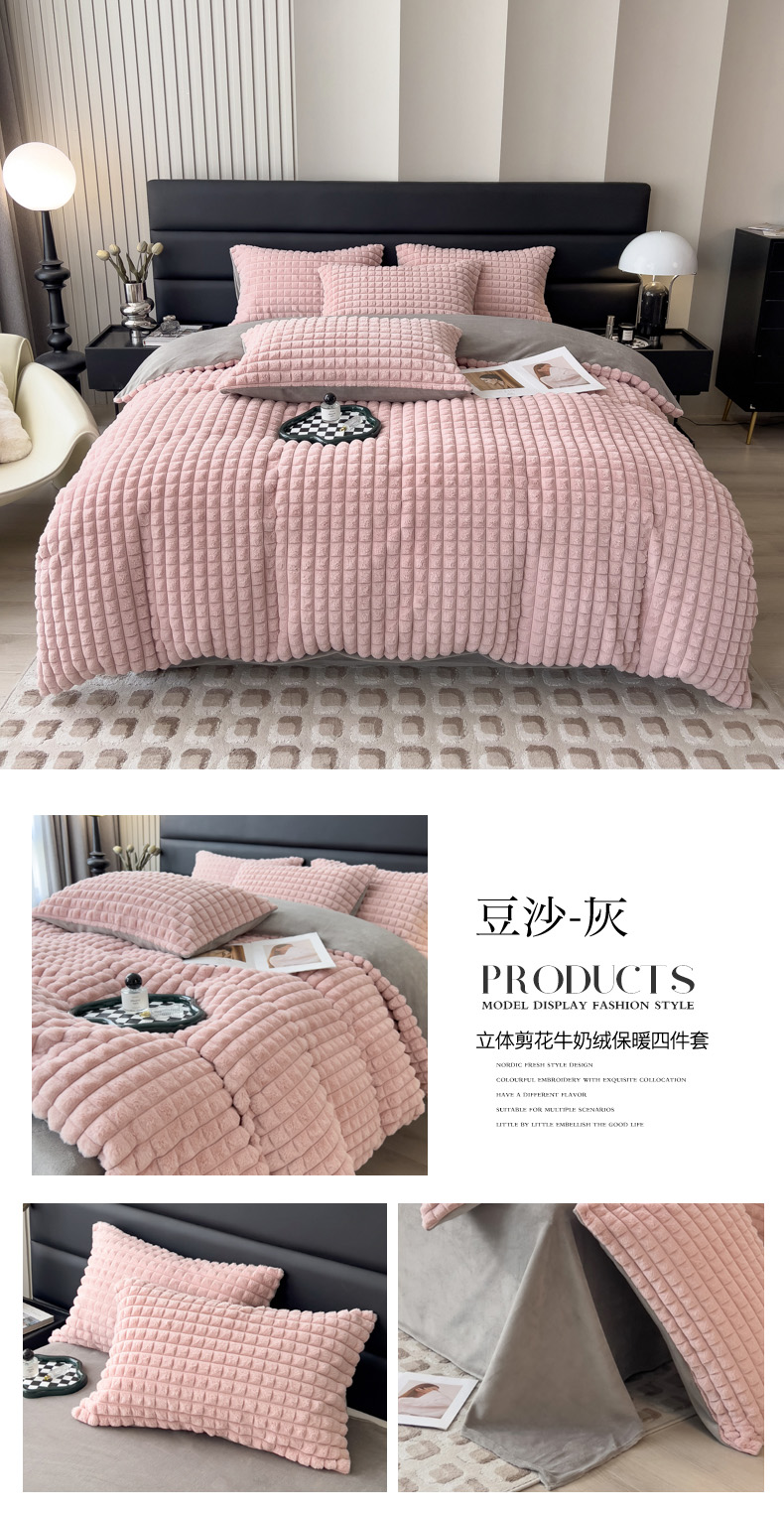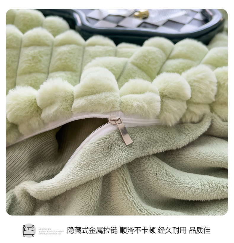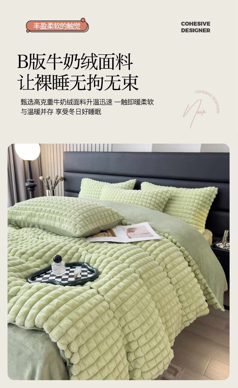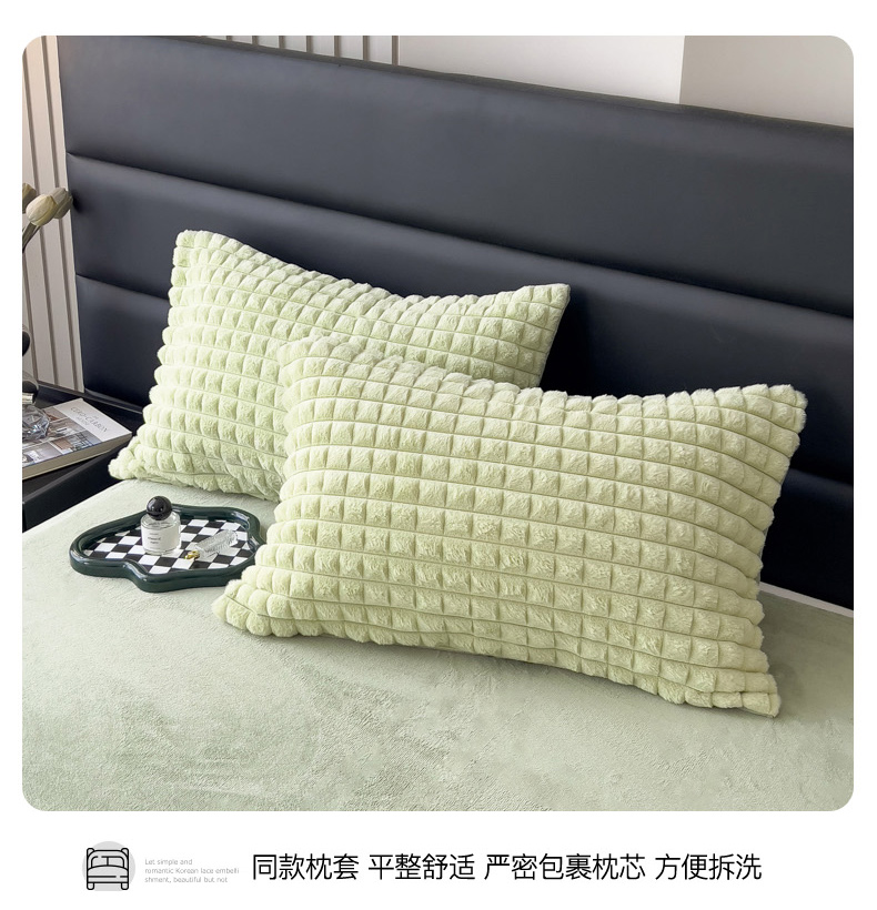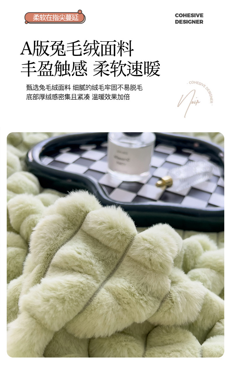 当前位置: 91家纺网 > 商品网购 > 床品套件 > 四件套 > 兔毛绒四件套 > 印季家纺 2025新款立体剪花格子兔毛绒四件套 草绿