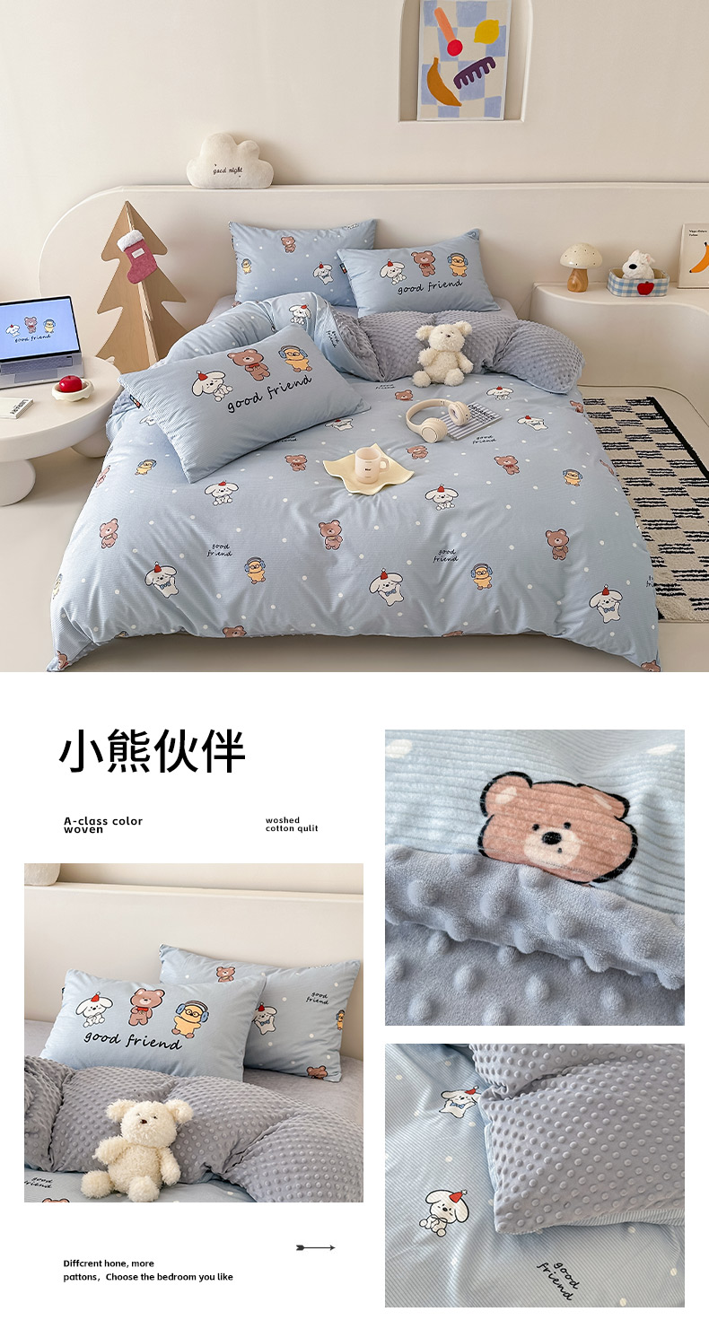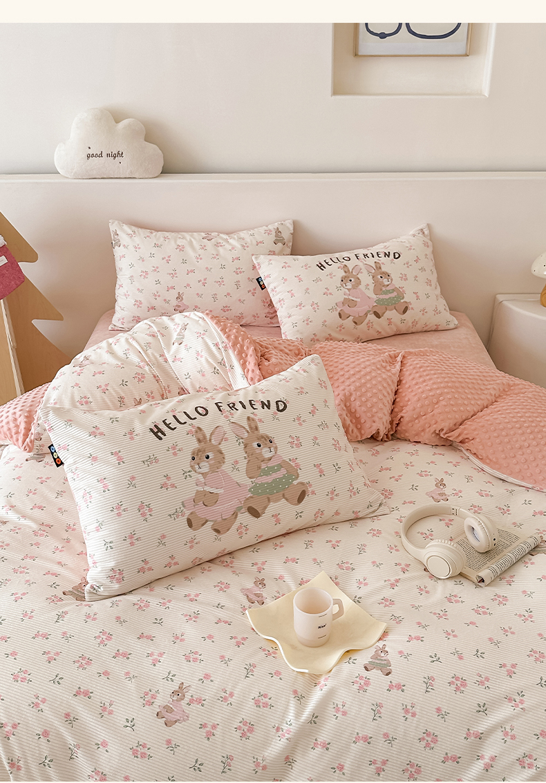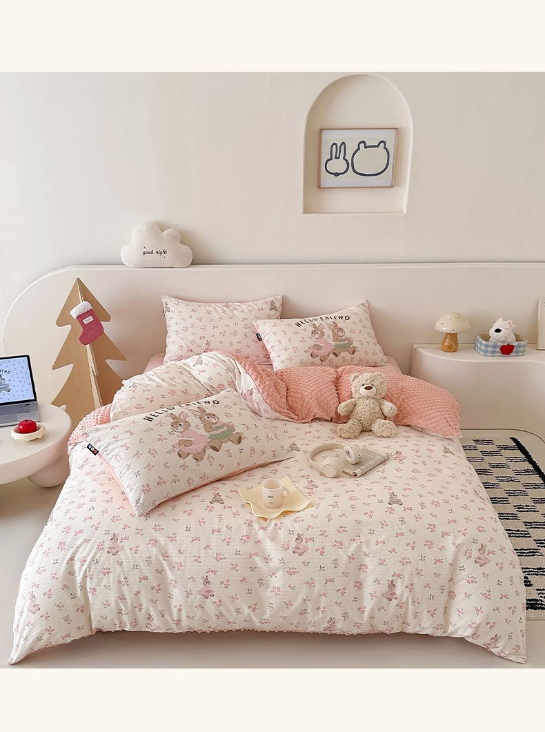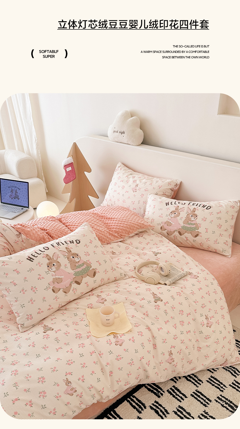 当前位置: 91家纺网 > 商品网购 > 床品套件 > 四件套 > 其它四件套 > RYB红黄兰 2025新款设计师原创灯芯绒+豆豆绒婴儿绒数码印花四件套 花蜜粉兔