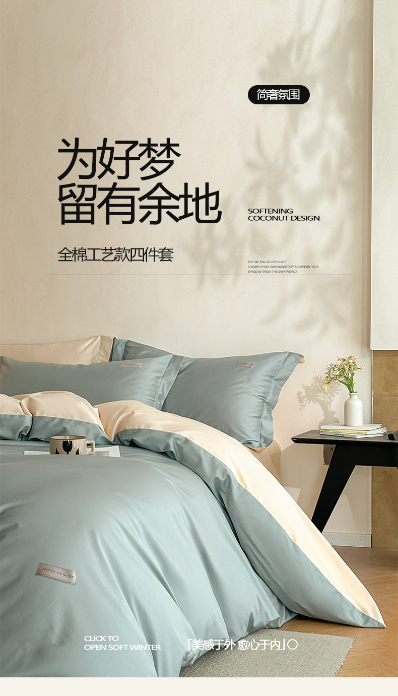 当前位置: 91家纺网 > 商品网购 > 床品套件 > 四件套 > 全棉普通四件套 > 涵宸家纺 2026新款全棉工艺款简奢织标四件套-彼得 彼得-绿
