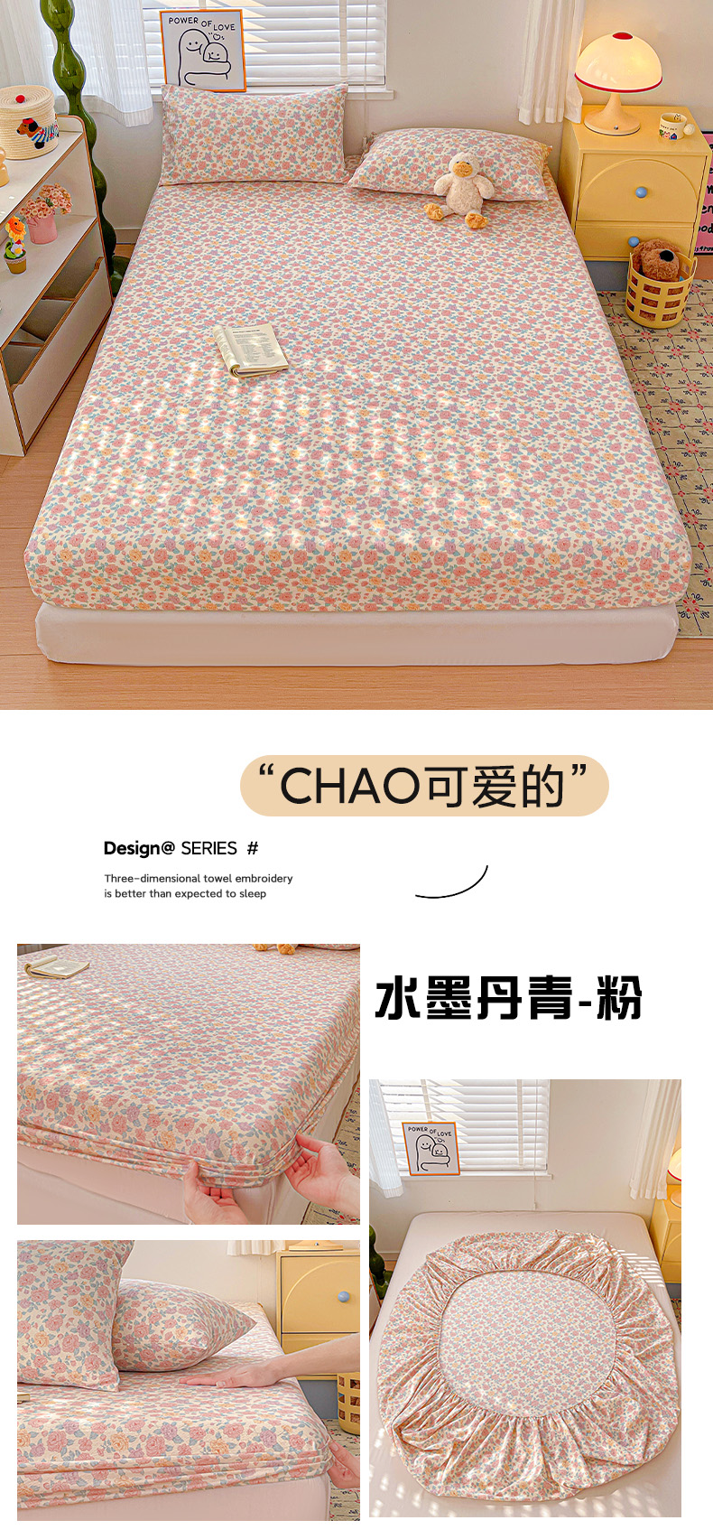 • 91家纺网 家纺一手货源 找家纺 仟人梦 2026新款云感双层纱印花单床笠床笠单件 水墨丹青-粉