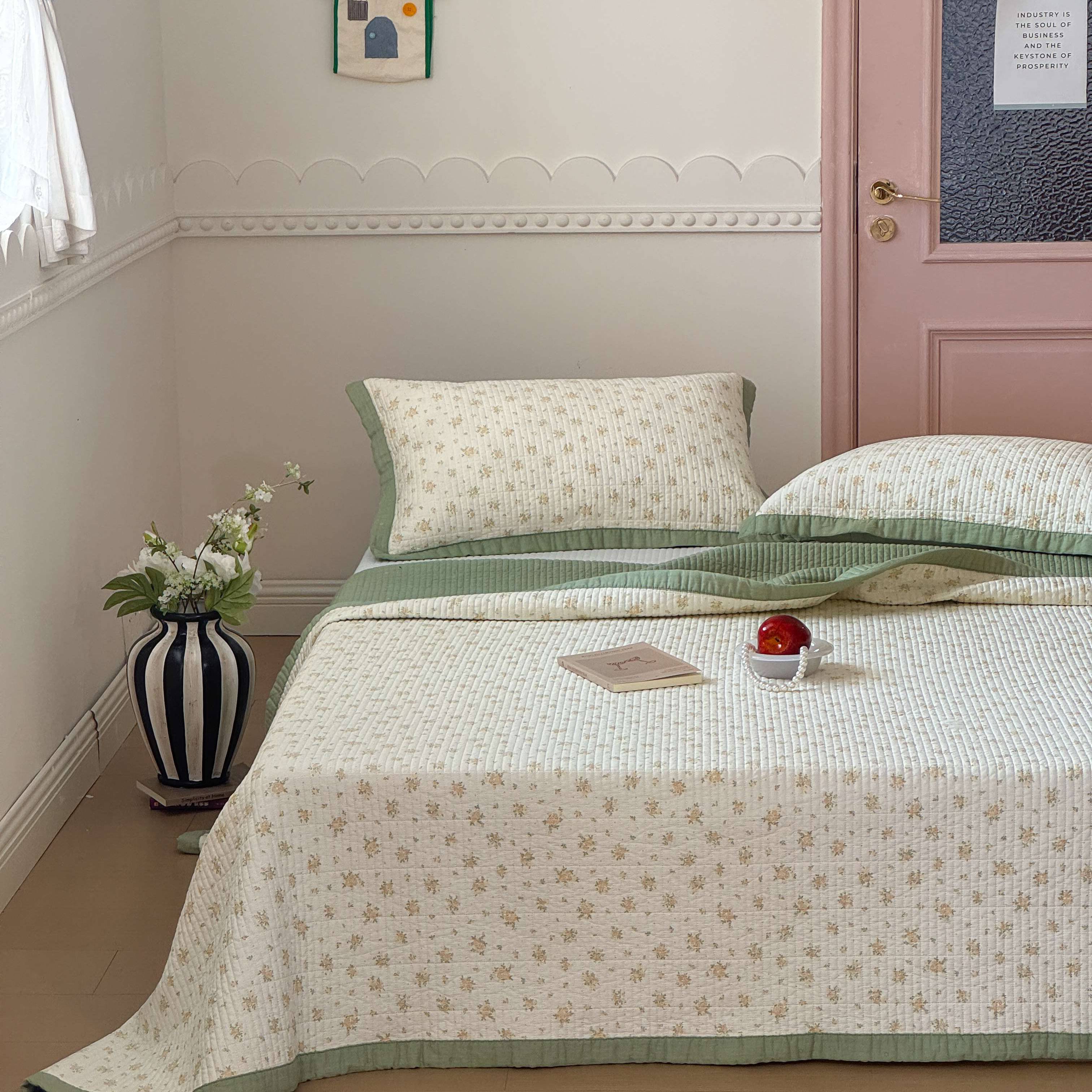 (总)床盖工厂店 2026新款双面水洗全棉填充棉花床盖三件套-欧瑞系列,欧瑞-粉,欧瑞-绿,欧瑞-米,组合图