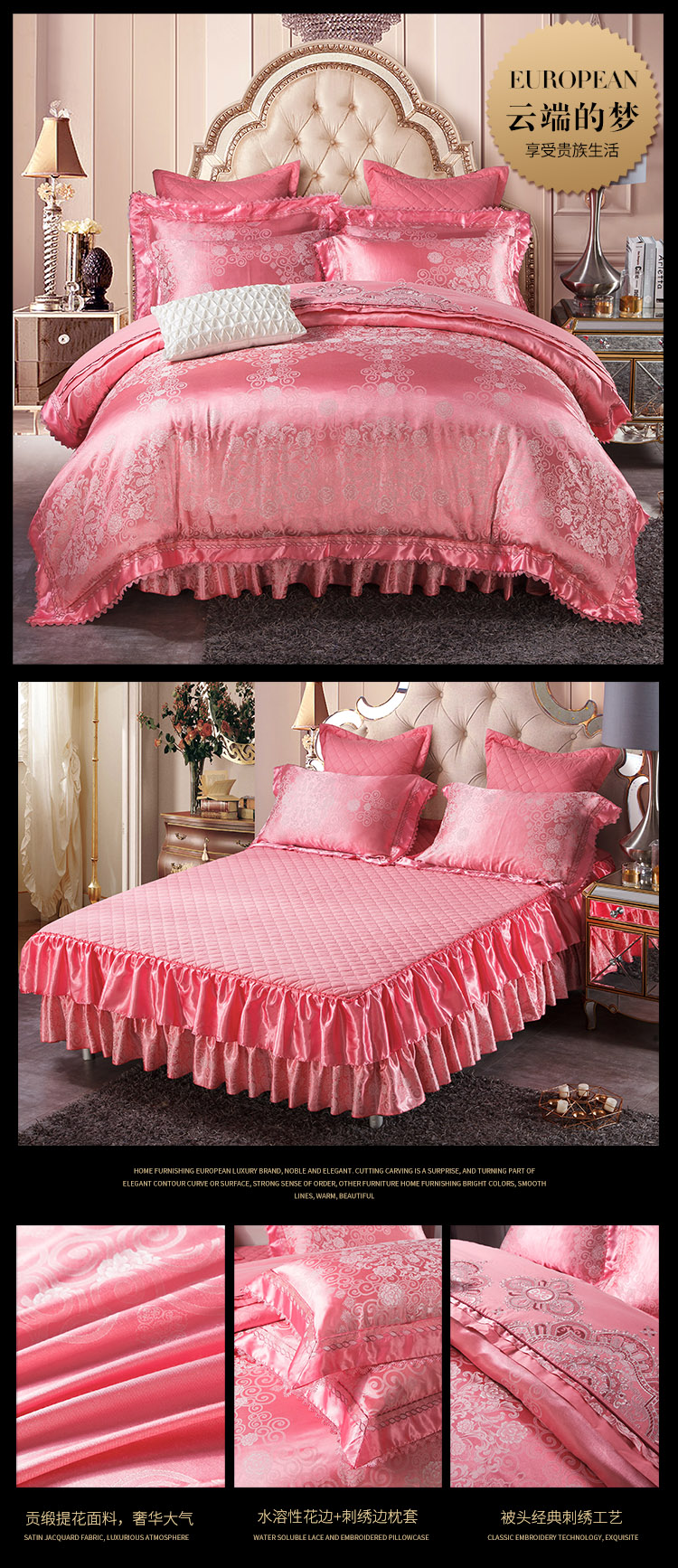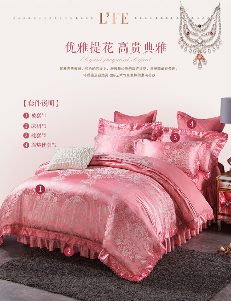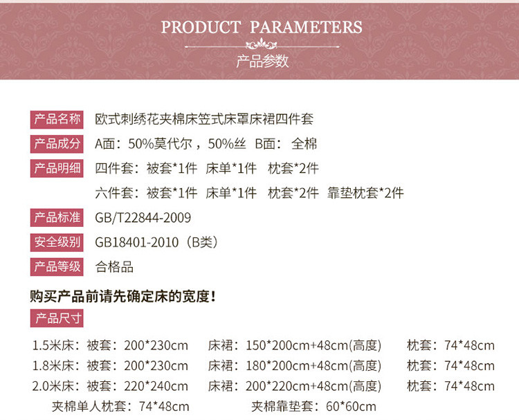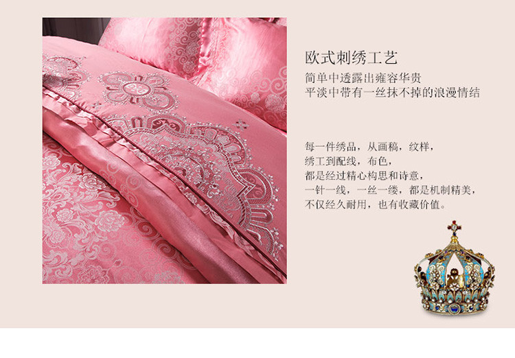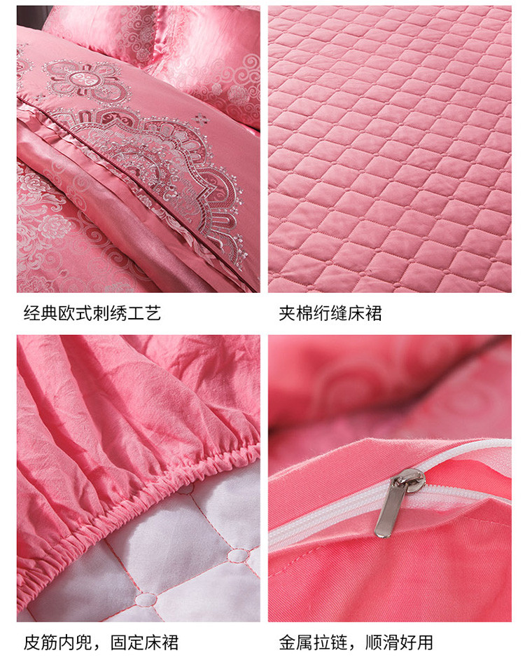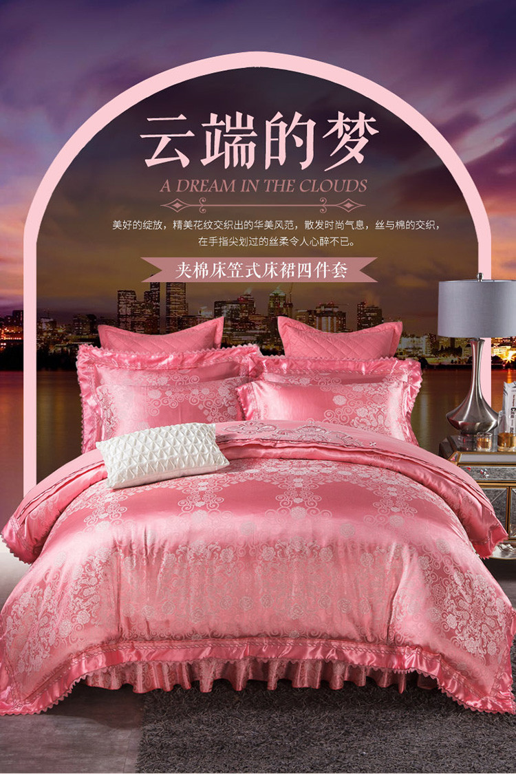 当前位置: 91家纺网 > 商品网购 > 床品套件 > 四件套 > 全棉普通四件套 > 兴美佳家纺欧式刺绣花夹棉床笠式床罩床裙四件套云端的梦—红玉