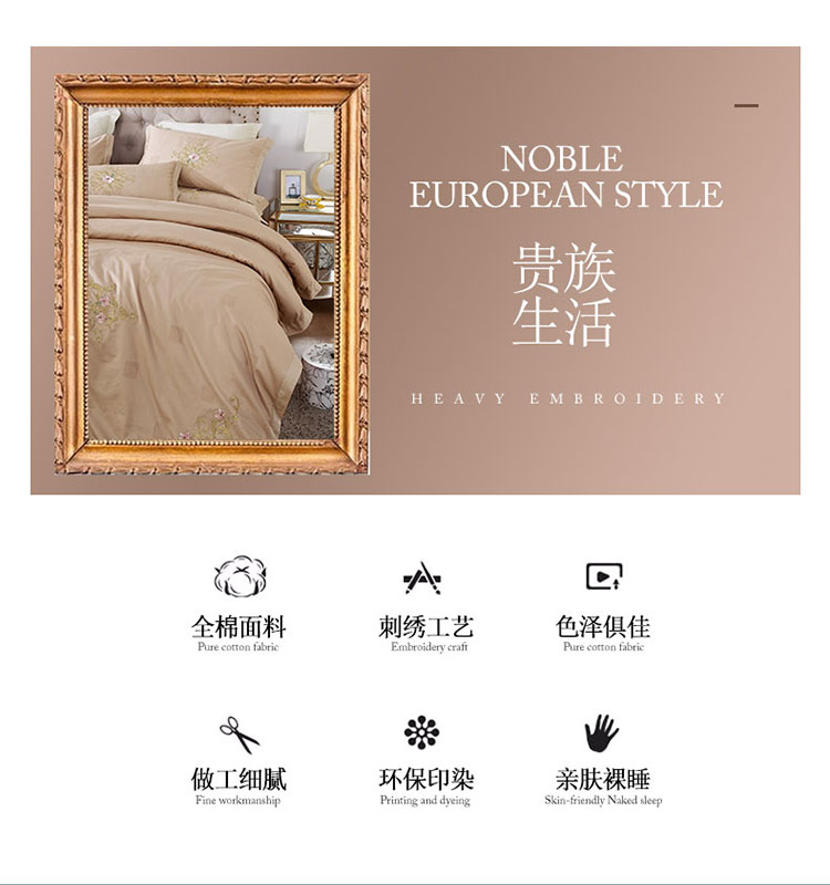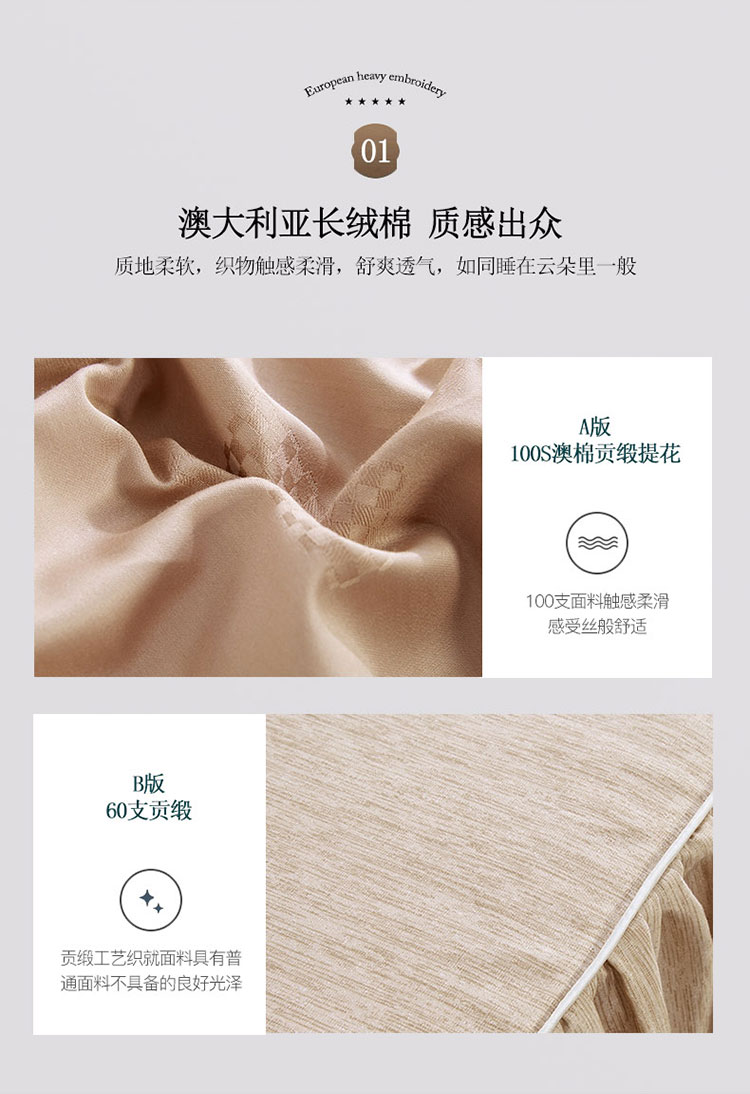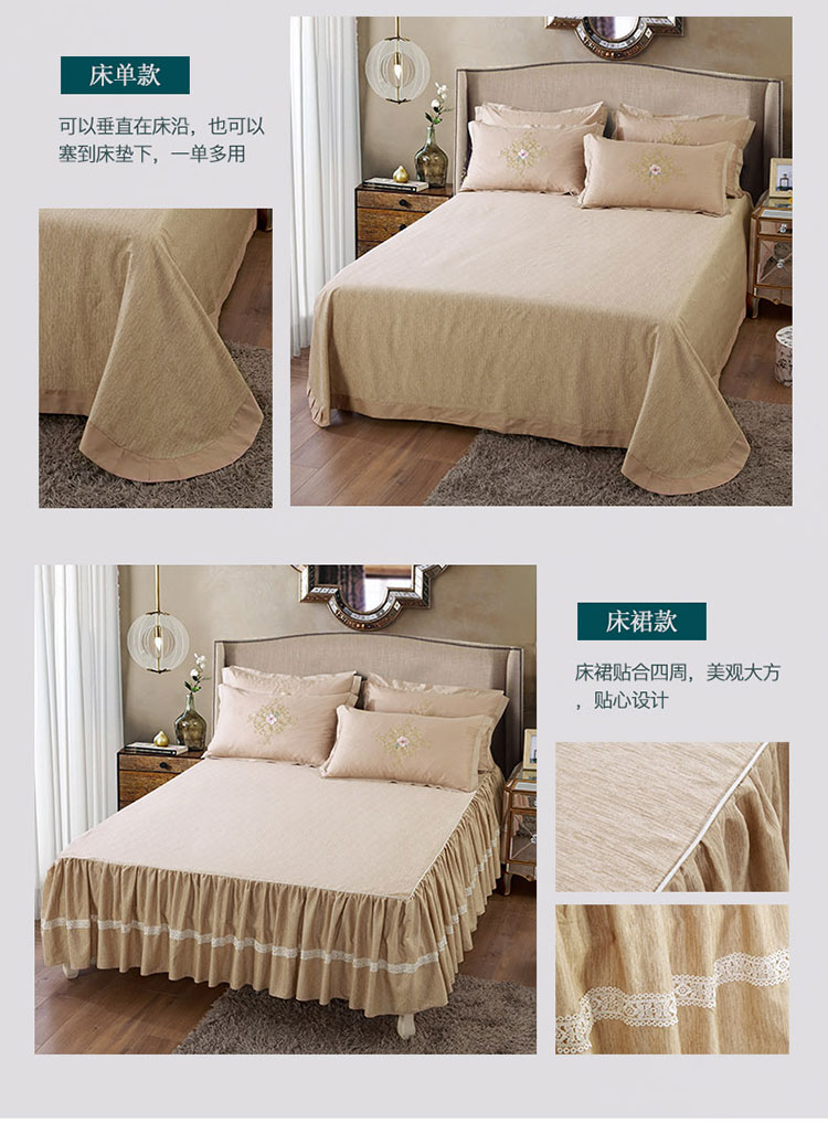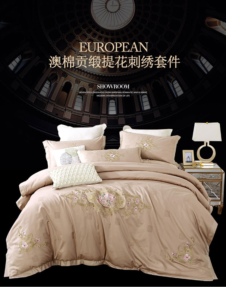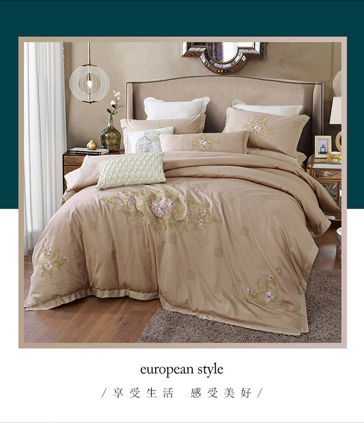 商品名称:兴美佳100S澳棉高端绣花床单床裙床笠款四件套维特蕾莎卡其