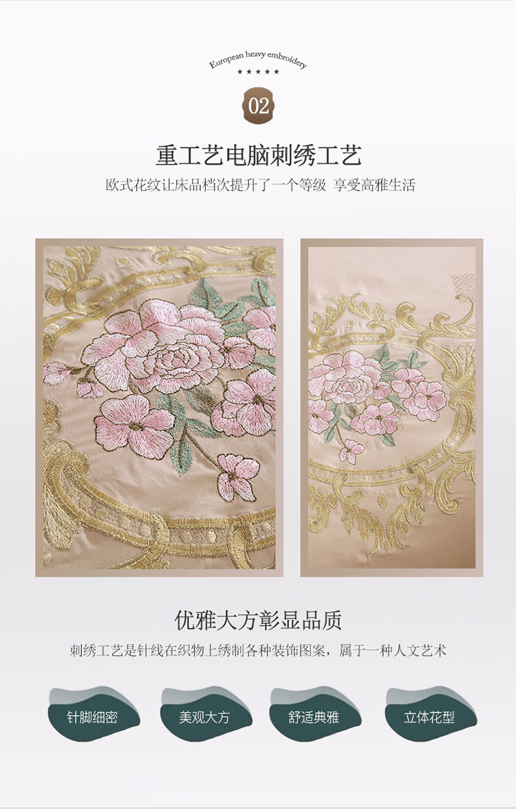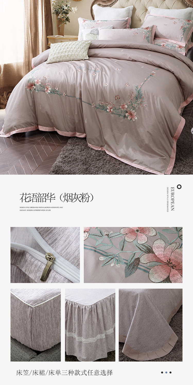 (总)兴美佳家纺 欧式60s贡缎长绒棉刺绣四件套,幽兰古调-蓝,幽兰古调-紫