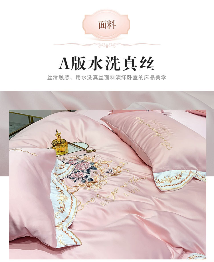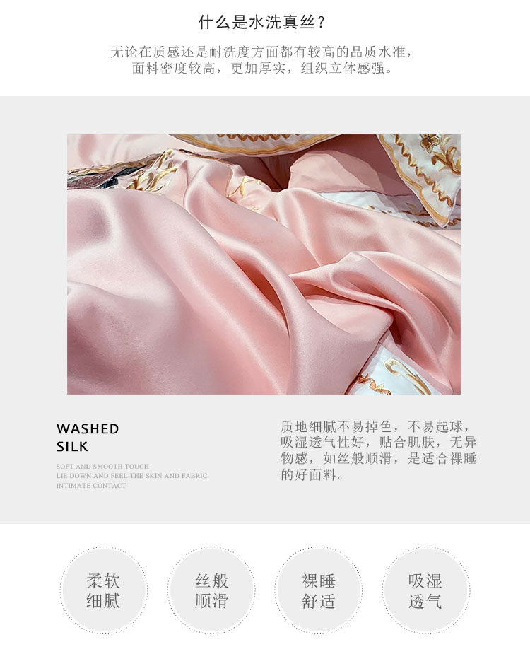 商品名称:安妮 2020新款双面水洗真丝贡缎四件套 玉粉