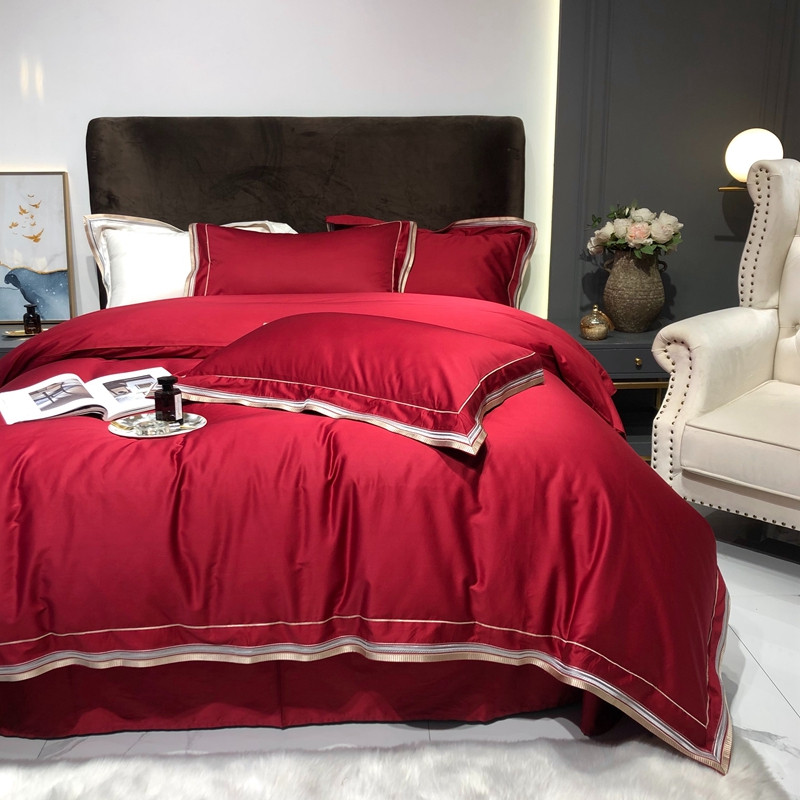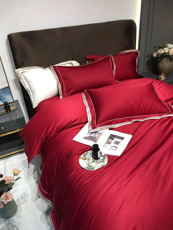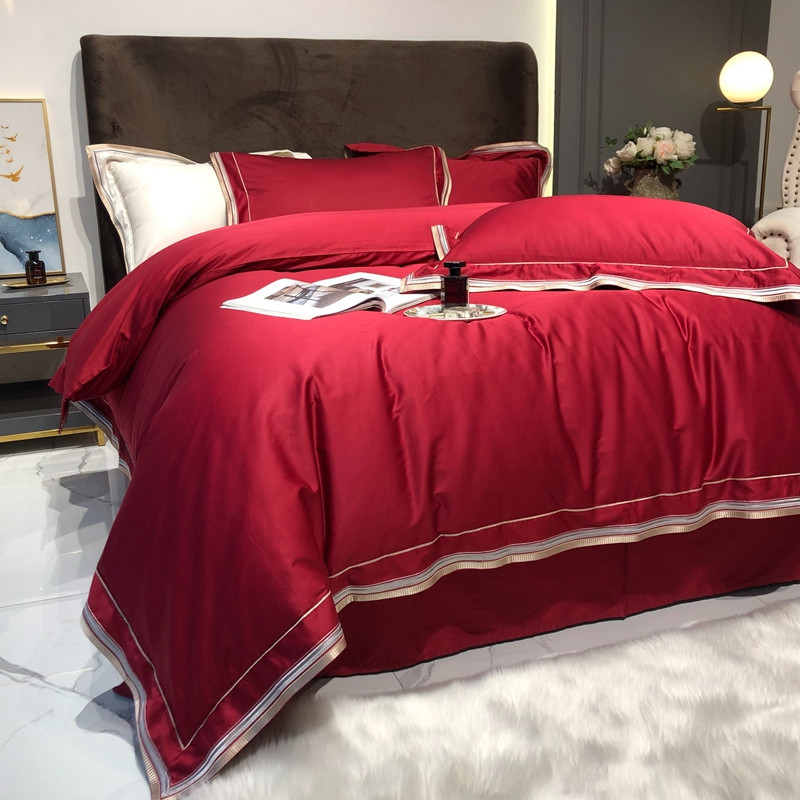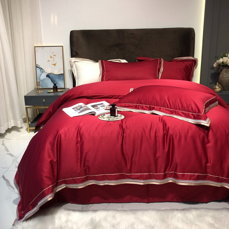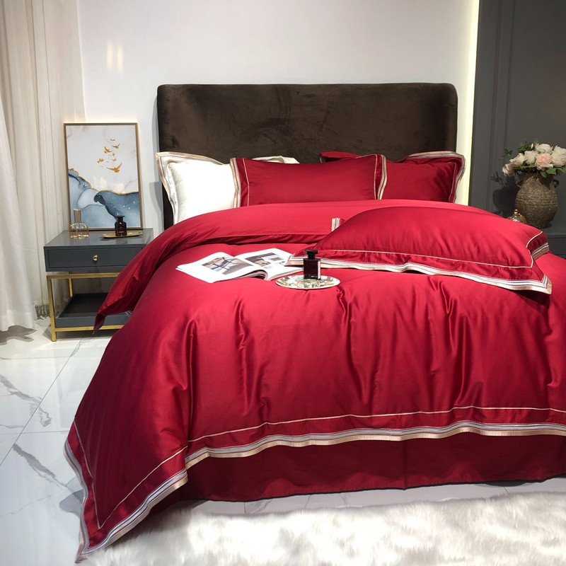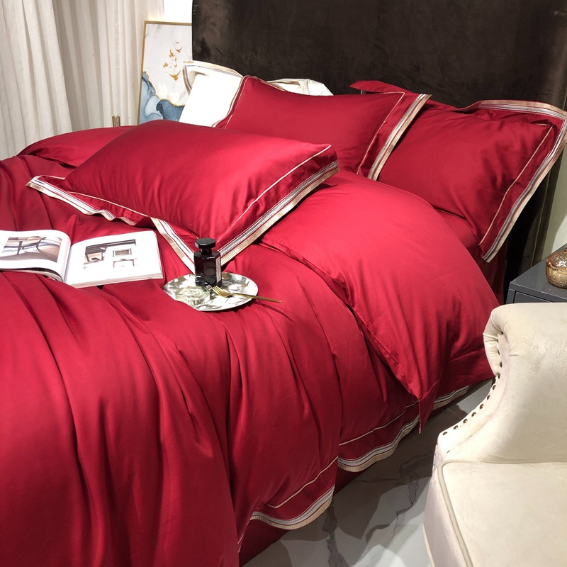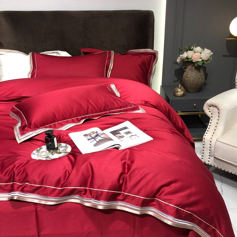 太古汇 2020新款60支长绒棉高定绣花赫本系列四件套 柚红