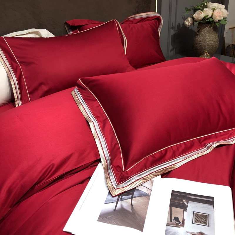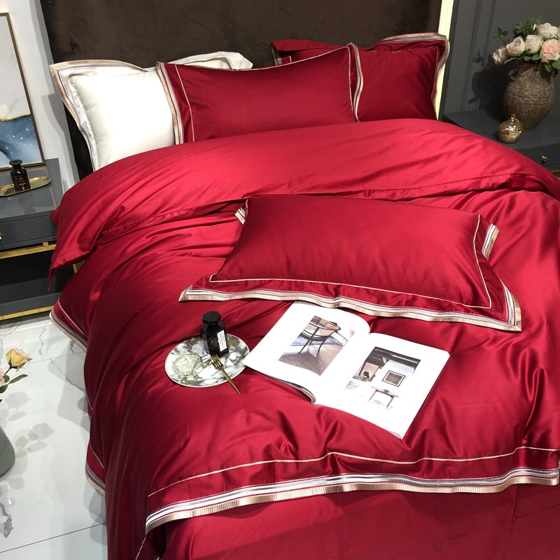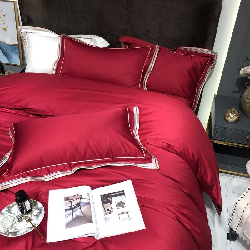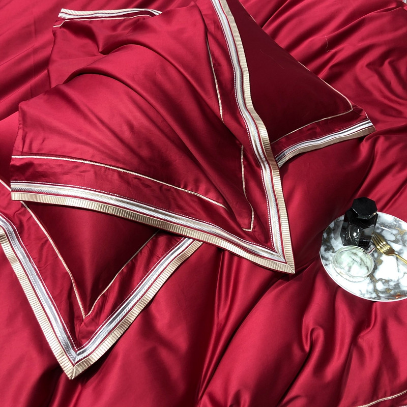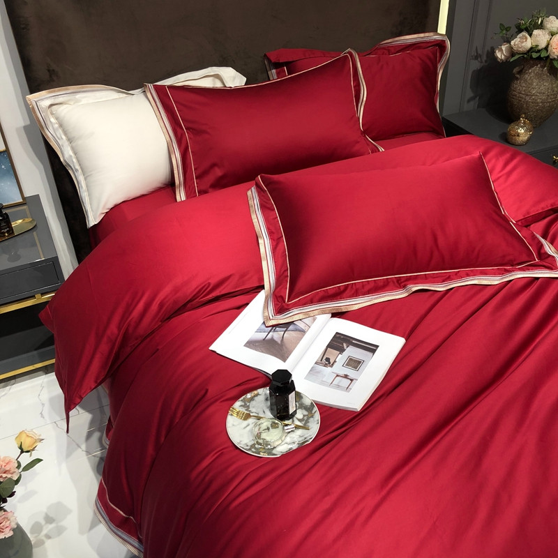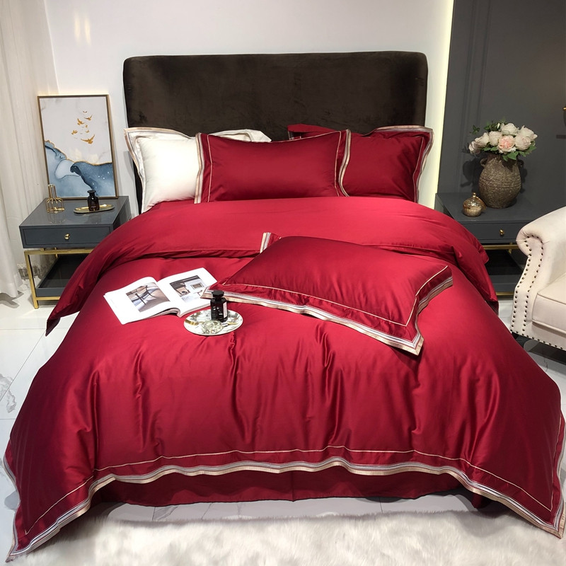 太古汇 2020新款60支长绒棉高定绣花赫本系列四件套 柚红