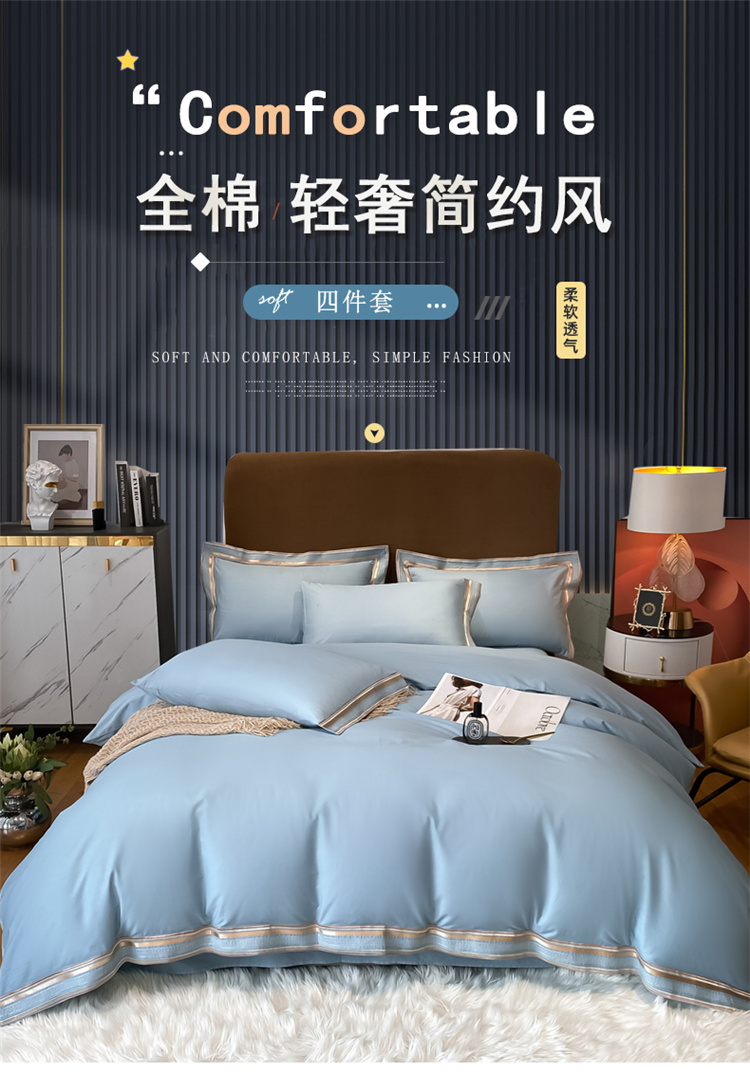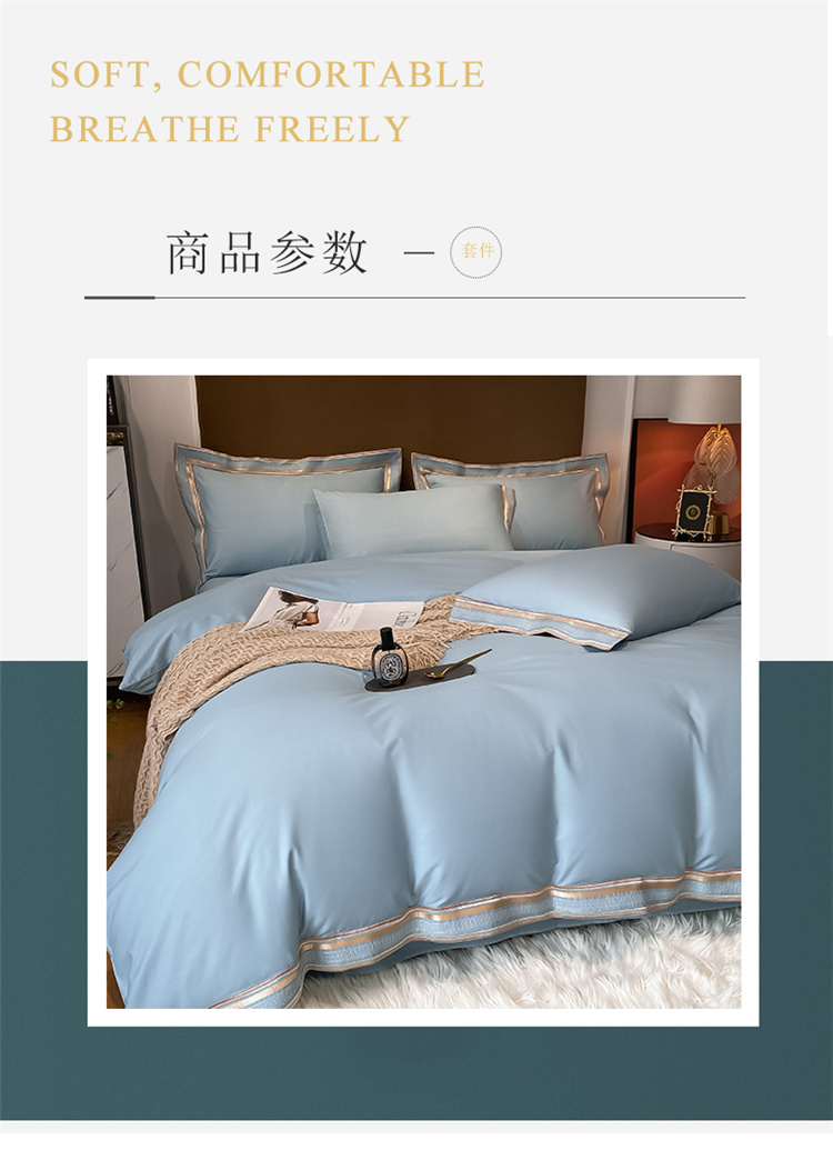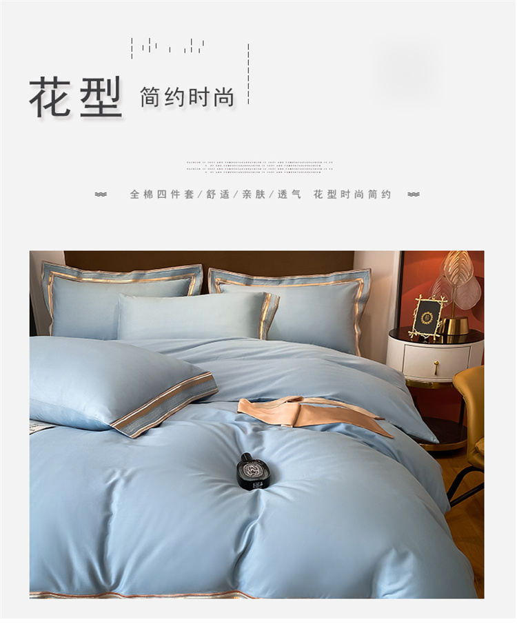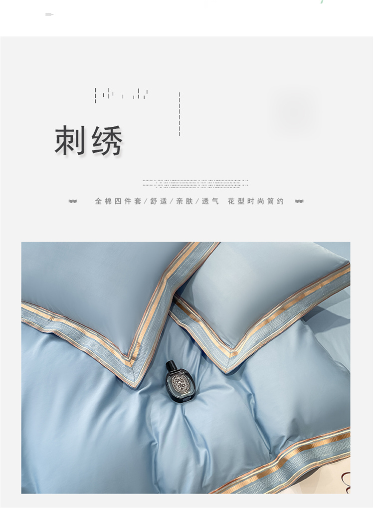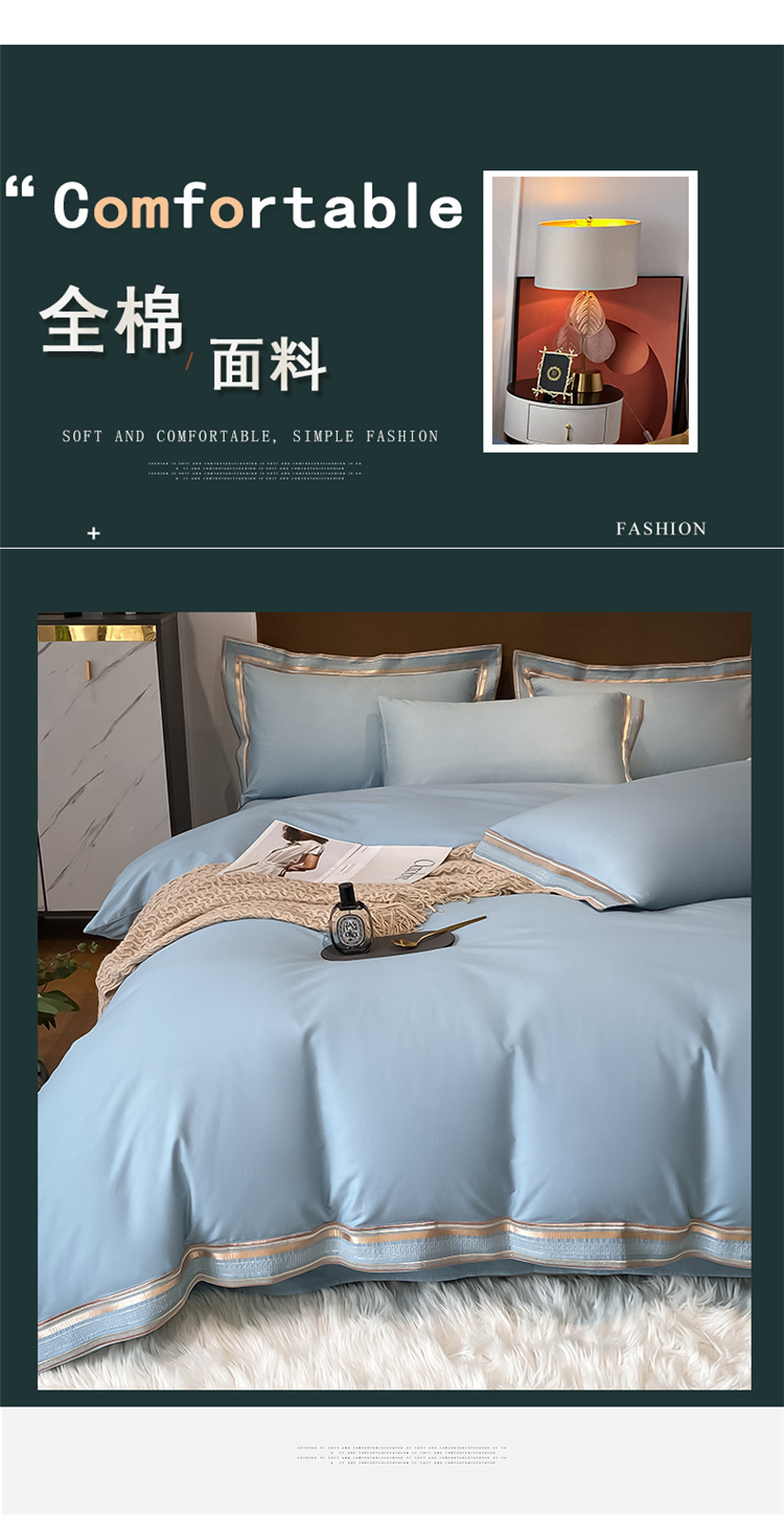 商品名称:安妮家居 2021新款全棉轻奢刺绣简约风四件套-米兰 摩卡蓝