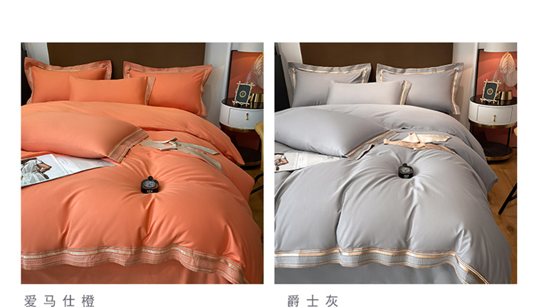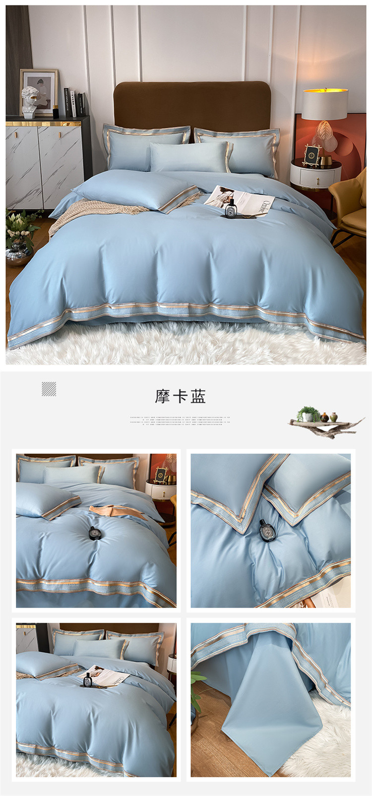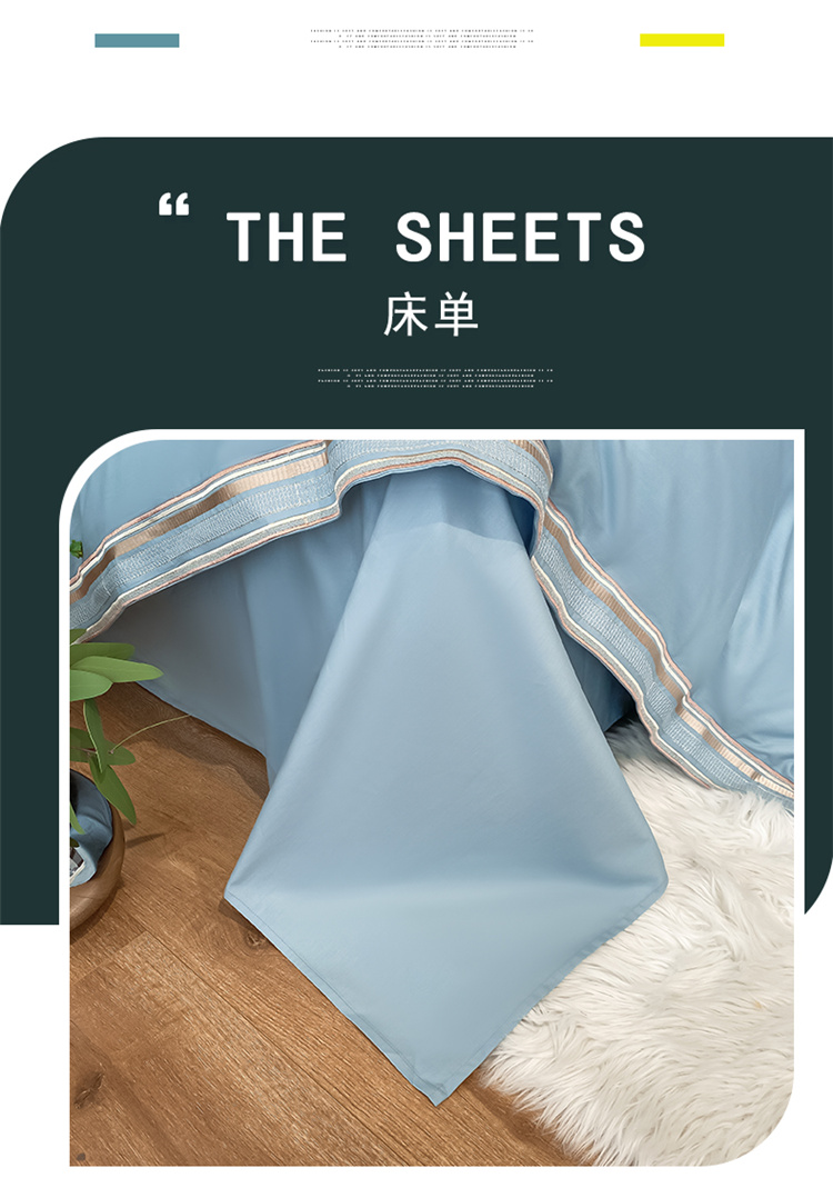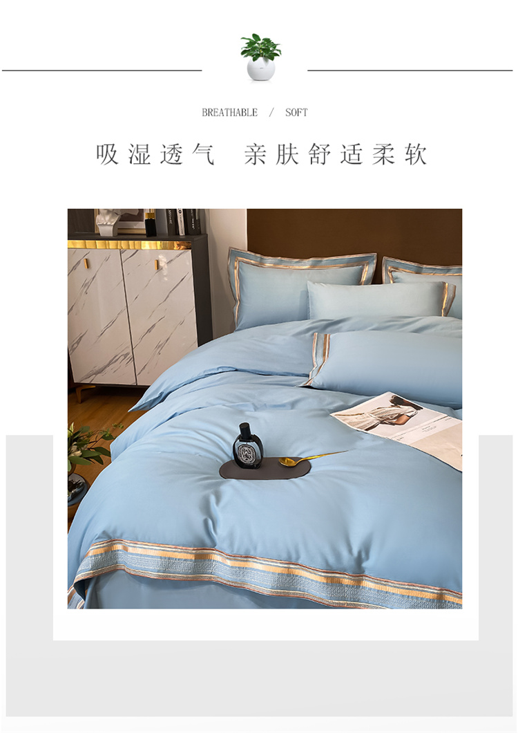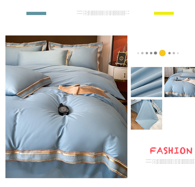 商品名称:安妮家居 2021新款全棉轻奢刺绣简约风四件套-米兰 摩卡蓝