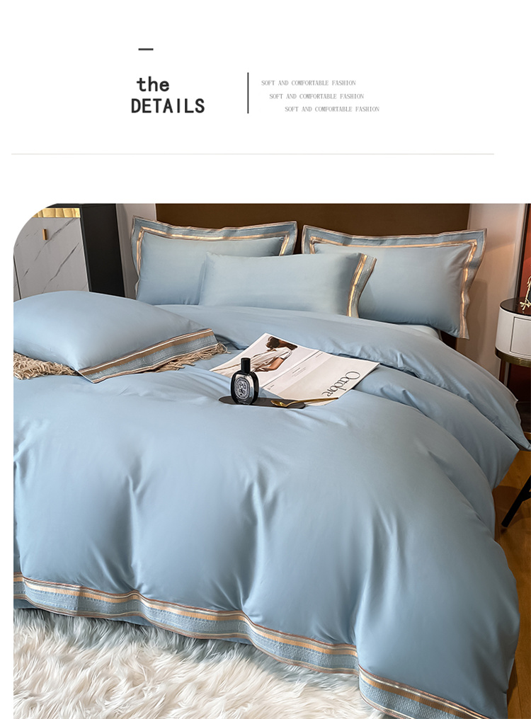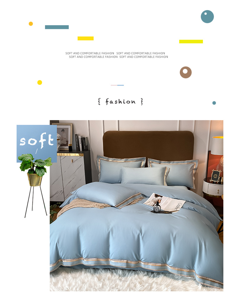 安妮家居 2021新款全棉轻奢刺绣简约风四件套-米兰 摩卡蓝