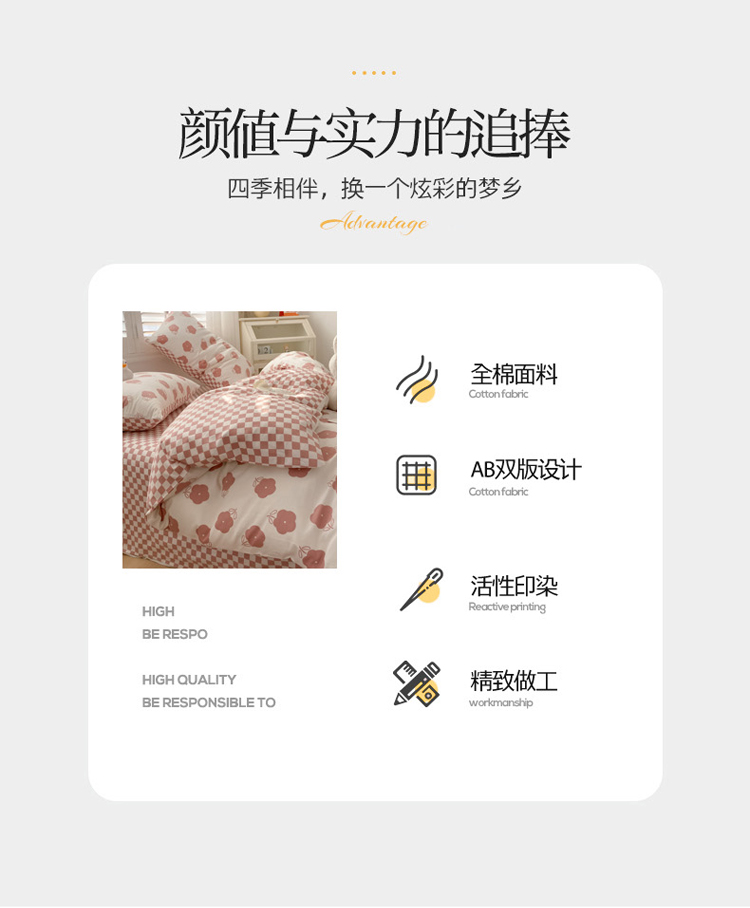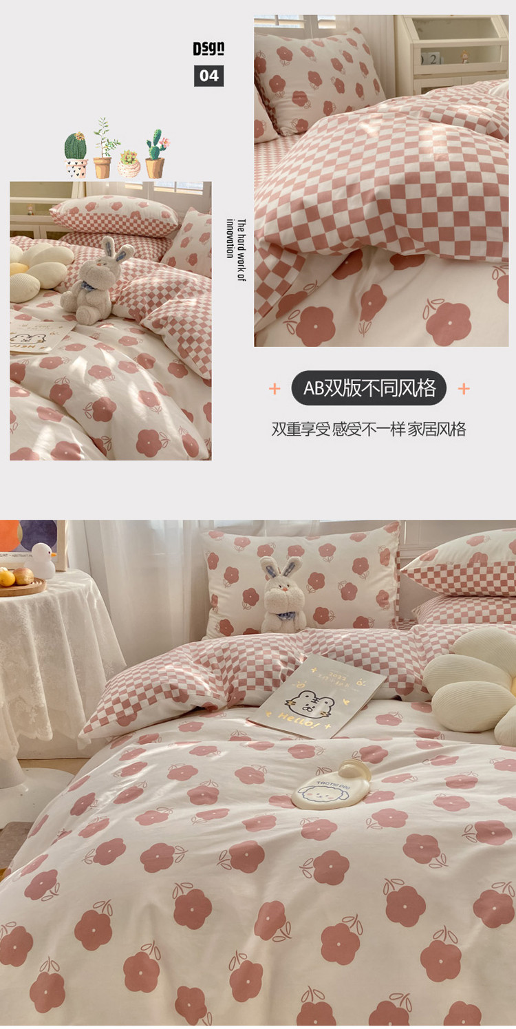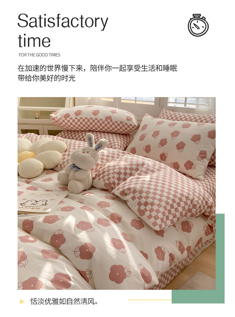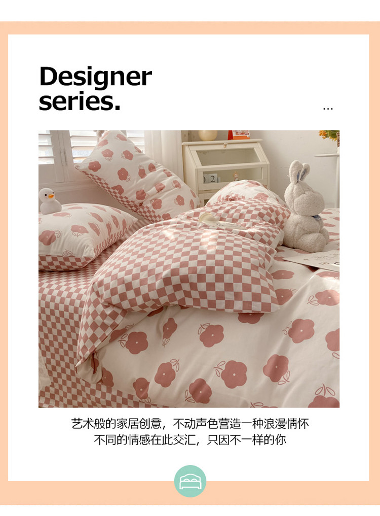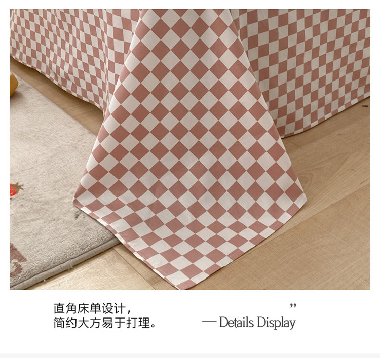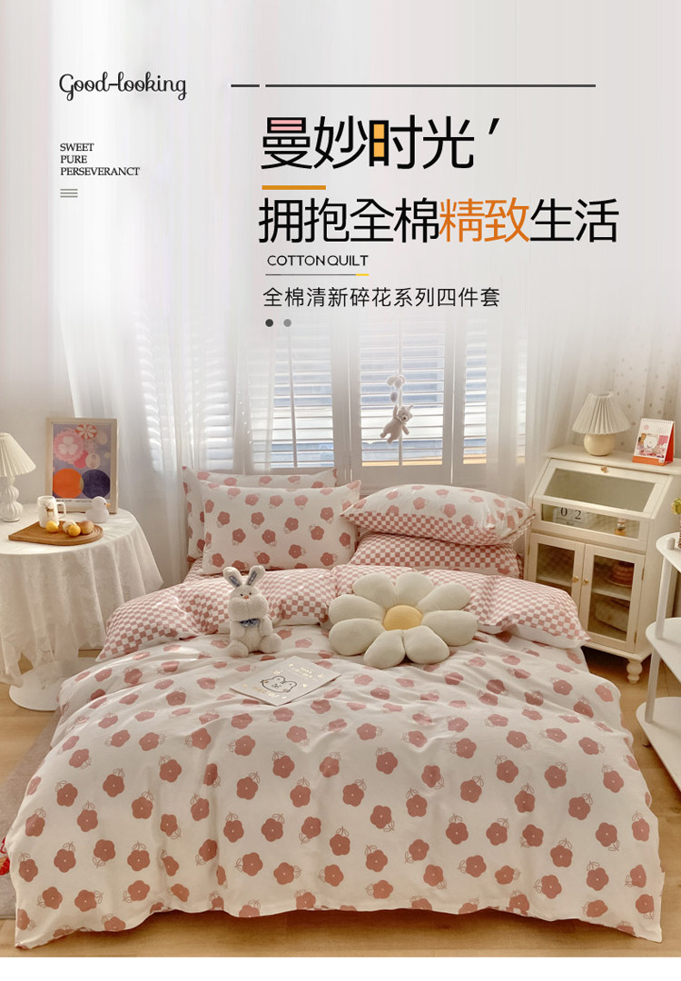 暮思家居 新款40s13372全棉小清新小碎花纯棉四件套 棋盘小花粉