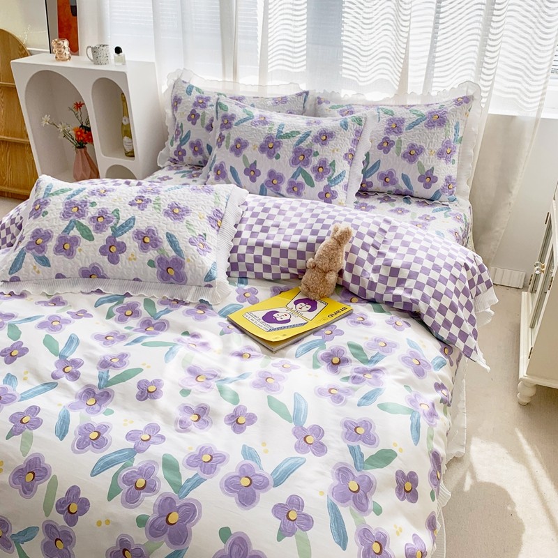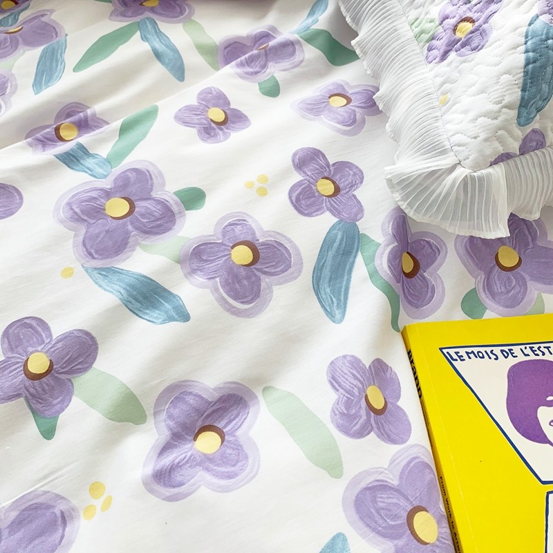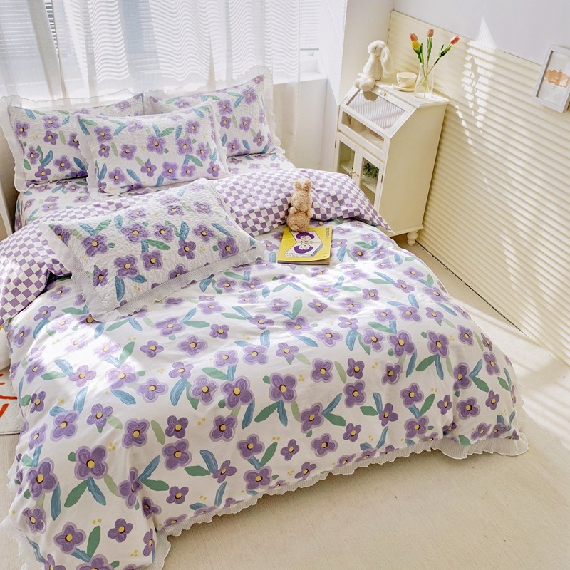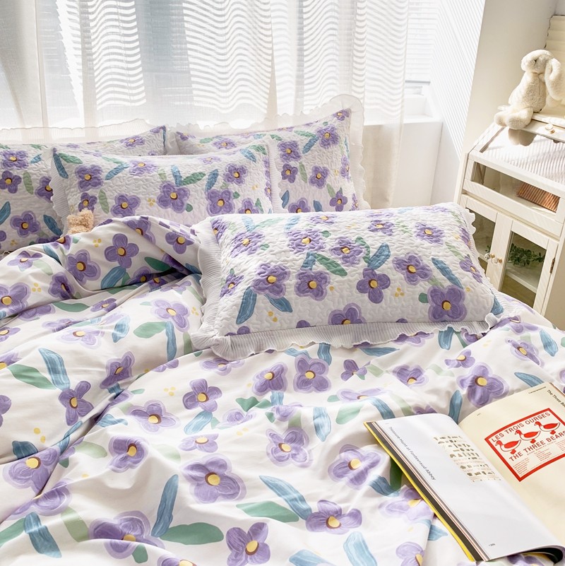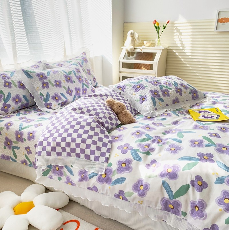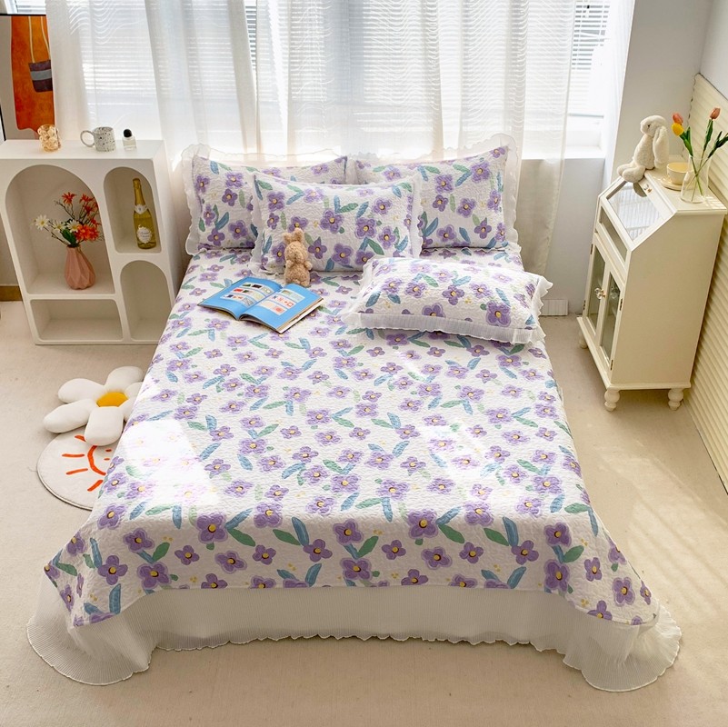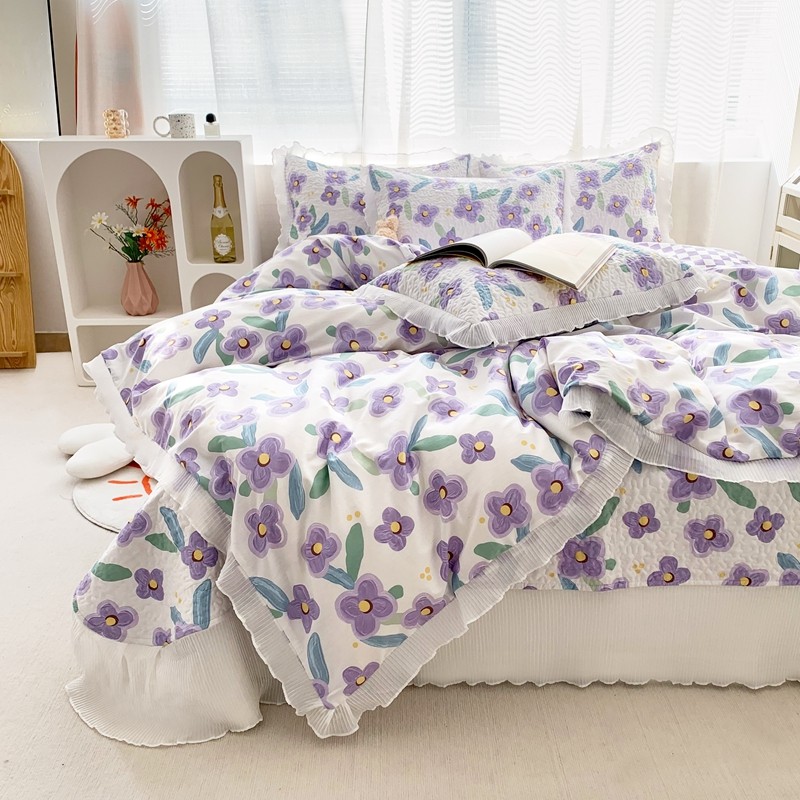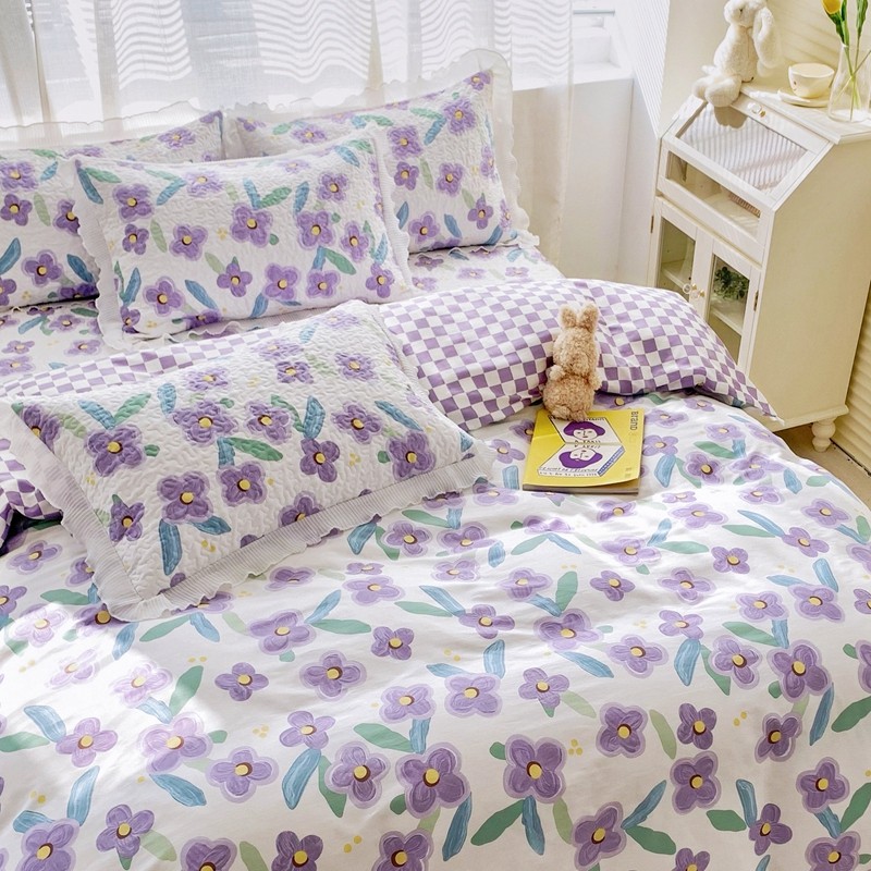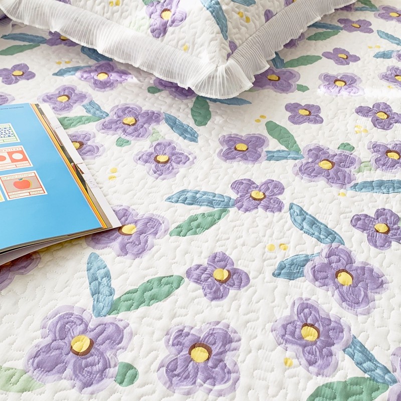仟网汇2022全棉喷气13070床盖三件套四件套花语柔情紫