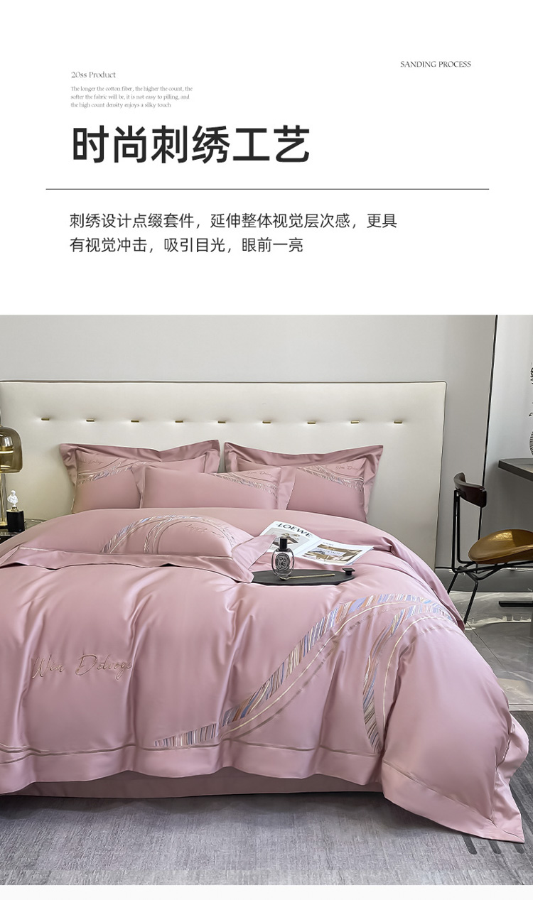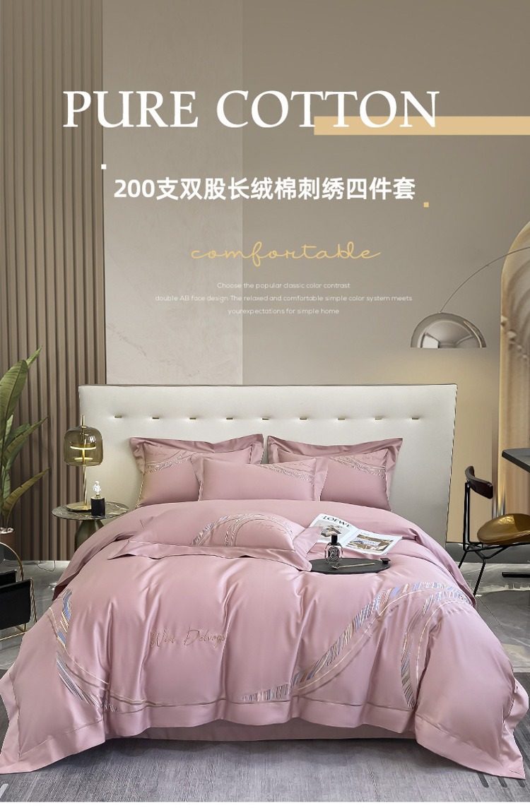200支新款长绒棉宽边刺绣四件套