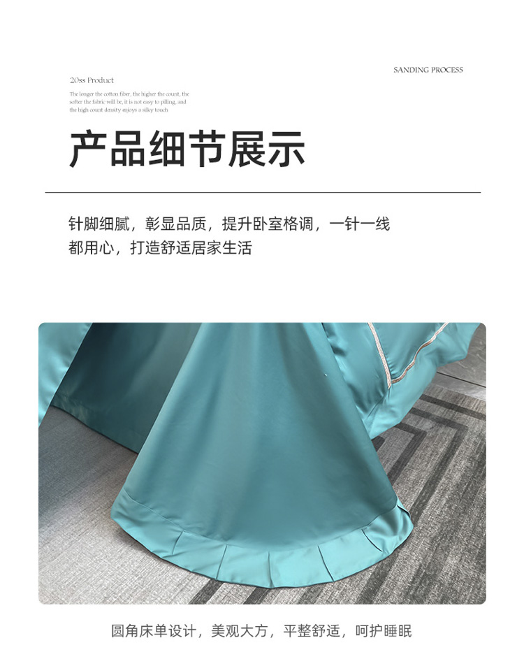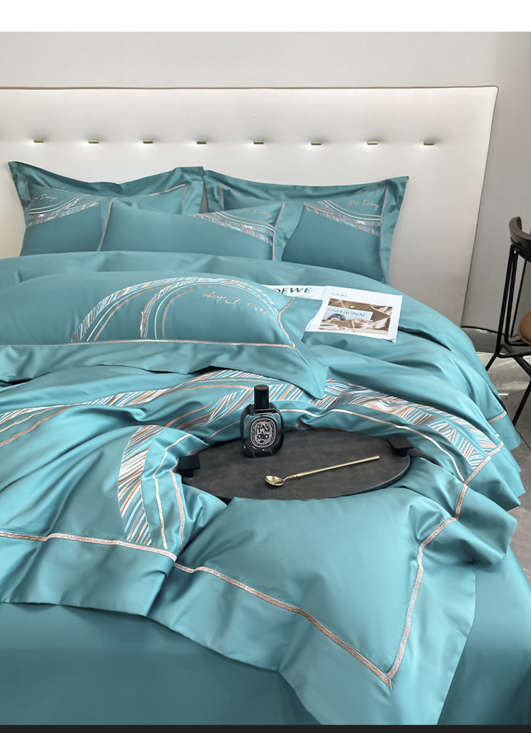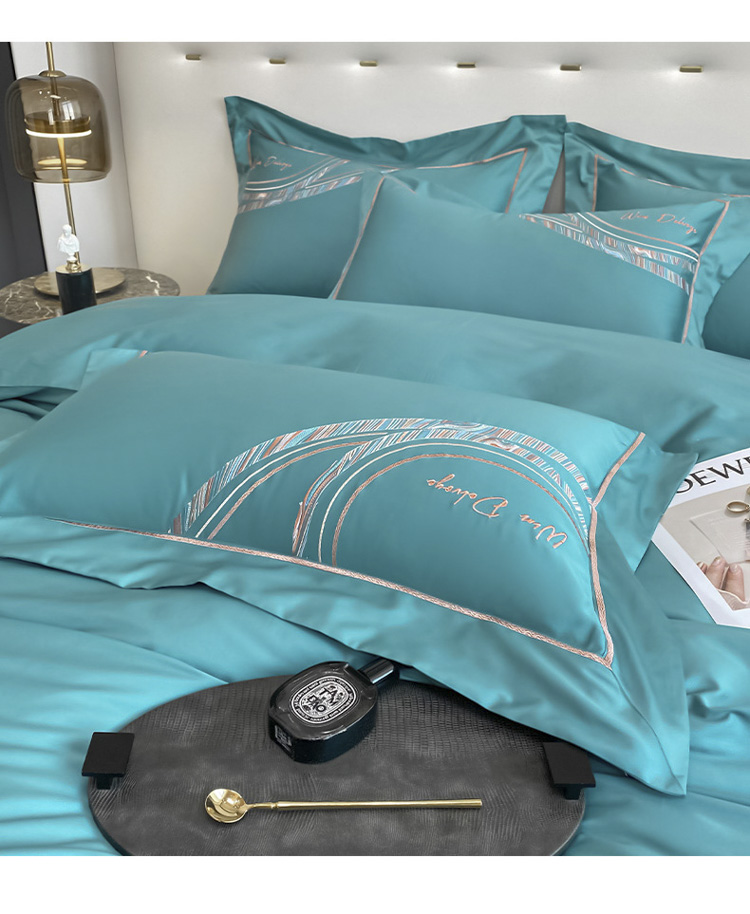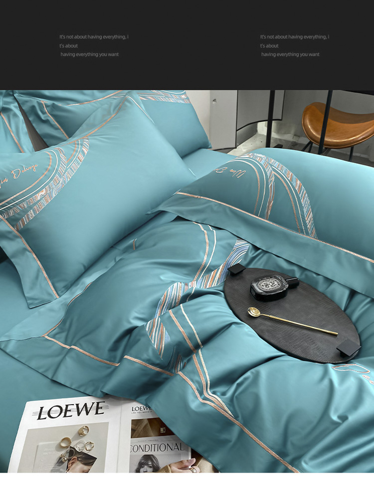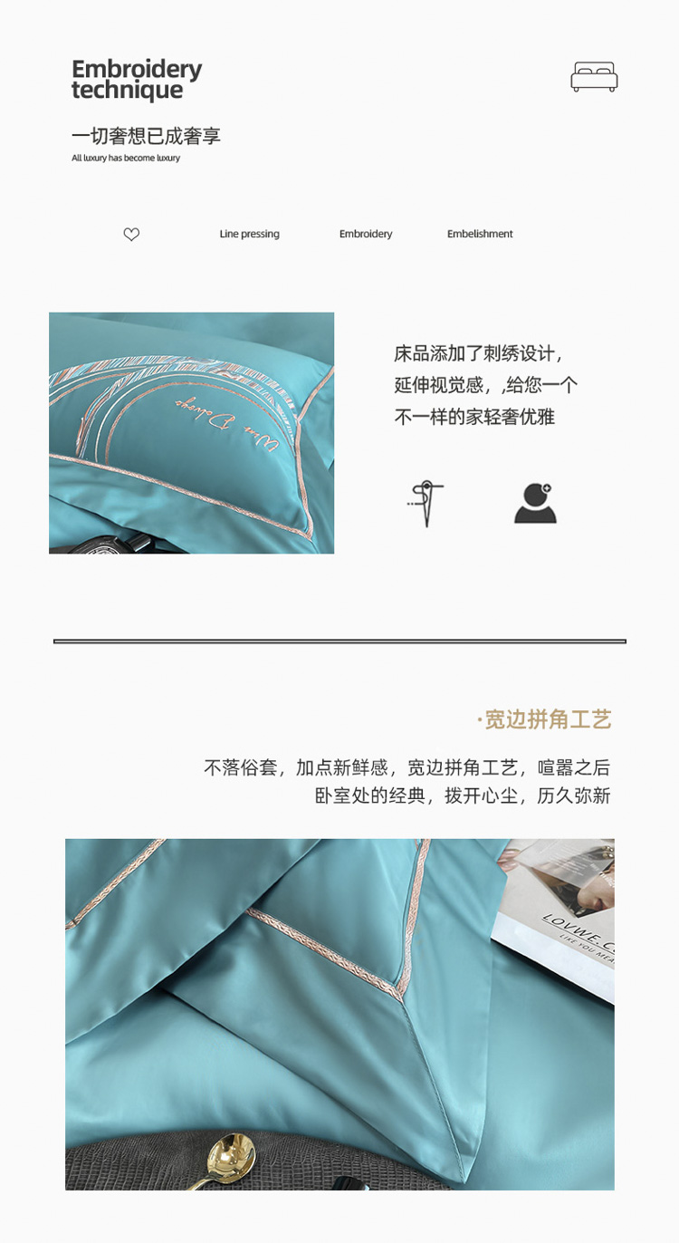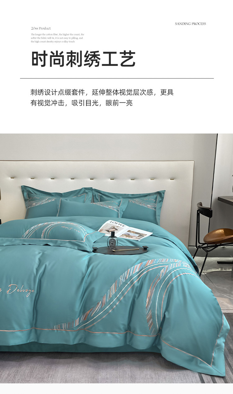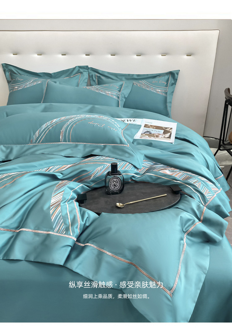 柔觉家纺 天丝刺绣贡缎提花全棉四件套,水汐-绸缎兰
