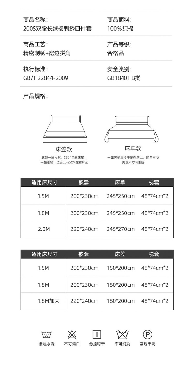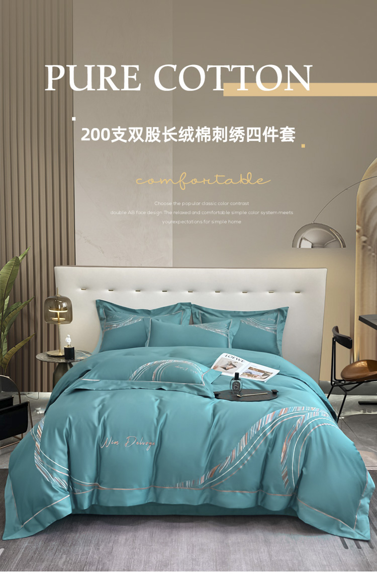 商品名称:200支新款长绒棉宽边刺绣四件套