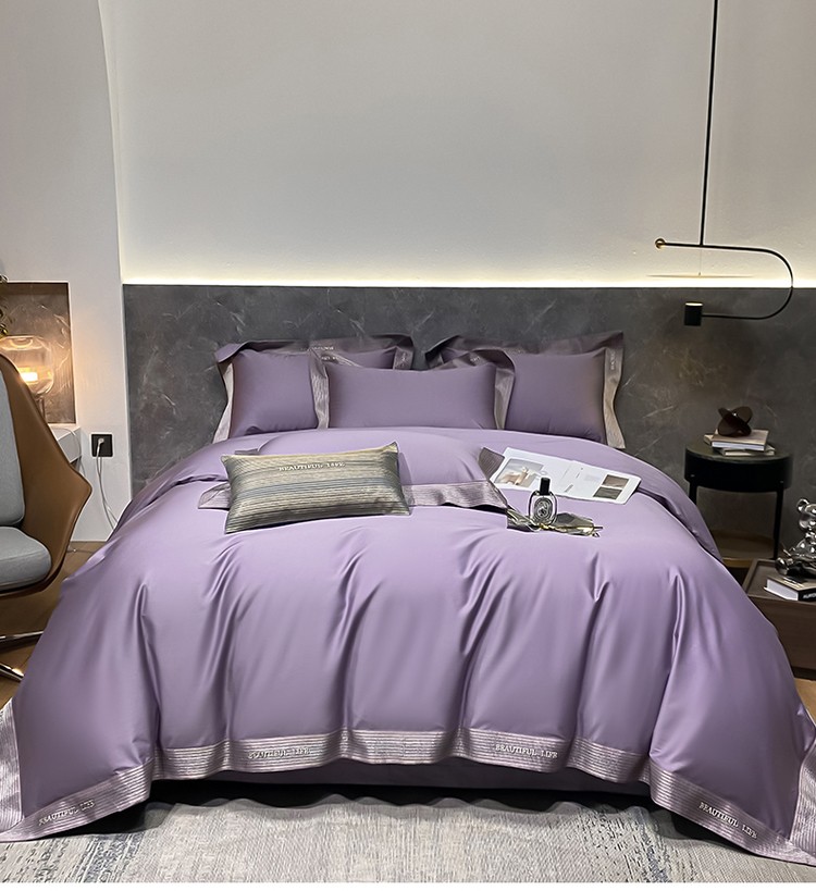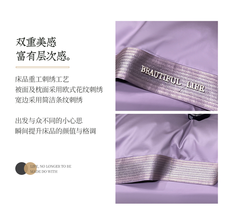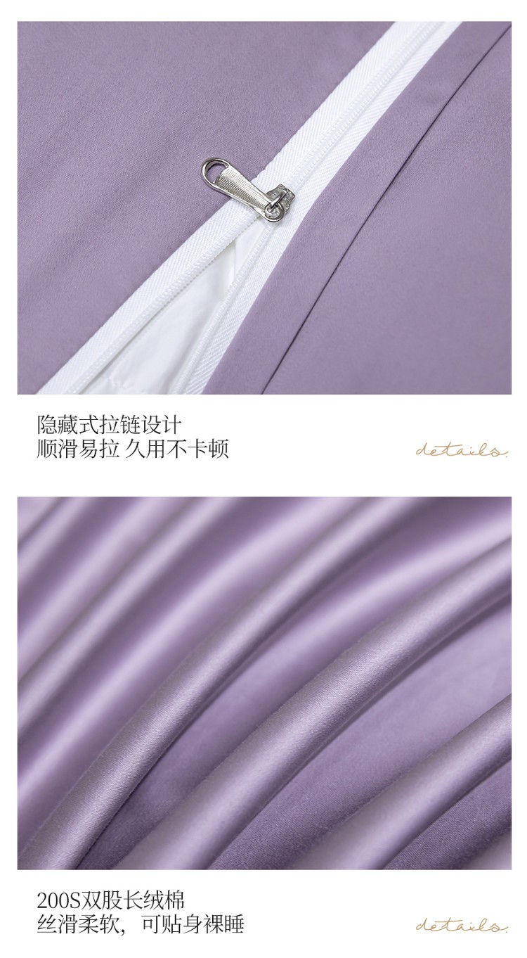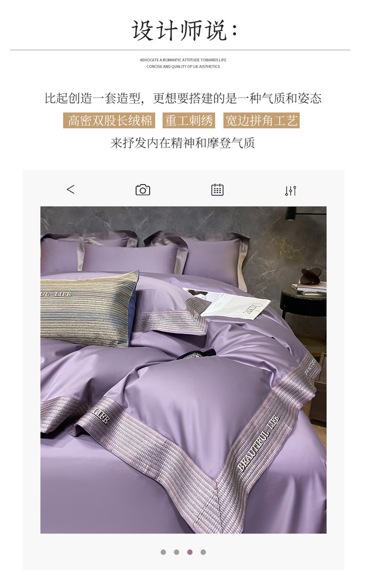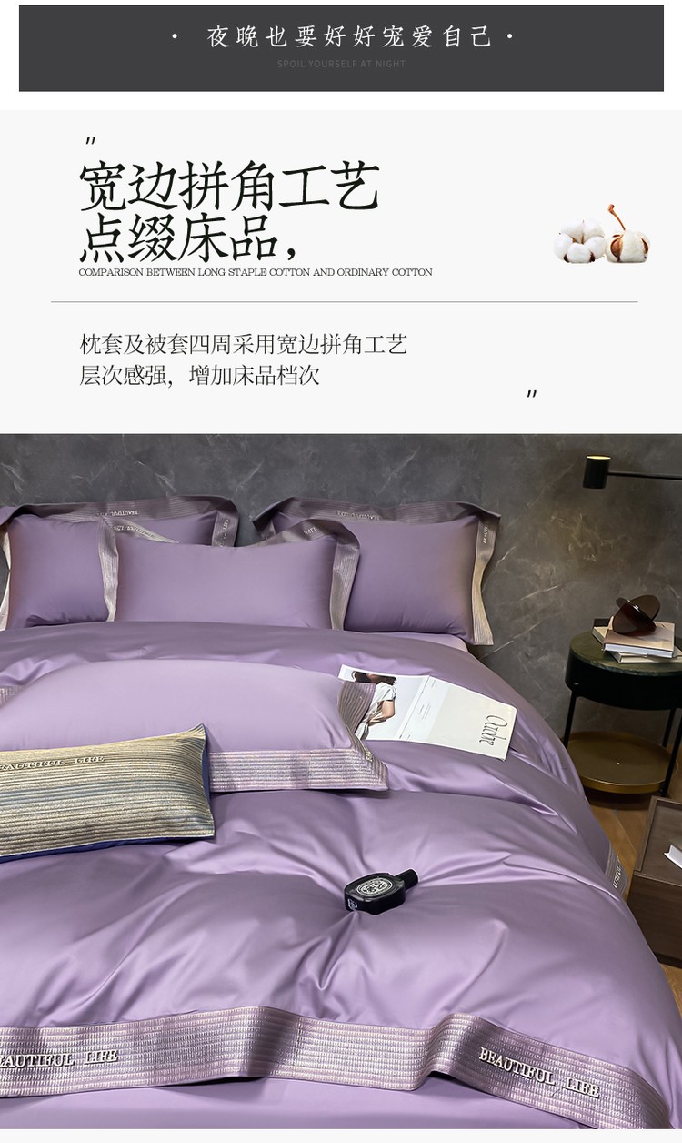 柔觉家纺 天丝刺绣贡缎提花全棉四件套,卡曼时尚-粉紫