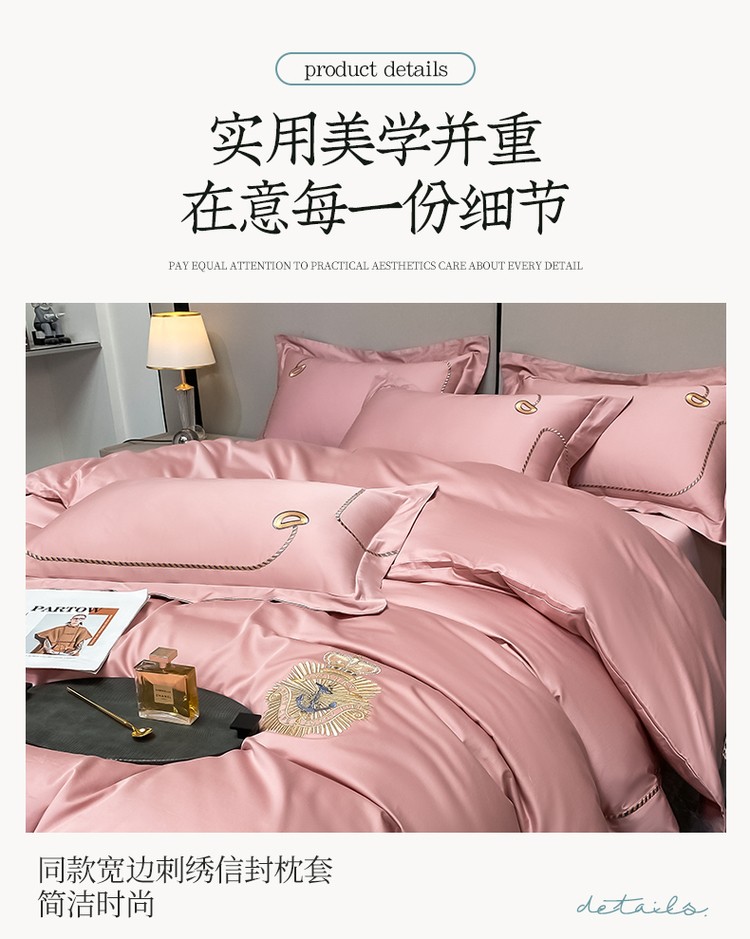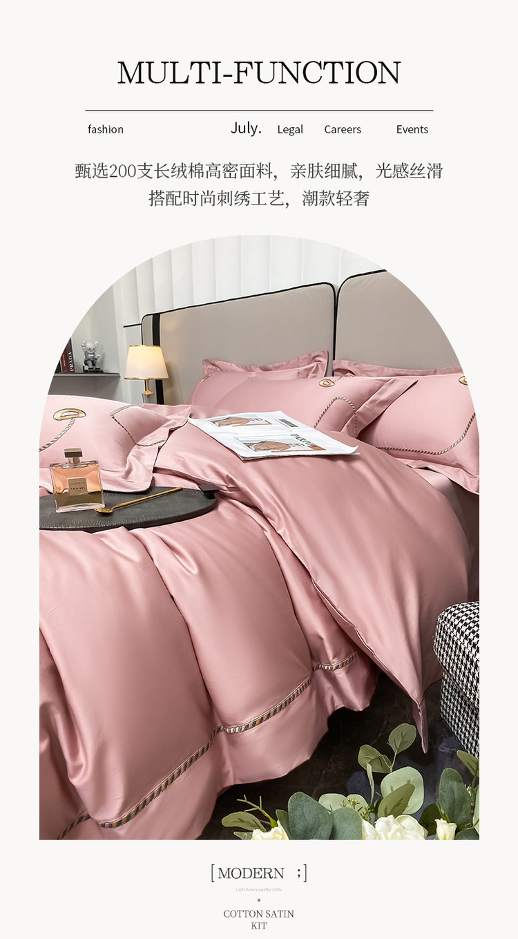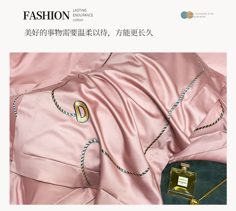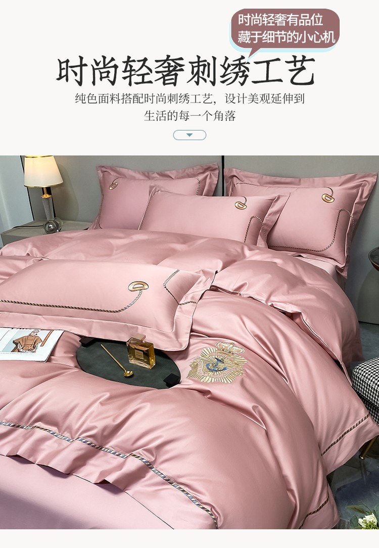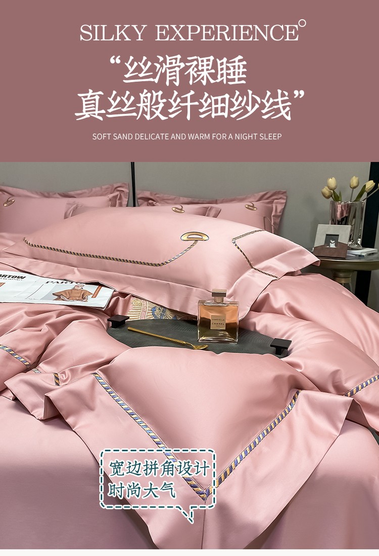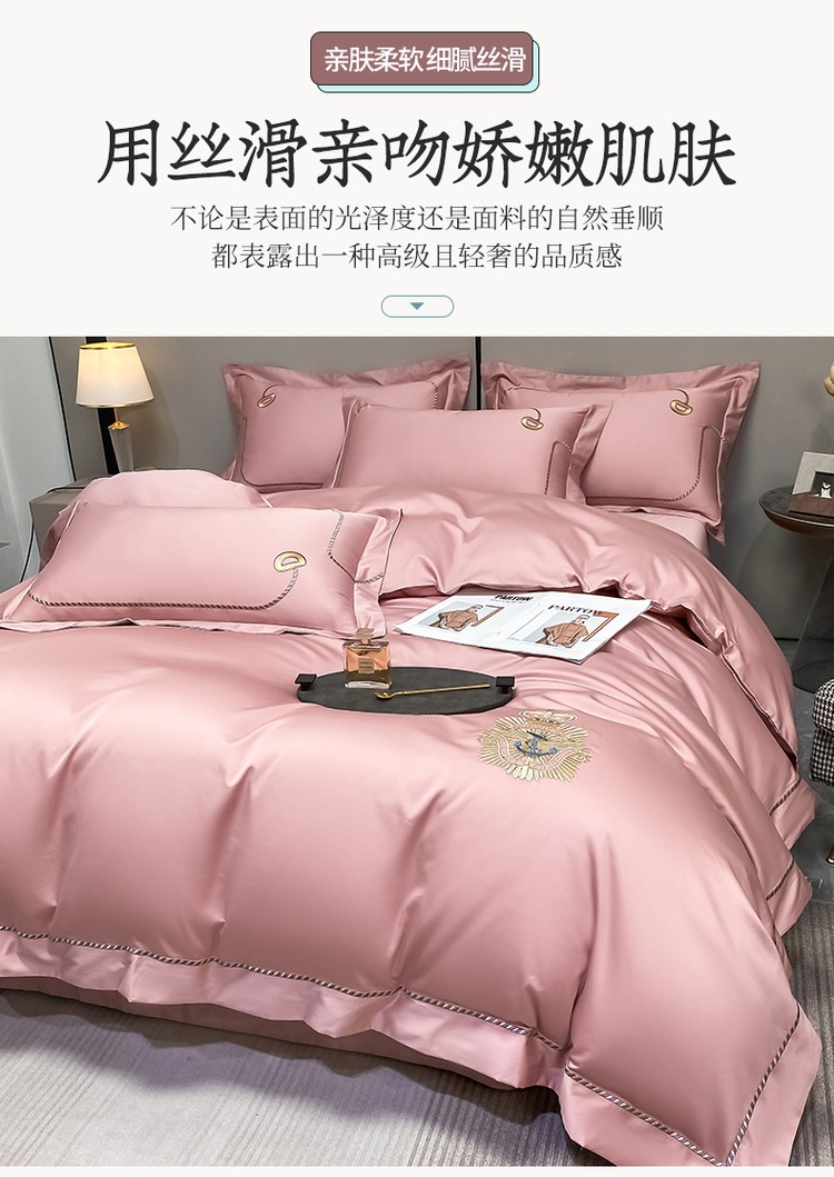 柔觉家纺 天丝刺绣贡缎提花全棉四件套,卡曼时尚-粉紫