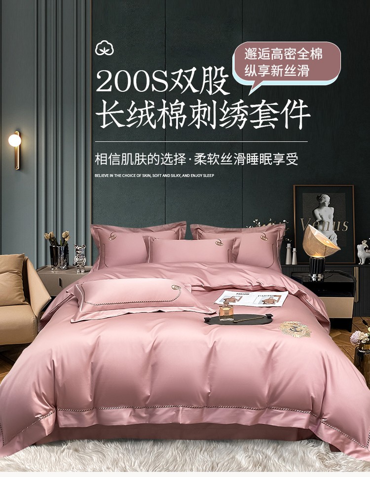200支新款长绒棉宽边刺绣四件套