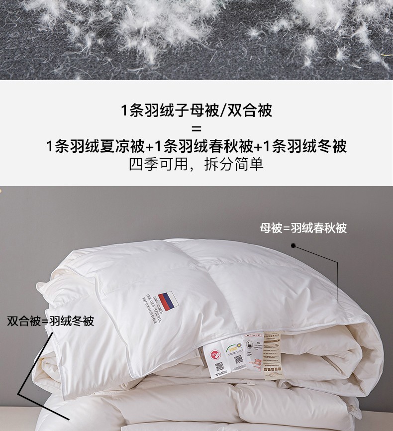 (总)岚司羽新款全棉子母被羽绒被95%白鹅绒