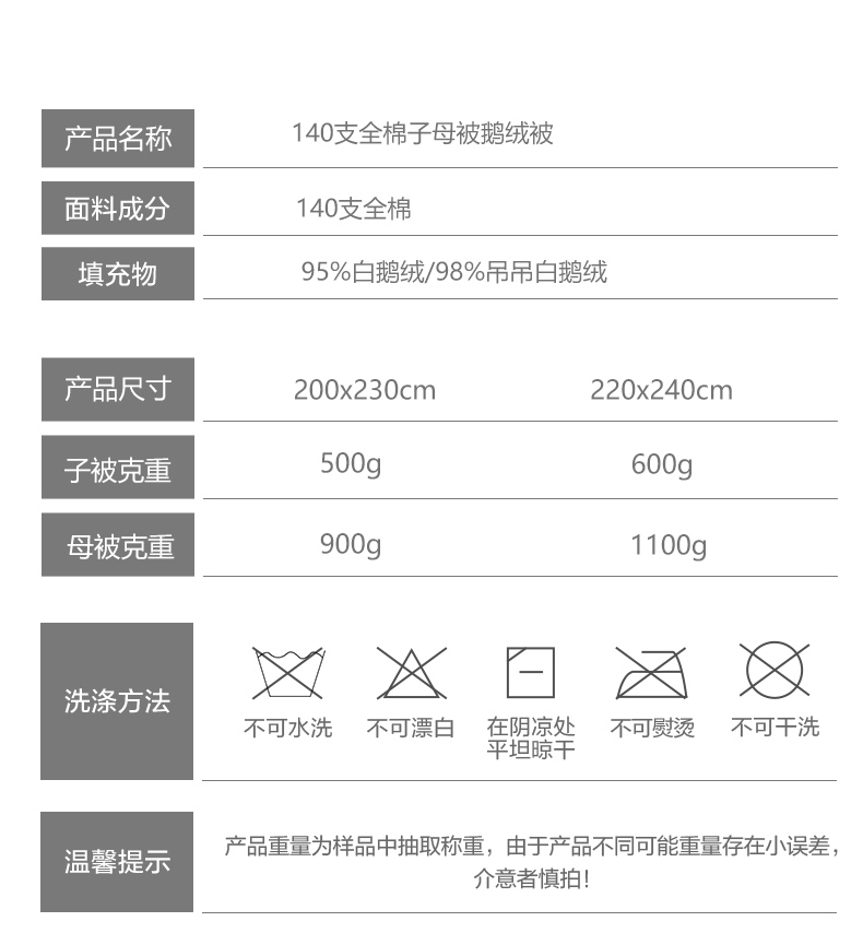 商品名称:(总)岚司羽新款全棉子母被羽绒被95%白鹅绒