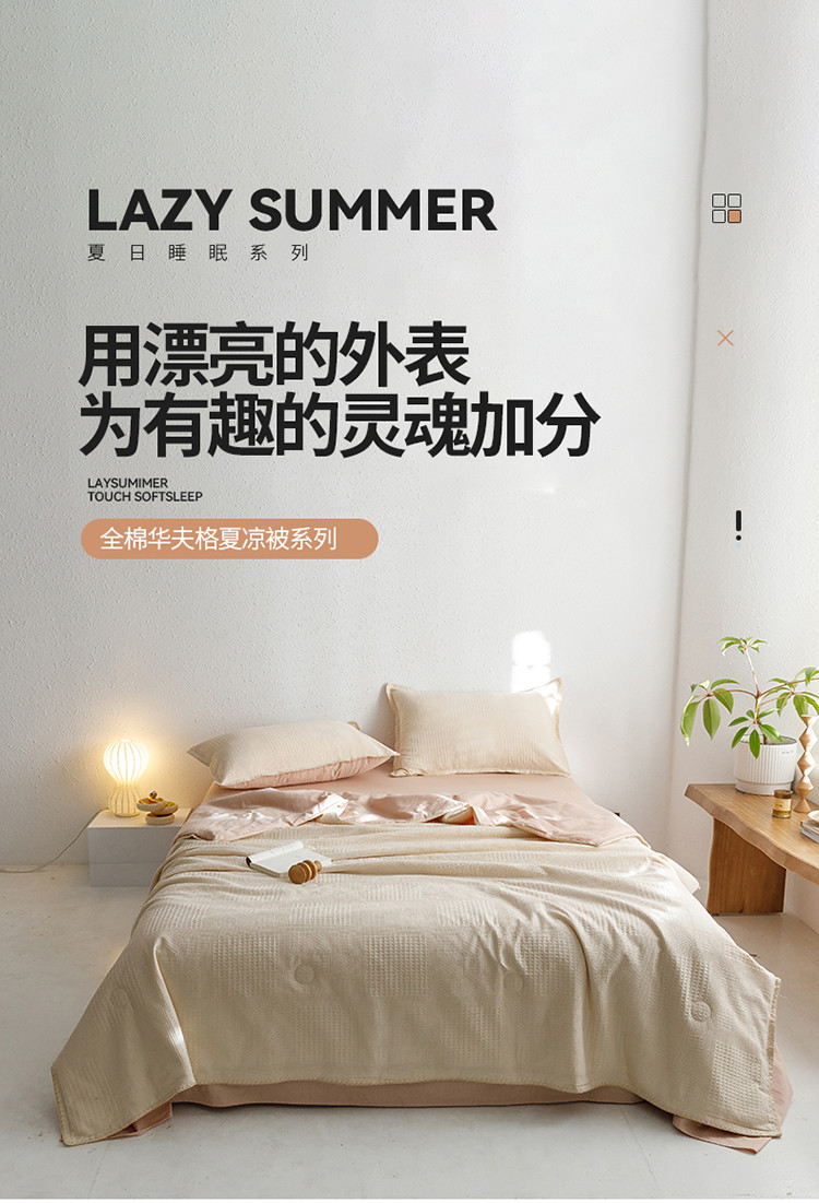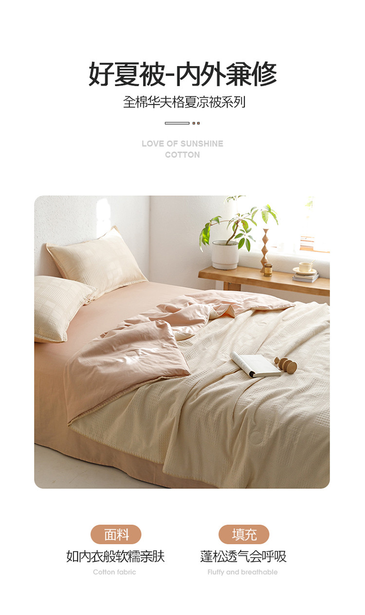 沐棉家居 2024新款全棉华夫格单品夏被 华夫格-卡其