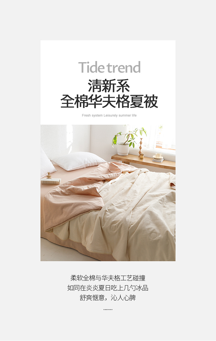 商品名称:沐棉家居 2024新款全棉华夫格单品夏被 华夫格-卡其