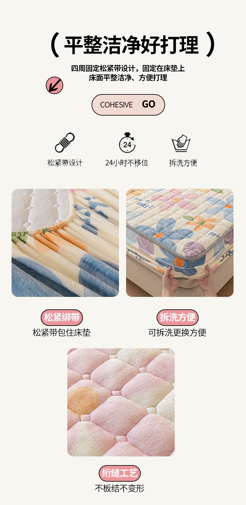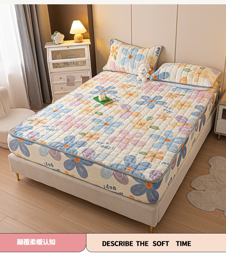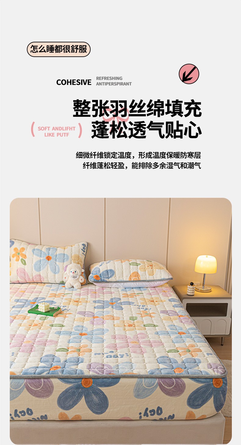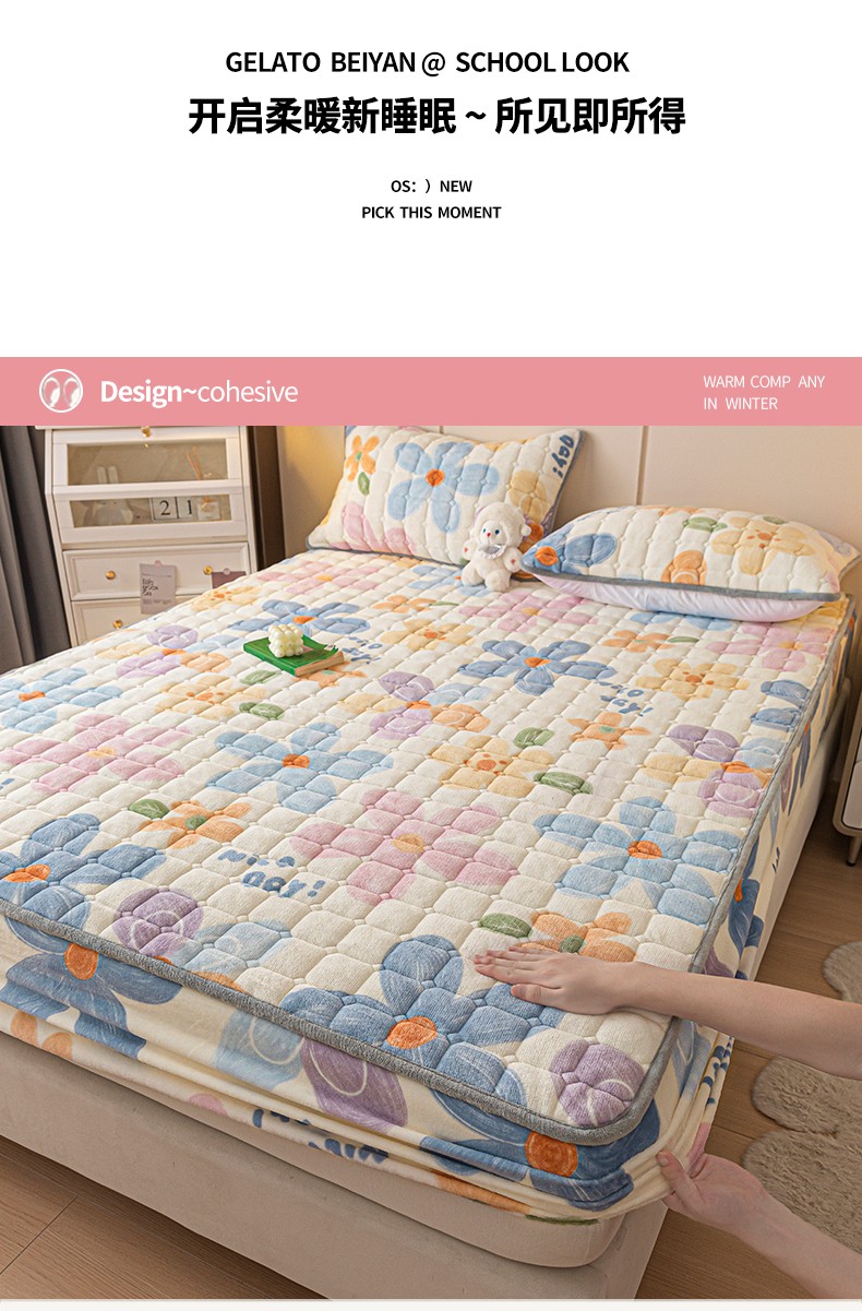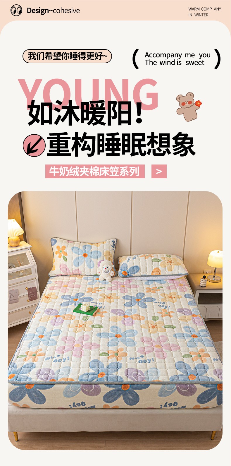 商品名称:格子铺 2023新款印花牛奶绒大豆夹棉床笠 花香油彩
