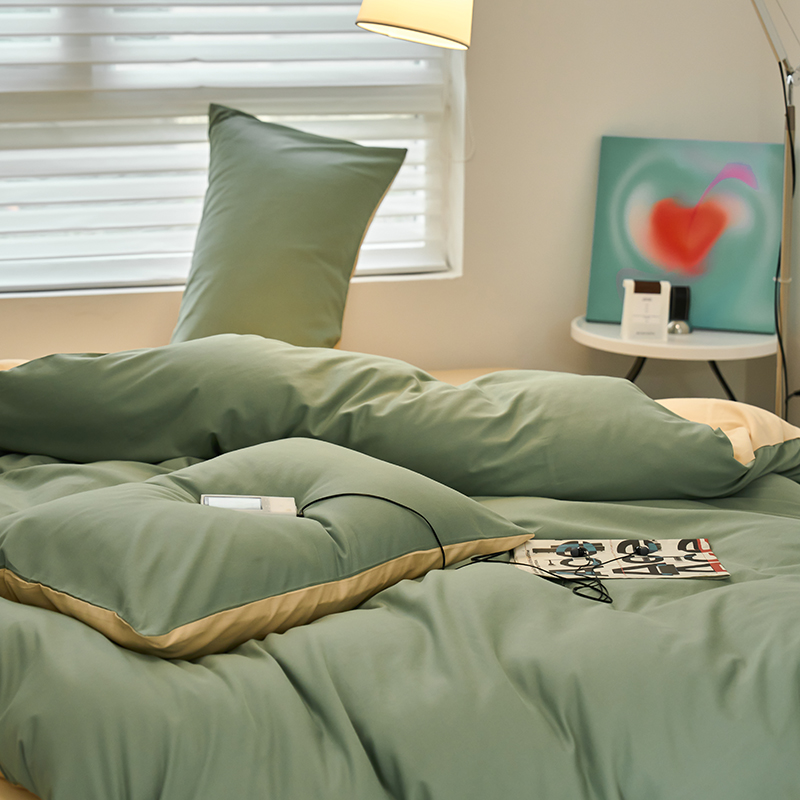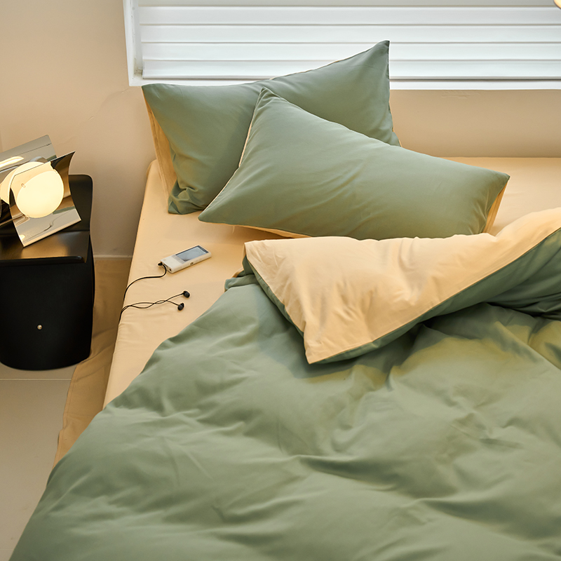 当前位置: 91家纺网 > 商品网购 > 床品套件 > 四件套 > 普通磨毛四件套 > 沐白家居 2023火山小磨毛拼色基础款四件套 松风